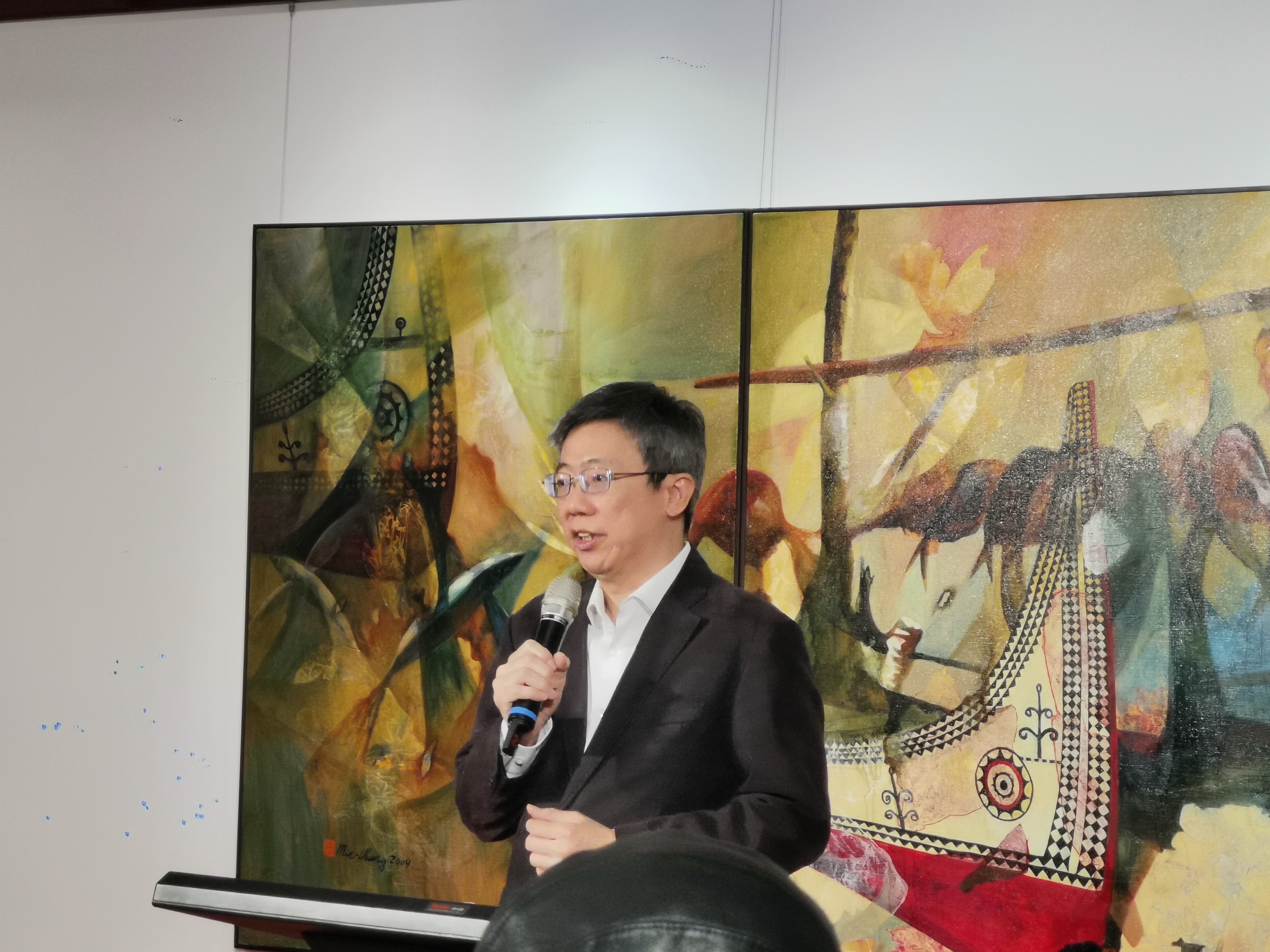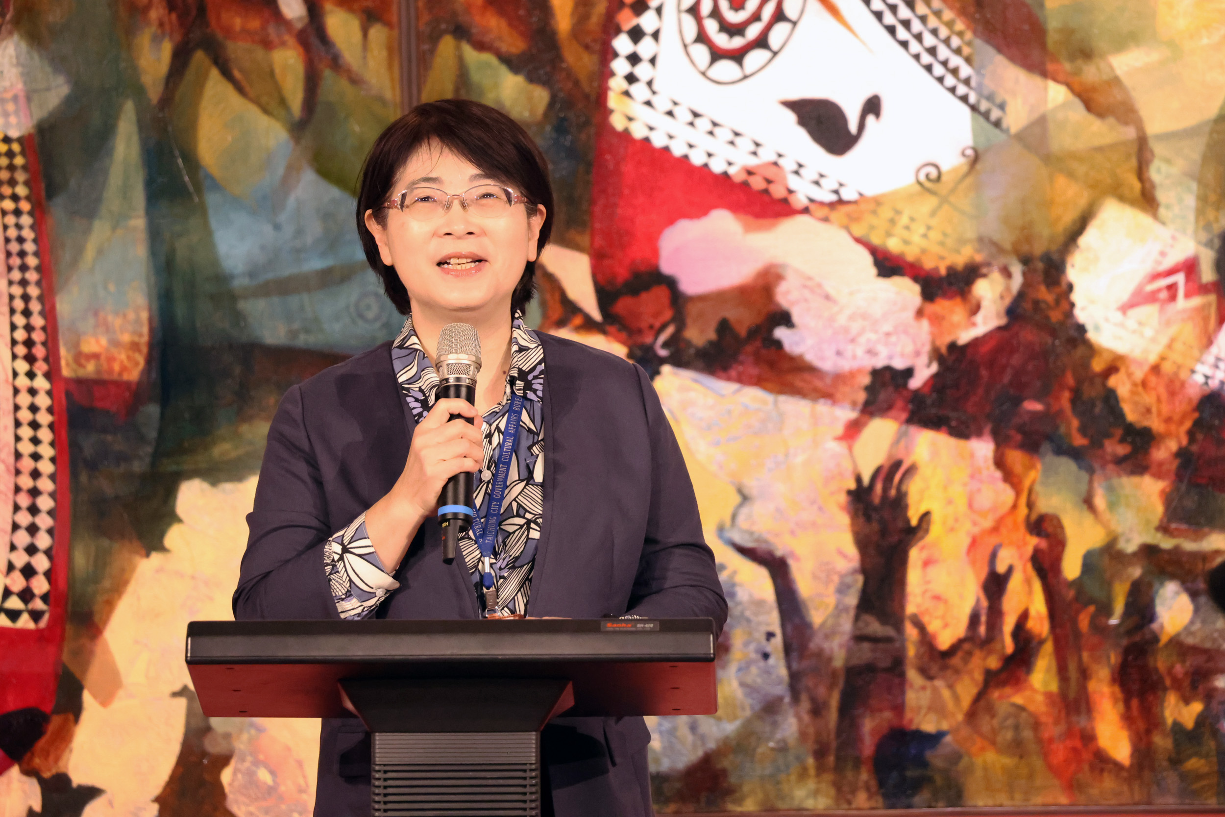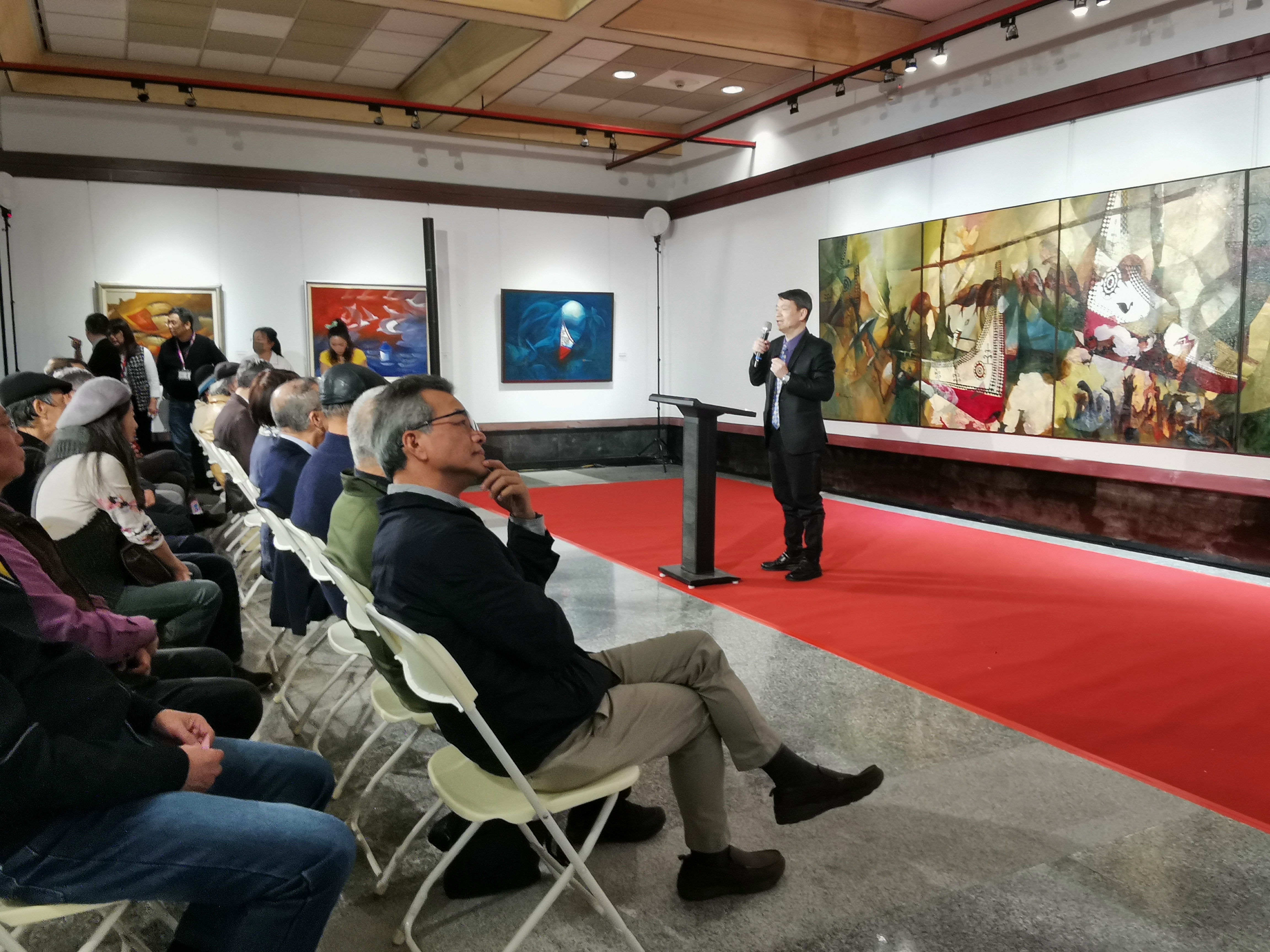文化局長陳佳君致詞時邀請大家春節假期前來港藝中心欣賞莊明中40載創作鉅展. 圖/ 臺中市港區藝術中心提供