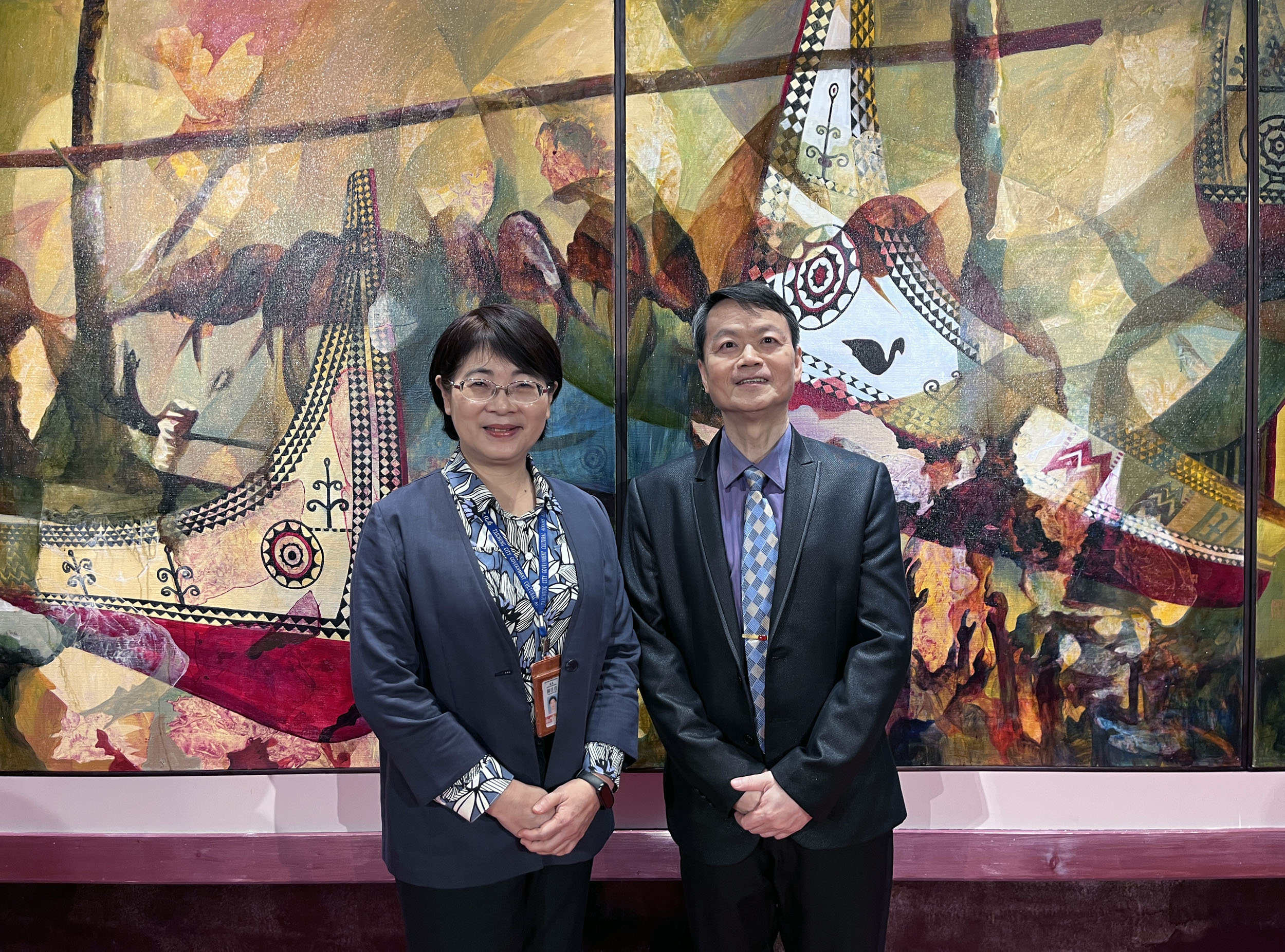 文化局局長陳佳君(左)代表代表市長盧秀燕參加莊明中(右)2025油畫創作展開幕式 圖/ 臺中市港區藝術中心提供