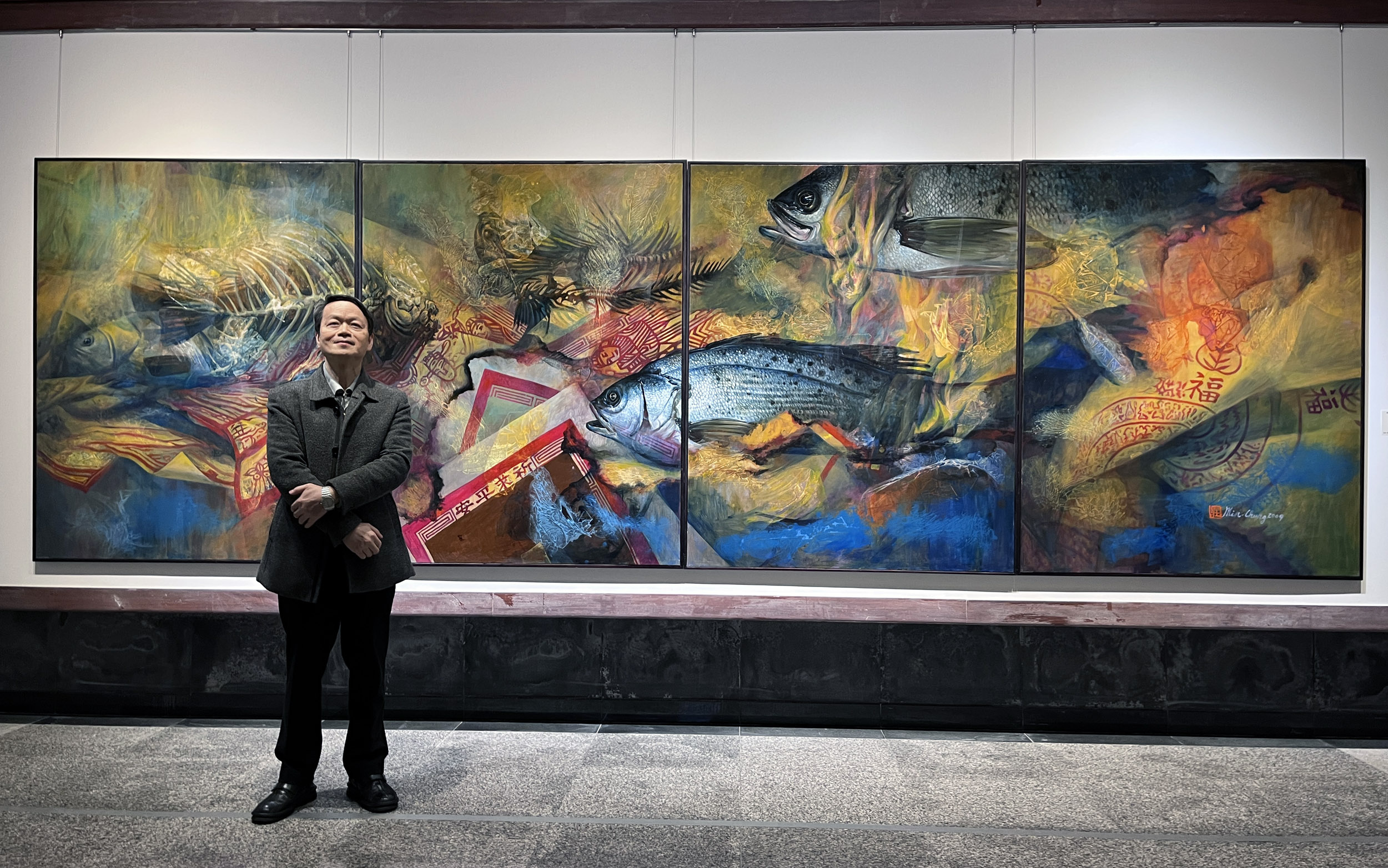 海洋議題一直是其創作核心,在藝術創作領域特別重視地球資源永續利用和「取之自然、回歸自然」的行動實踐,他的筆觸如詩人般吟誦,將深邃海洋的靜謐與生命的悸動完美結合,也呼應聯合國SDGs永續發展的目標。謝里法教授在為本次展覽撰文時評價道:「畫家想用圖像詮釋生生不息又瞬息萬變的意象,不僅是一種自我挑戰,更是追求一種忘我。」