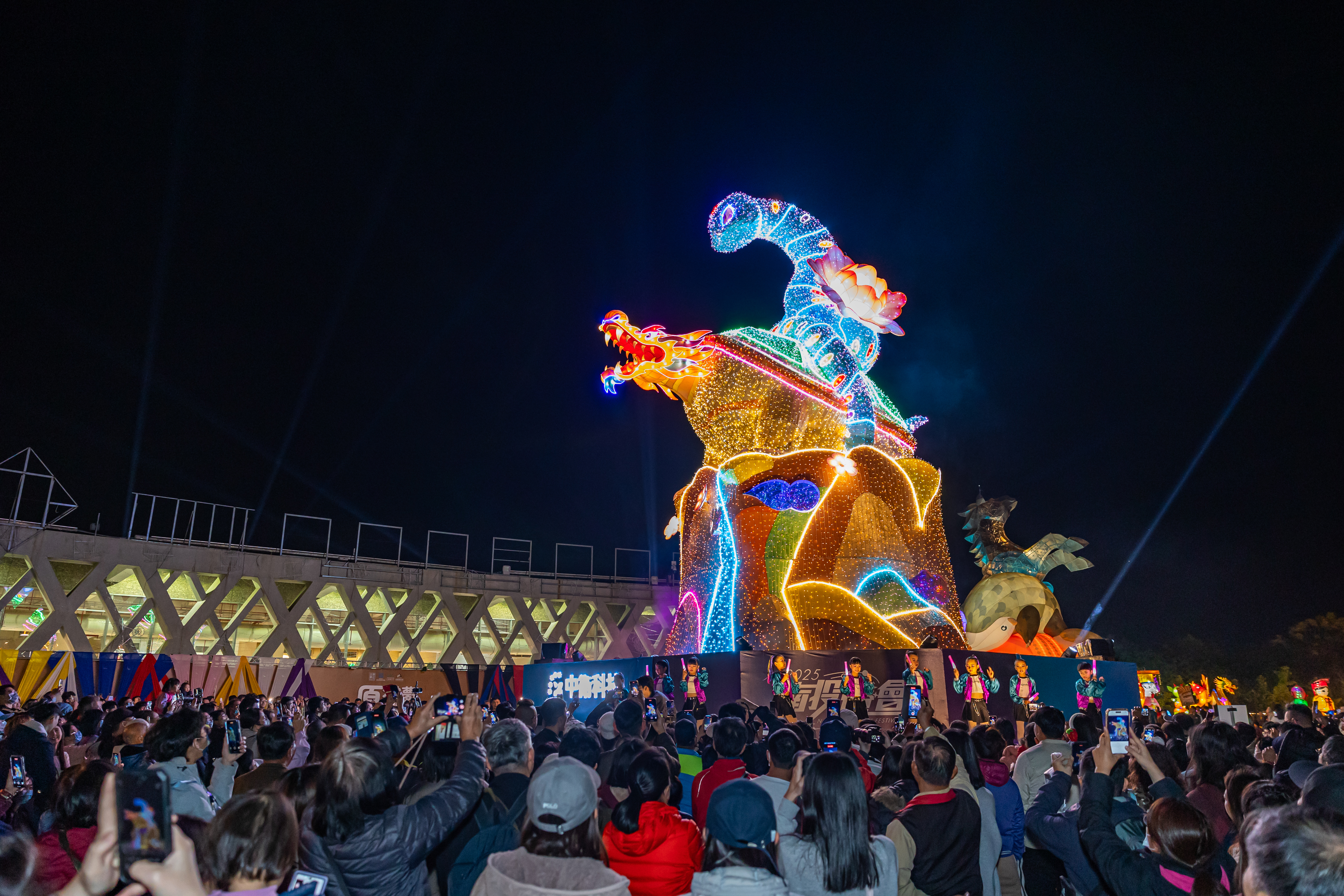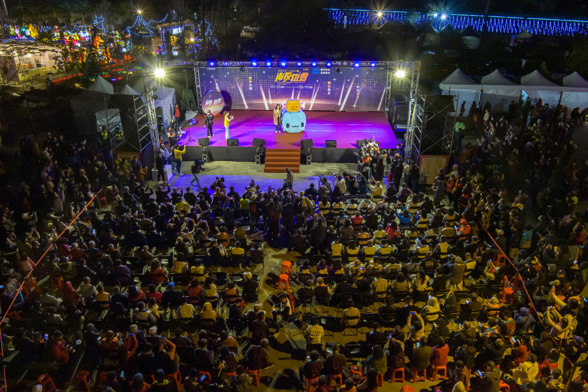 點燈開幕盛典,由「蛇舞飛揚迎新春」精彩舞蹈開場,隨即藍色萌寵貓貓蟲咖波現身,縣長許淑華與「咖波」同框耍萌、可愛連拍後,和副縣長王瑞德、立委游顥、縣議員林憶如、宋懷琳、林儒暘、簡千翔、張婉慈、林友友、全文才、黃春麟、林芳伃、蔡孟娥、蘇昱誠、張秀枝、企業先進中衛科技董事長林銘田、杉林溪董事長劉瑞都等眾多貴賓,在滿場熱情民眾高喊倒數聲中,炫麗點亮「拾來富貴」主燈,主燈周遭並以迪士尼花車效果的舞台,呈現創新展演的效果。