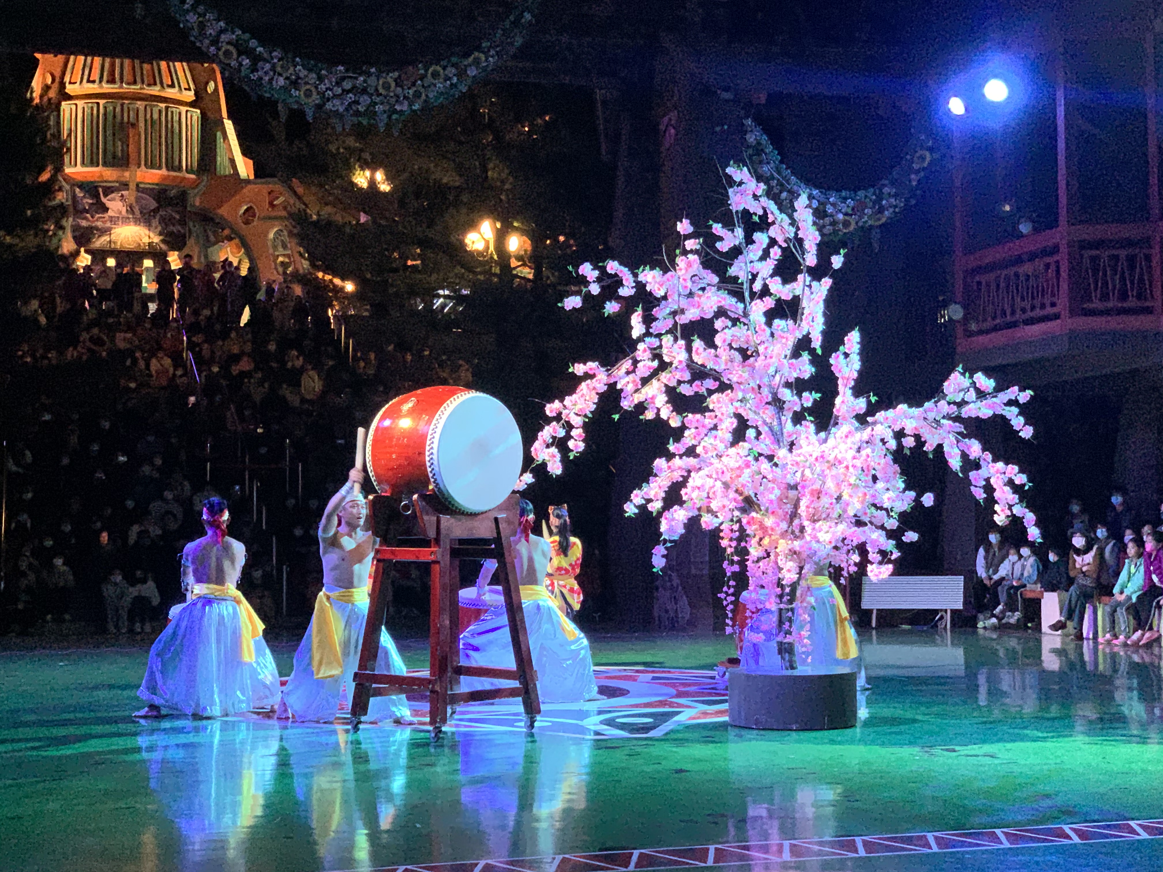 夜間加演的夜舞祭從1月29日大年初一到初五,每晚18:30準時開秀,集合了曼妙的緞帶舞、超優雅的傘舞、震撼人心的太鼓演奏,還有熱力四射的火舞秀,結合音樂、燈光與舞蹈,帶來視覺與聽覺的極致饗宴,讓你眼花繚亂、拍到手機記憶體爆滿!這是每年櫻花季口碑爆表的夜舞祭和火舞表演,提前春節推出。