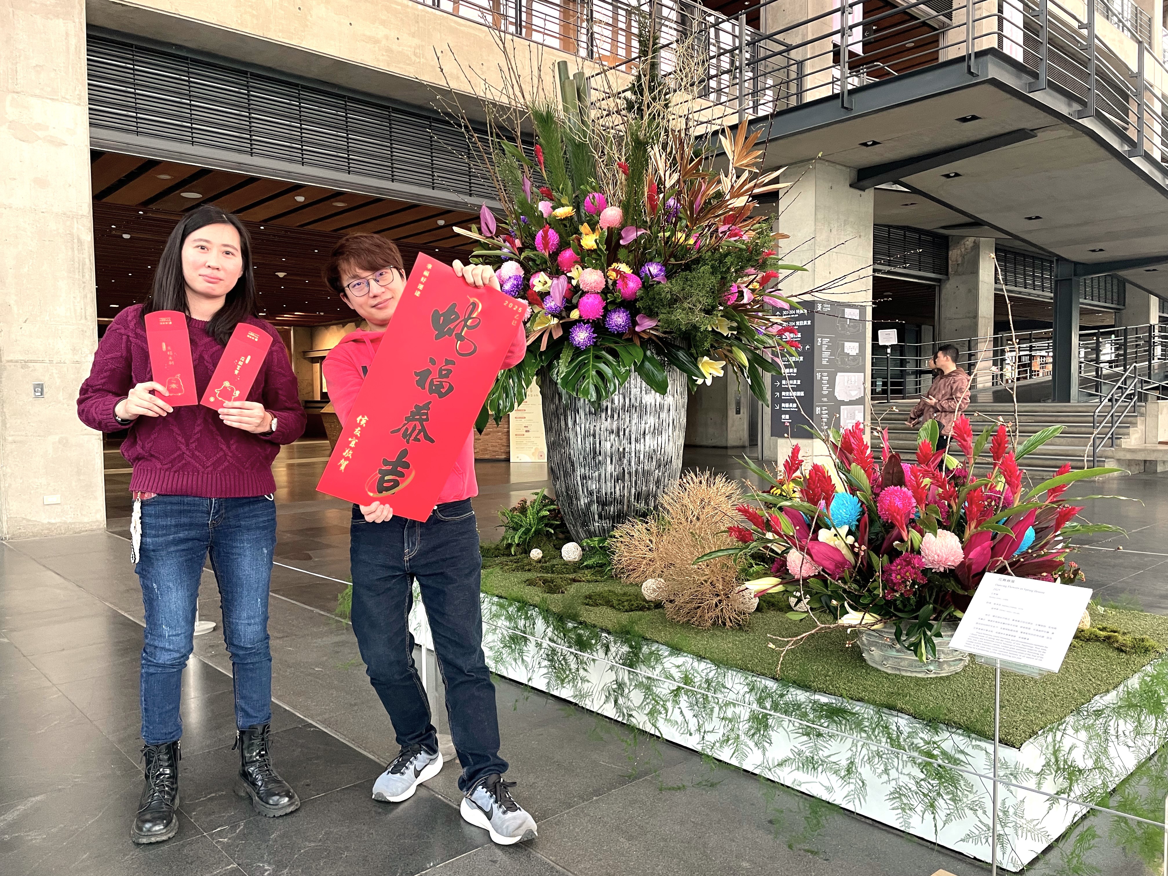 春節期間,特別邀請資深陶藝家兼花藝設計師王秀琴,將陶博館大廳打造得喜氣洋洋!以象徵新春繁榮與希望的粉嫩桃花、櫻花及翠綠植栽,結合陶瓷元素,營造充滿春意的節日氛圍,讓每位入館民眾都能感受滿滿的新年祝福與喜悅。