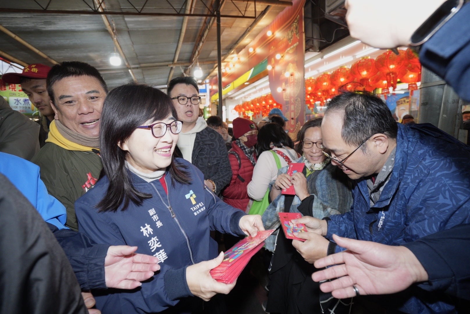 艋舺夜市商圈遊逛民眾開心林奕華副市長拜年 圖/臺北市府提供