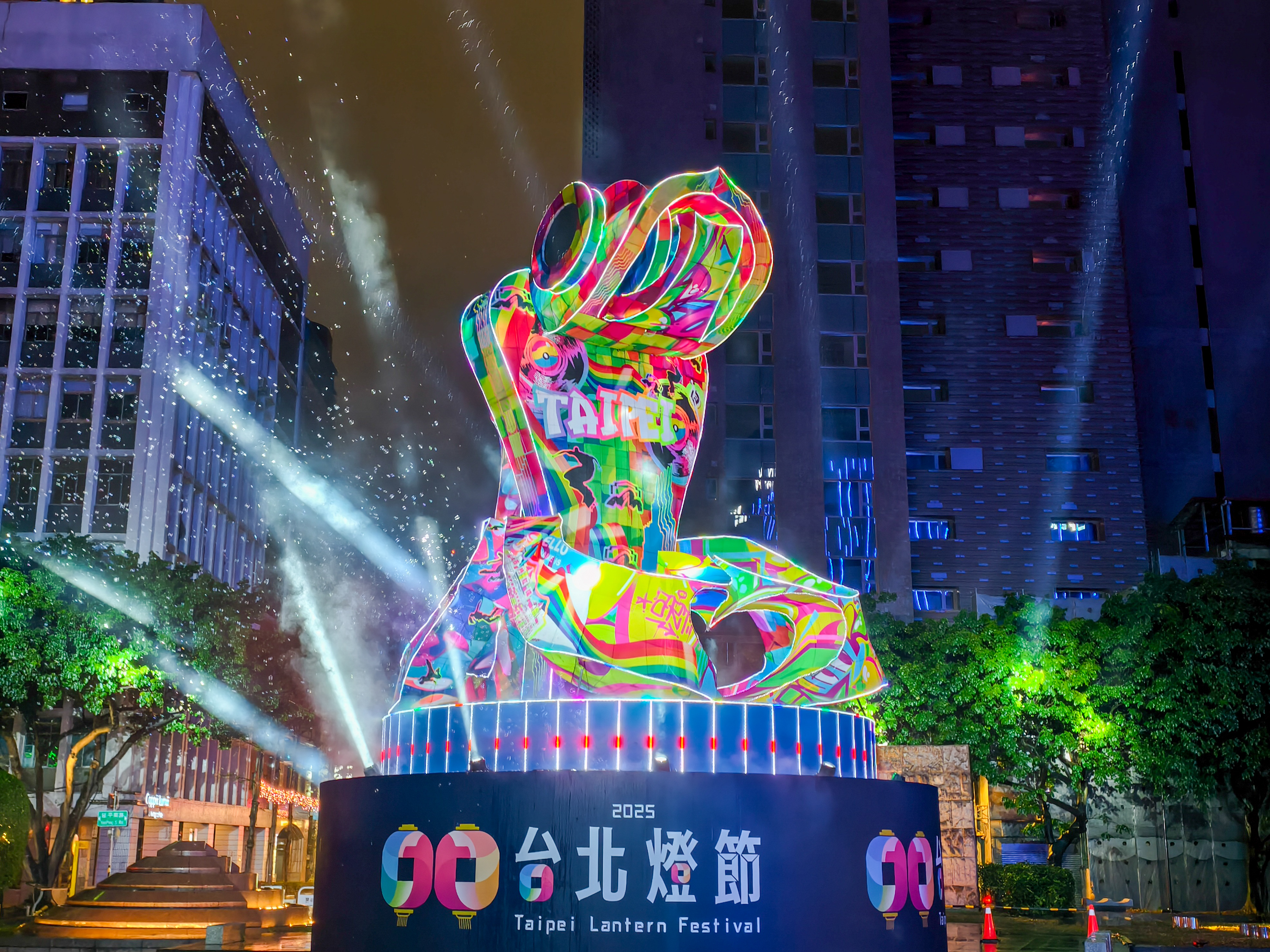 觀傳局介紹,主燈「福蛇豆豆」顛覆對蛇的傳統印象, 充滿創意與巧思。特別受邀參與設計的塗鴉藝術家祁孟含(阿奈), 以繽紛色彩與幾何圖形描繪蛇身,並融入西門街頭文化元素, 營造濃厚潮流氛圍。此外,主燈加入動態機械設計, 將蛇吐舌與靈動眼睛生動呈現,增添幽默與活力, 也象徵新年到來與財運興旺,而設置於深具歷史意義的中山堂廣場, 完美呈現臺北歷史文化與創新潮流的結合。
