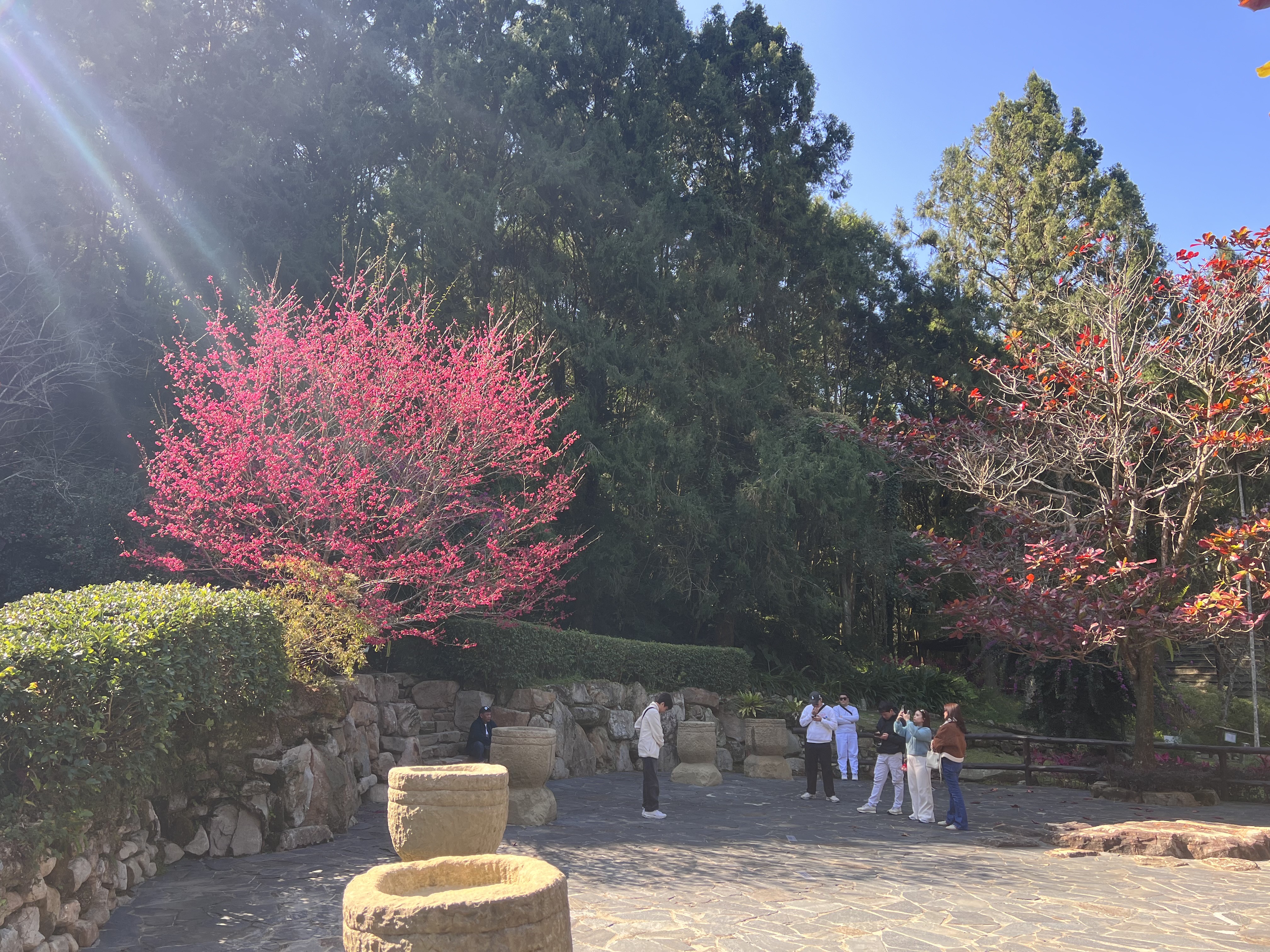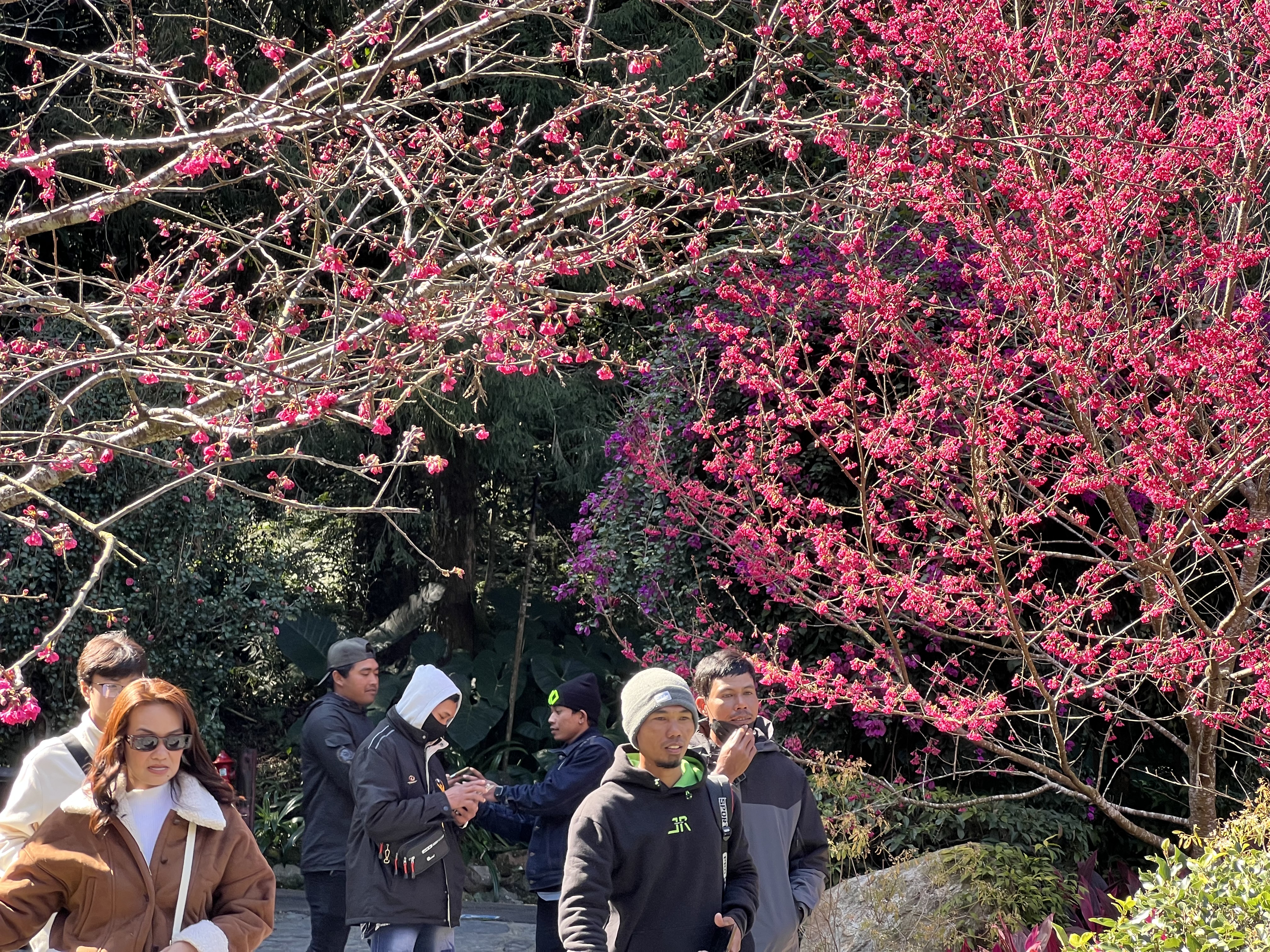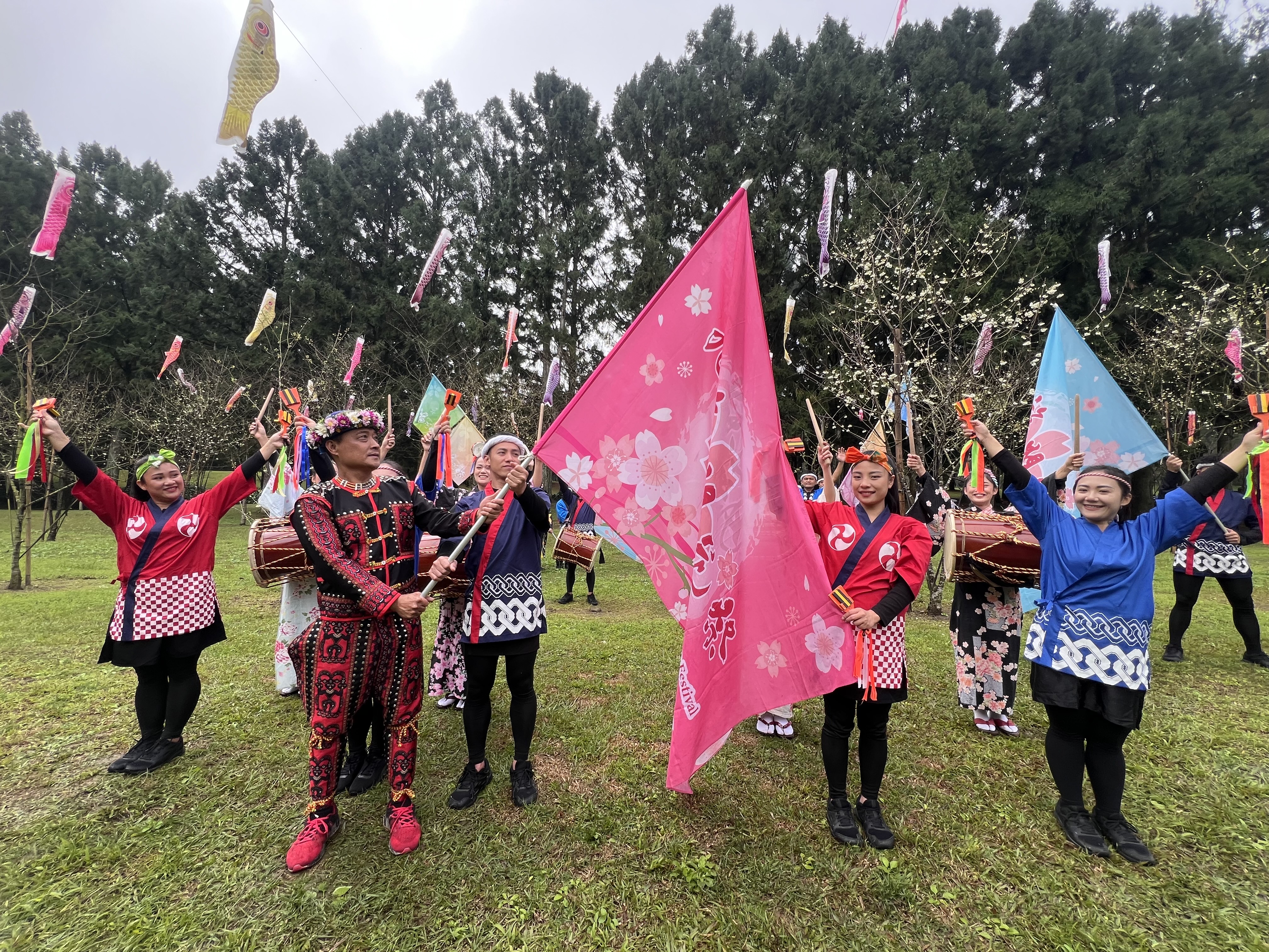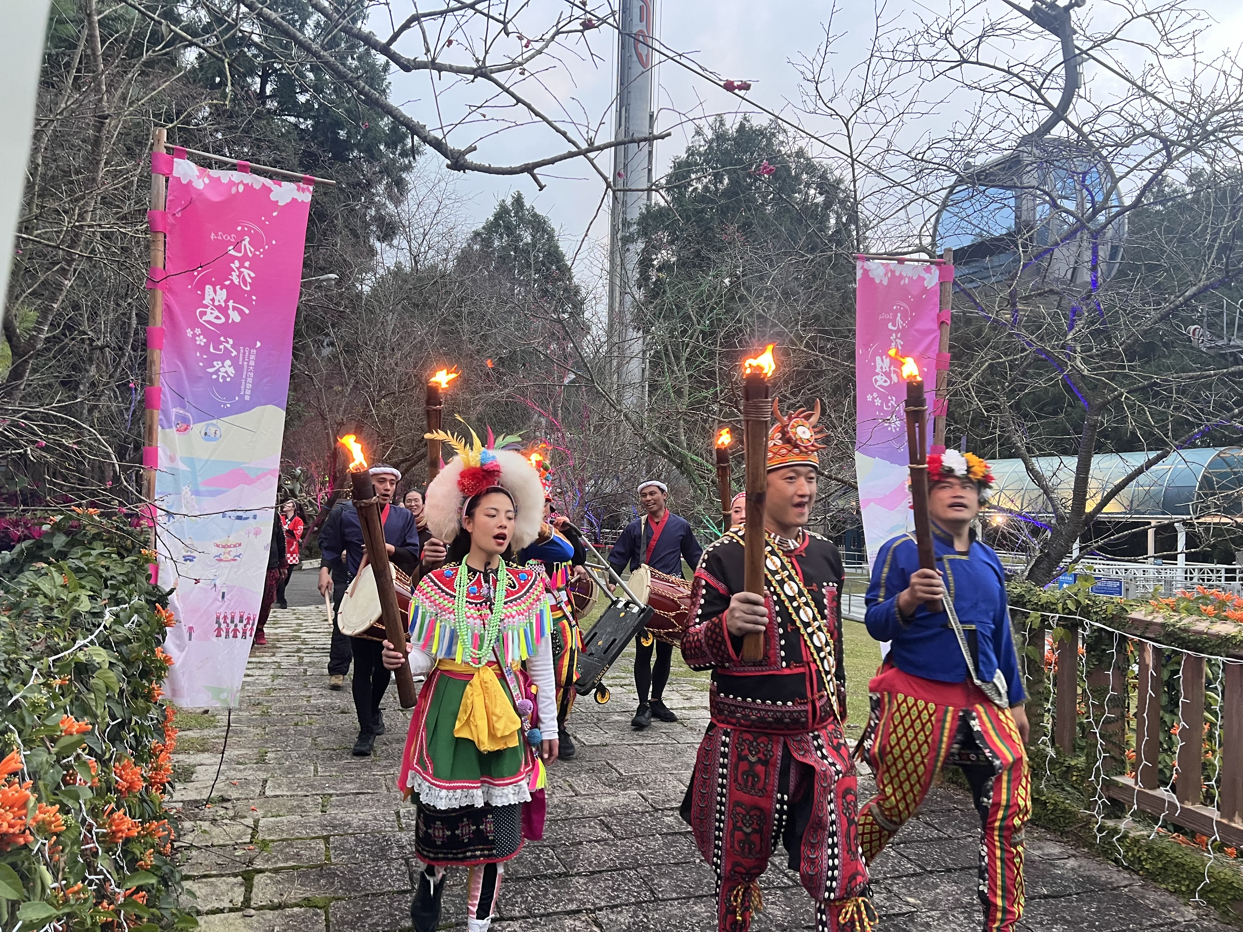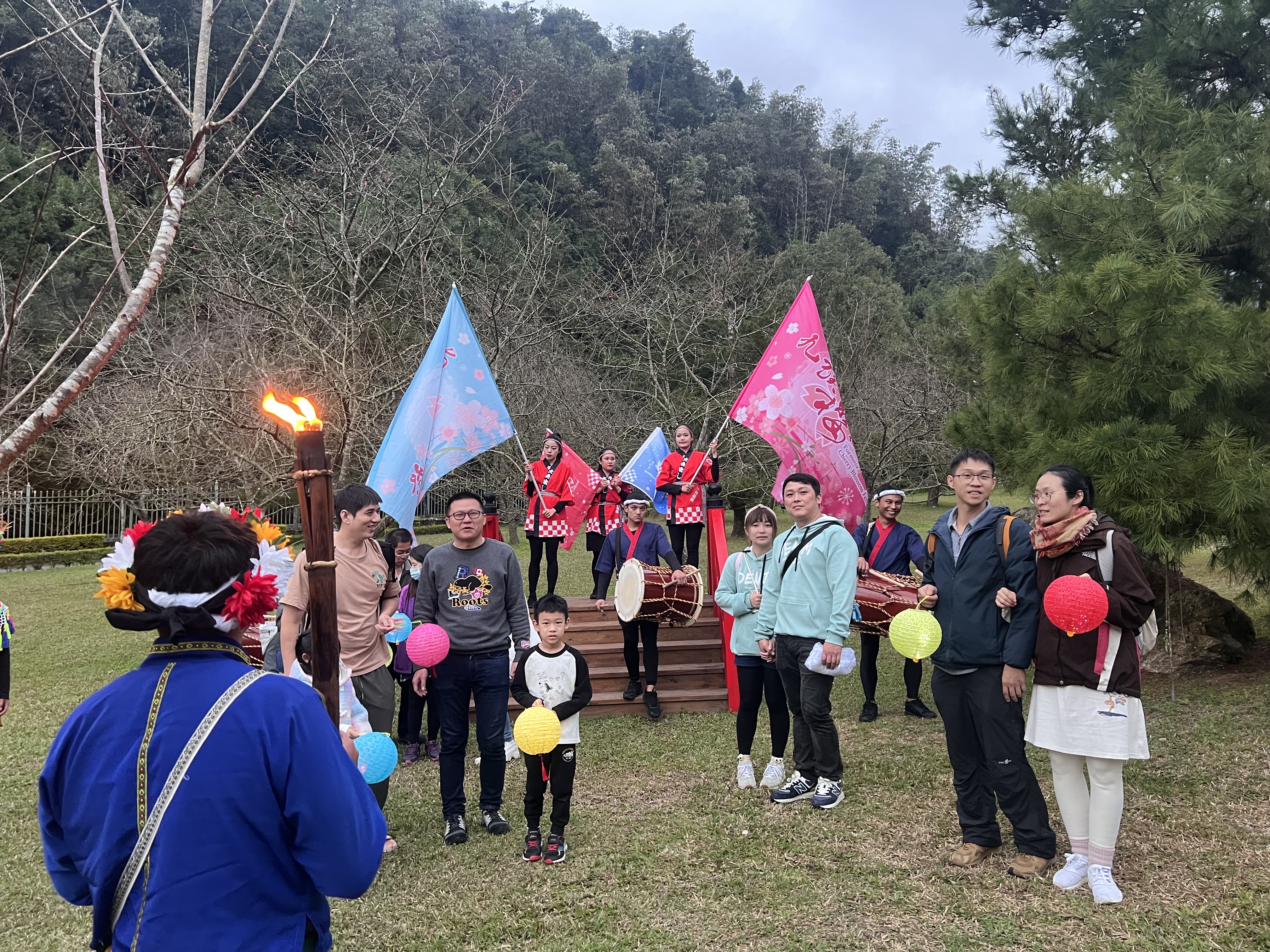 同時九族櫻花祭迎來25週年,在長老對櫻花說好話鼓勵櫻花,巫師祈穰祝福櫻花開好開滿的儀式後、授旗給舞者並宣告一系列的慶祝活動火熱開跑,六種品種共六千棵的櫻花接力綻放,將可持續賞花至3月9日!
