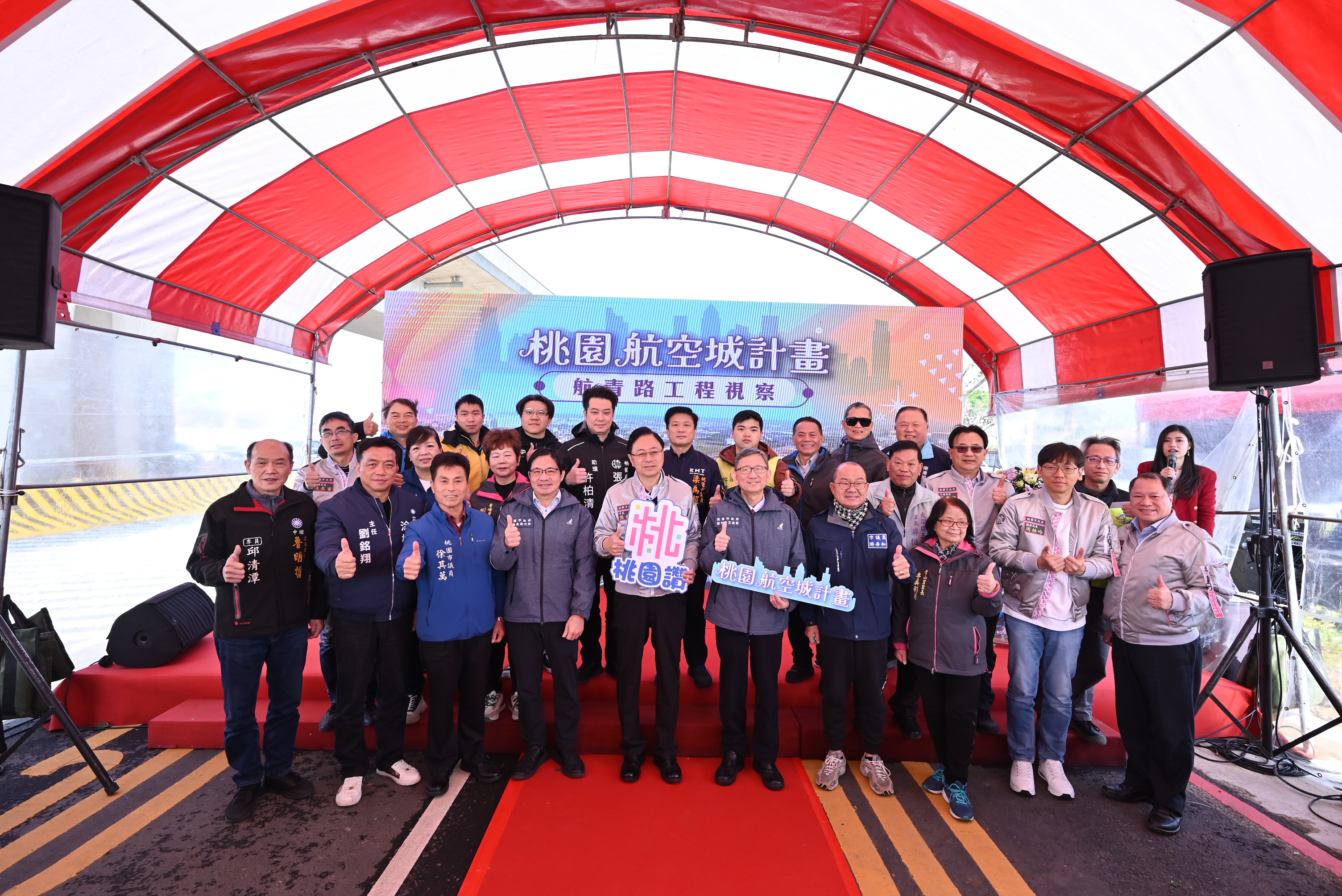桃園市長張善政今日(2/4) 上午親自前往視察「桃園航空城計畫區段徵收工程-航青路」,航青路主要是沿著桃園捷運機場線A15、A16至A17站捷運橋下兩側興建的一條大道,全線新闢完成後,將成為連接大園市區及青埔特區的重要道路,並快速銜接國道2號大園交流道,往西轉航城路一段也可直達桃園航空客運園區,不僅強化公共交通運輸網絡,還能有效紓解既有道路的交通負荷,提升區域間往返的便利性。