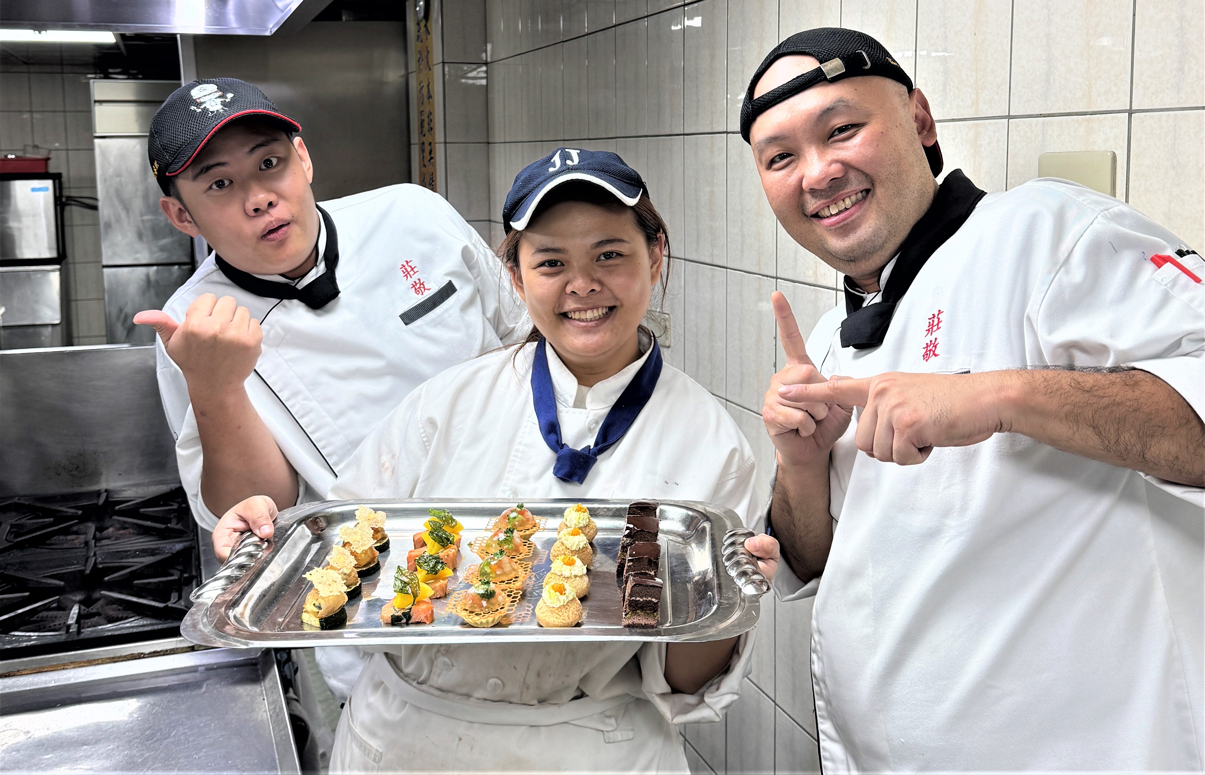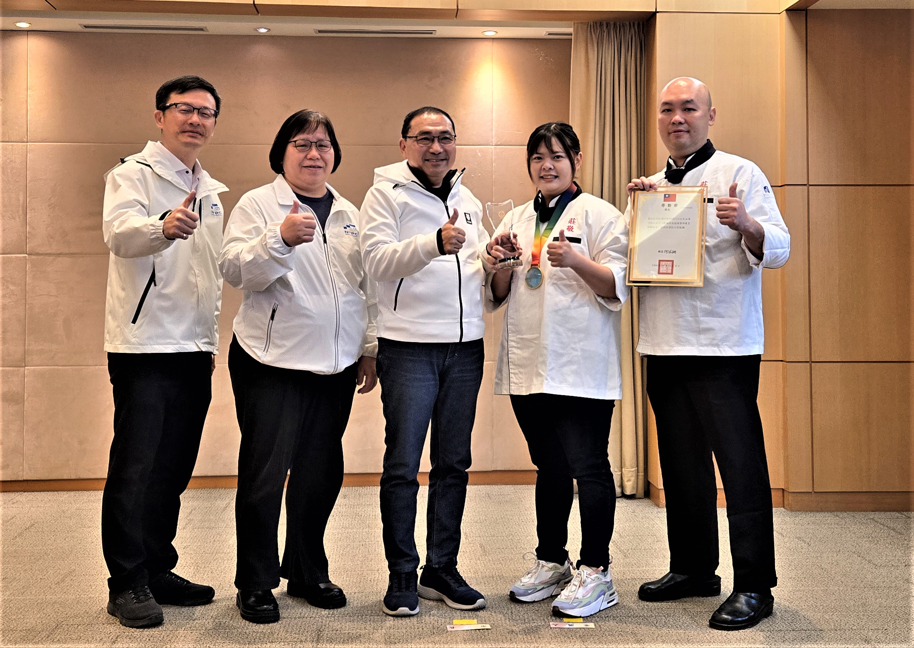 榮獲西餐烹飪第一名的莊敬工家汪姿岑同學表示,謝謝學校提供專業的培訓場地與資源,更特別感謝方政裕師傅與陳睿智師傅的悉心指導,時常陪伴練習到深夜,提醒菜色擺盤、烹調手法等;也感謝周賢澔同學的創意協助與同校好友沈方惠(2023年法國國際展能節職業技能競賽西餐烹飪金牌)的鼓勵,期許自己能在技能之路上展現更多風采,為自己與學校爭光。