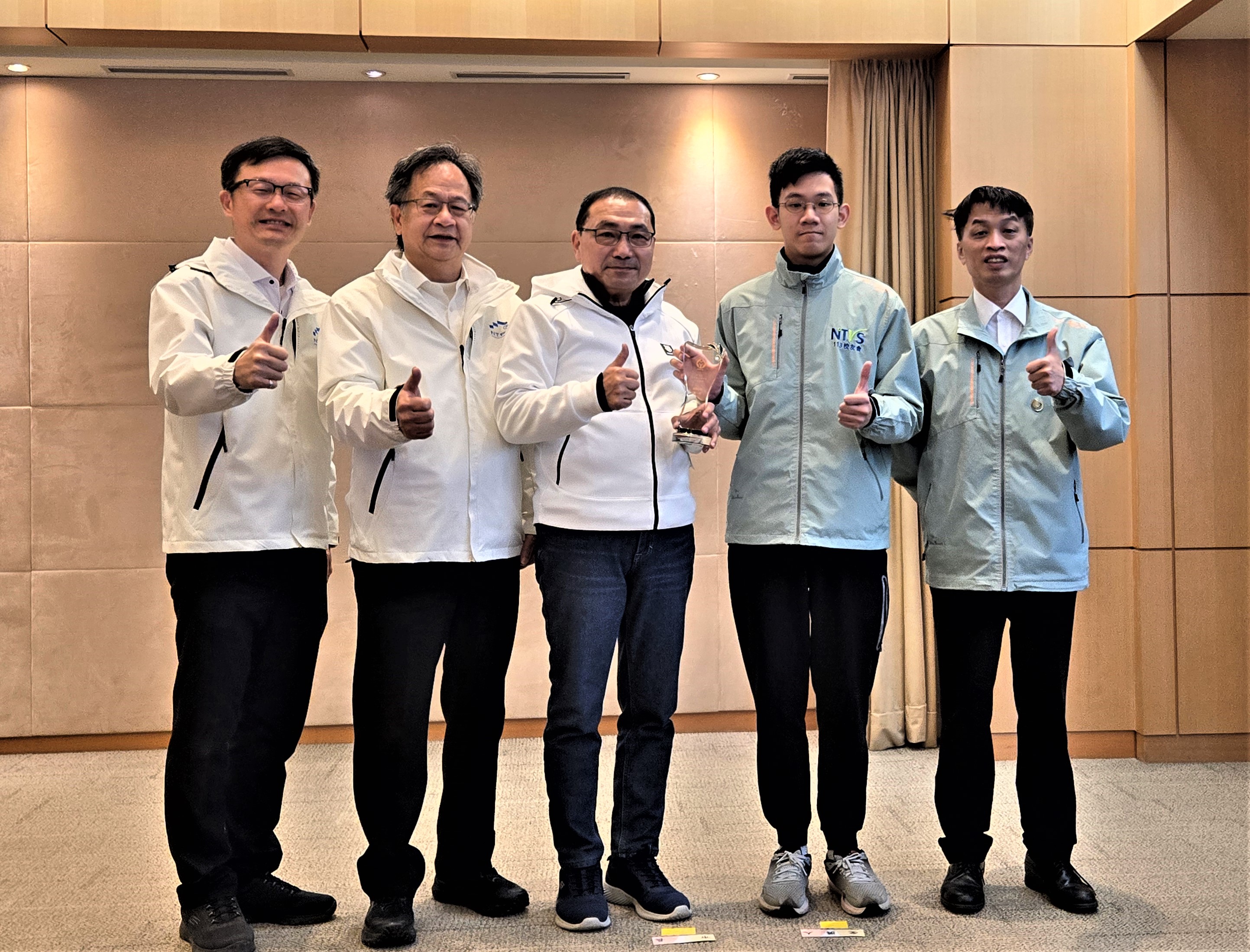 新北高工許邵安同學(右2)榮獲網頁設計職類第一名於市政會議代表獻獎 圖/新北市政府教育局提供