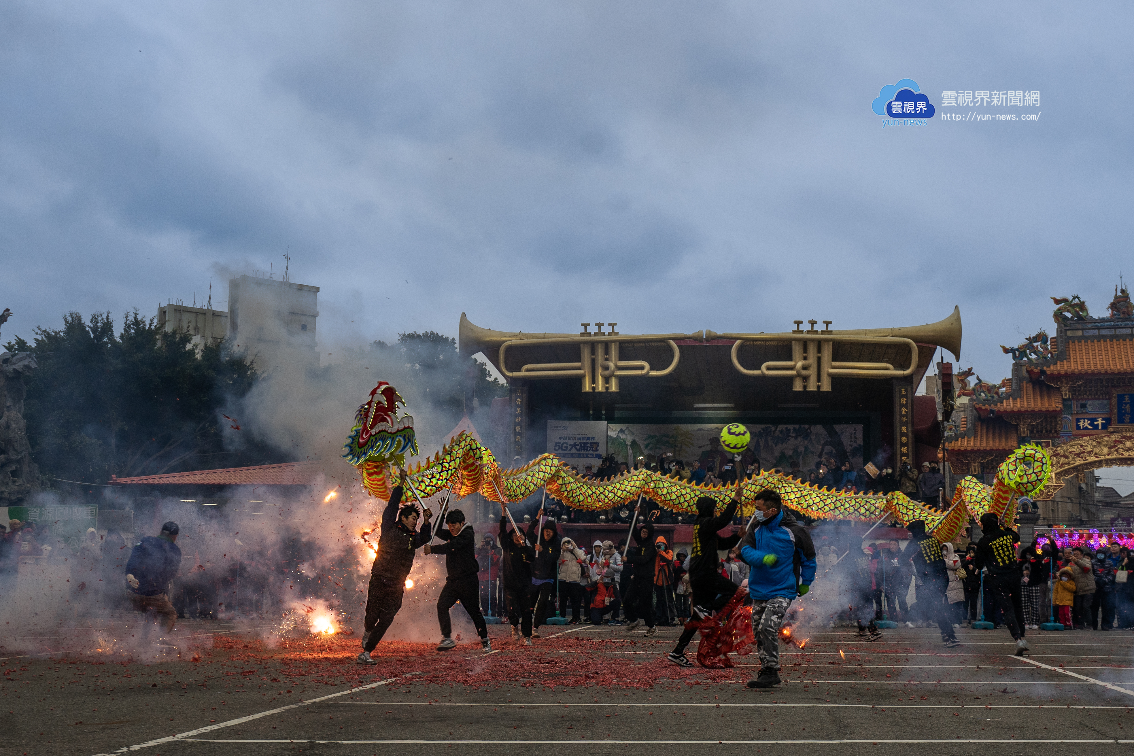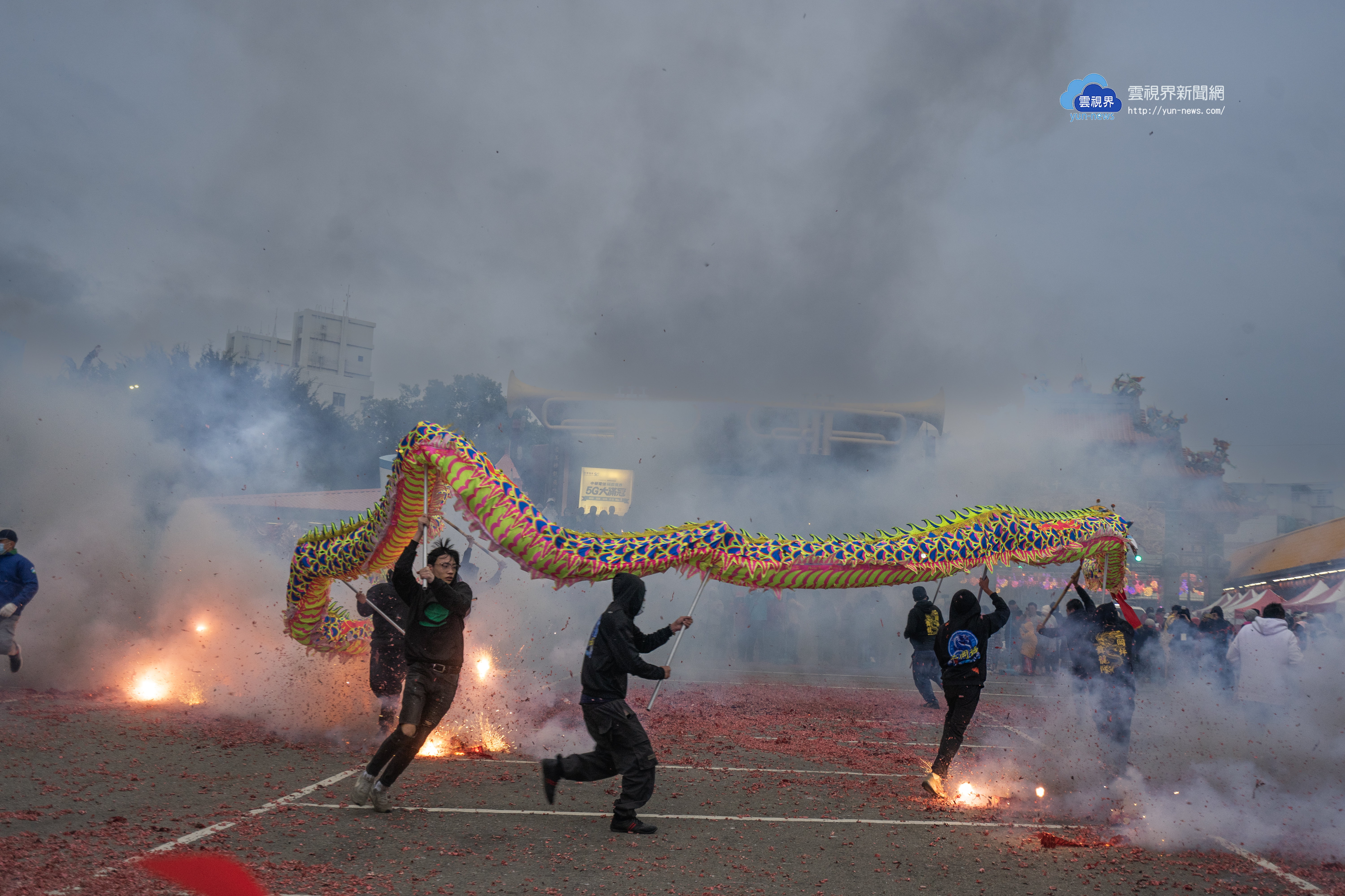 2025苗栗火旁龍系列活動-火旁龍嘉年華於2月8日下午6時在苗栗玉清宮前廣場開幕。來自國內外及苗栗在地的33支表演團隊,沿著玉清路一路前行至貓裏喵親子公園,沿途熱情的民眾夾道歡迎,掌聲與歡呼聲此起彼落,為各表演團隊喝采,共同營造活力四射的嘉年華氛圍,今年活動亮點之一是由苗栗縣長鍾東錦、苗栗縣政府文化觀光局與苗栗市公所共同邀請來自中國湖北省武漢市的高龍來台,龍燈巡庄為鄉親驅邪納福。