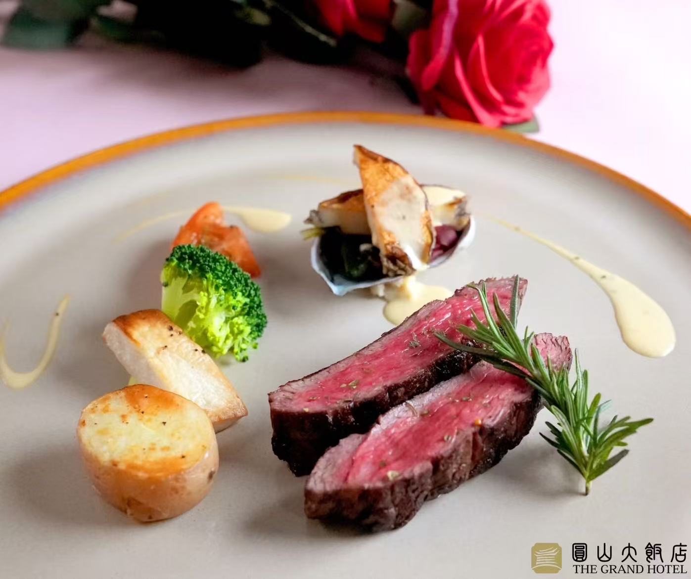 用美食為愛加溫!圓山牛排館特別推出情人節期間限定套餐,主餐準備鮮嫩多汁的頂級美國老饕牛排,以及微脆口感的伊比利松阪豬,或選擇入口即化的紅條石斑,湯品為經典濃湯英格蘭海鮮巧達湯,熱前菜則佐以蒜香龍蝦、帕尼布尼、金沙泡泡,帶來一系列清爽又開胃的創意料理。當晚還附贈情人專屬氣泡酒,以及加購優惠入住天際客房,營造再度怦然心動的愛戀時刻,每位情人專屬價2,880元加一成服務費。