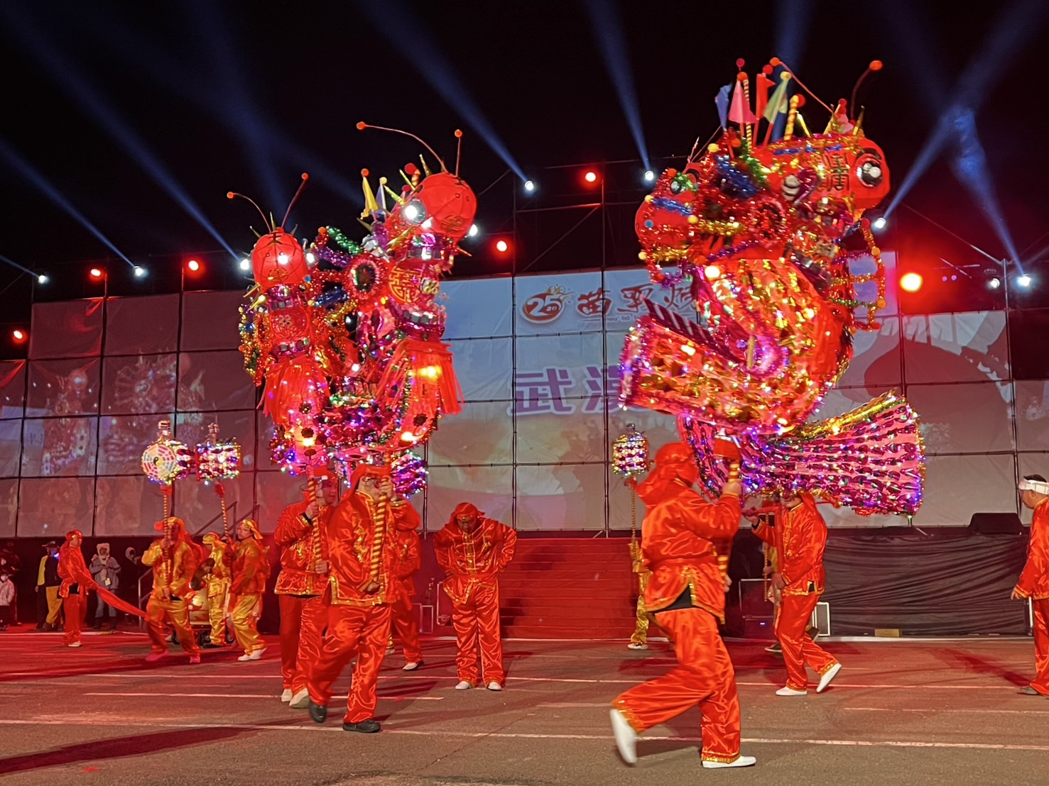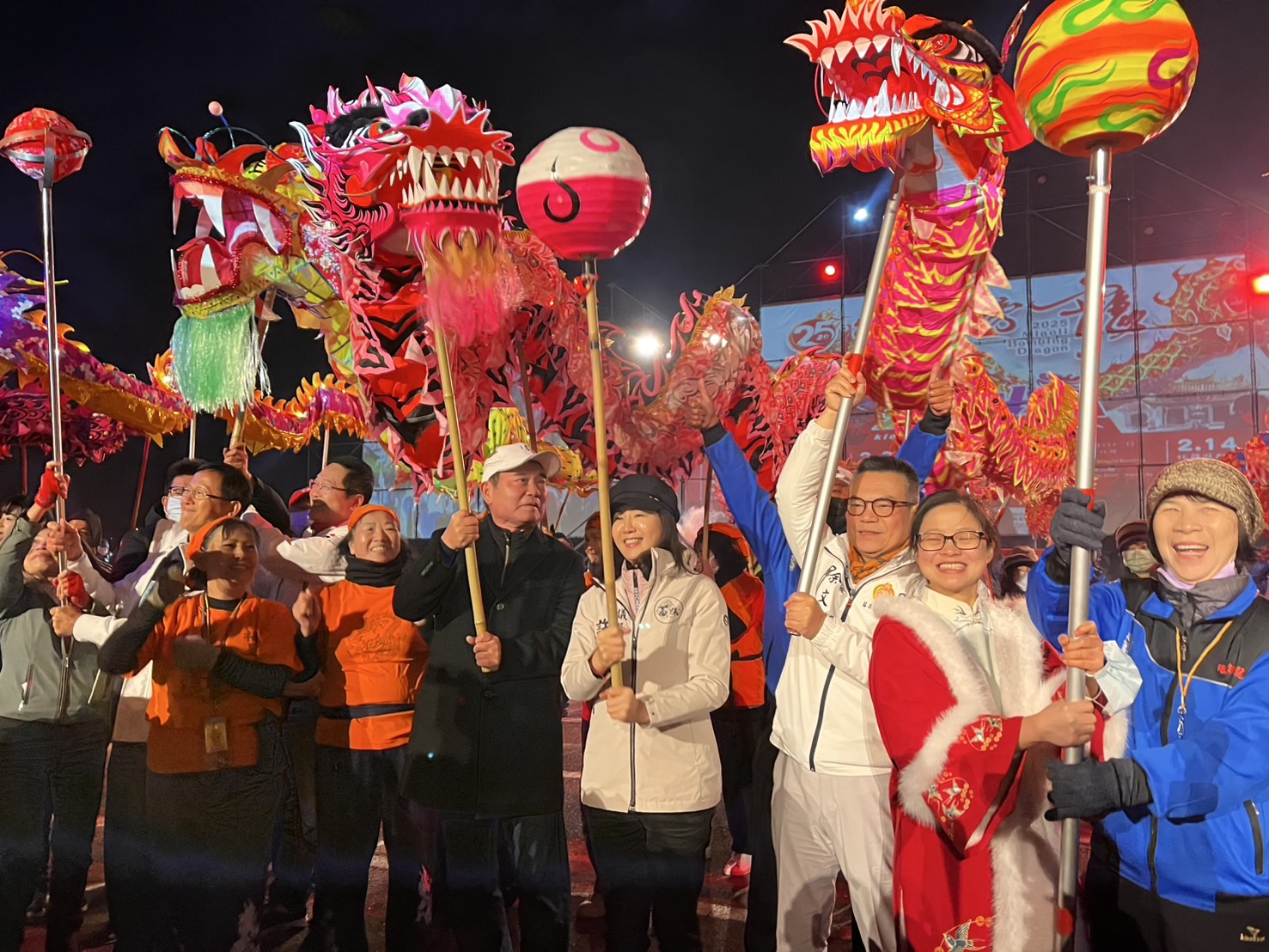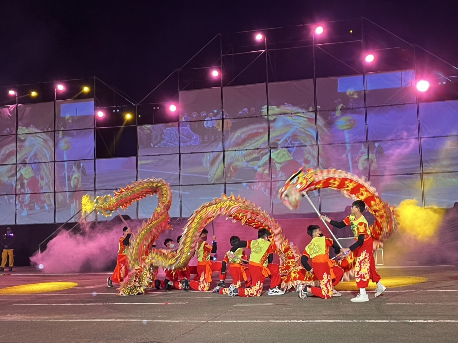 轉場表演邀請到建功國小競技龍隊的LED夜光龍演出,以炫目的燈光和精湛的舞龍技巧展現力與美。此外,新樂舞蹈團與李美枝舞蹈團則以柔美的舞姿與優雅的音樂,在中場帶來一段充滿詩意的表演,緩和了觀眾的情緒,為後續精彩演出鋪墊氛圍。隨後,由大陸武漢高龍團隊登場,其高龍造型獨具匠心,透過舞者剛勁有力舉著高龍,表演場面宏大而氣勢磅礡,贏得全場觀眾熱烈的掌聲,瞬間點燃活動的第一波高潮。