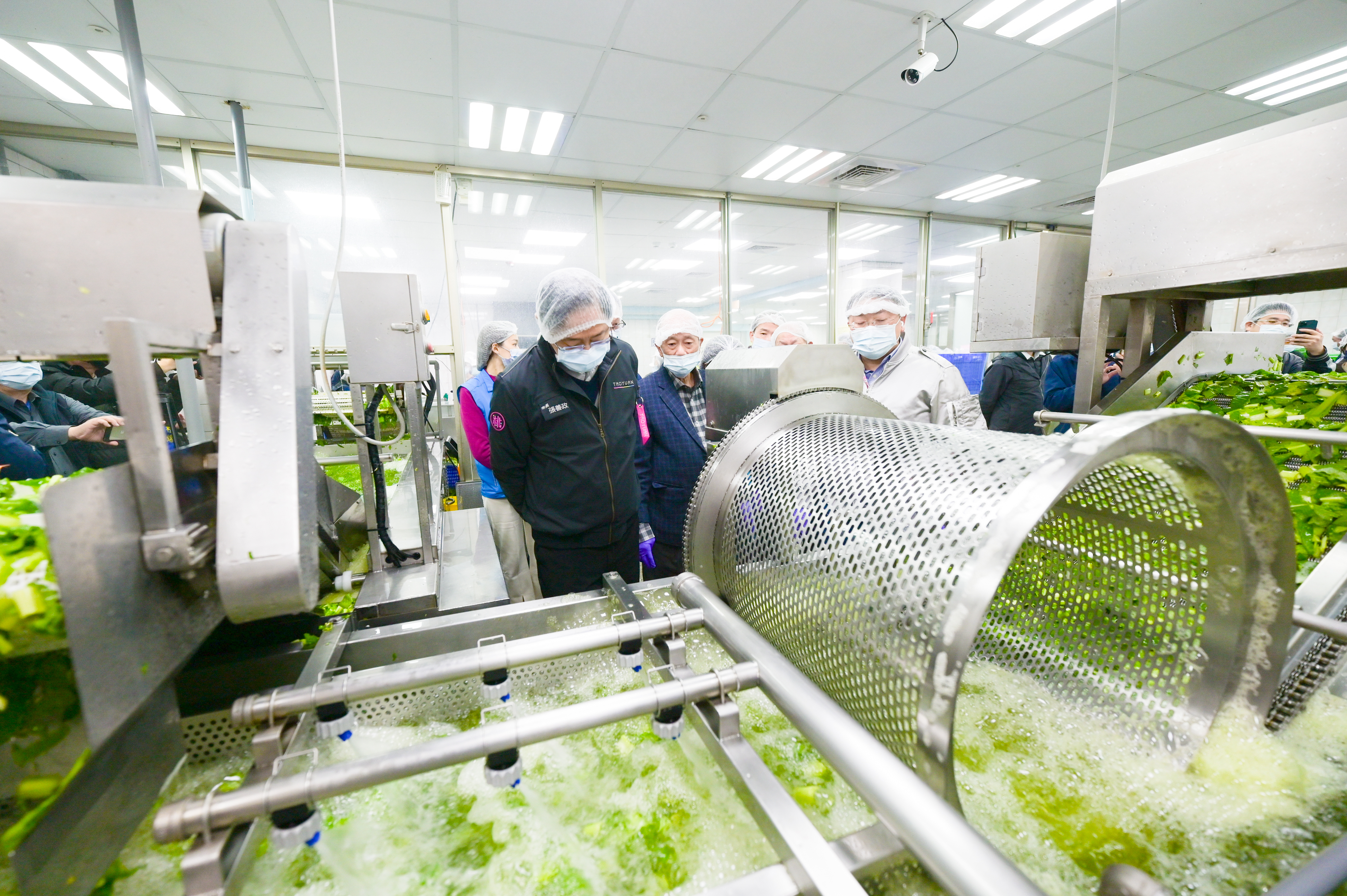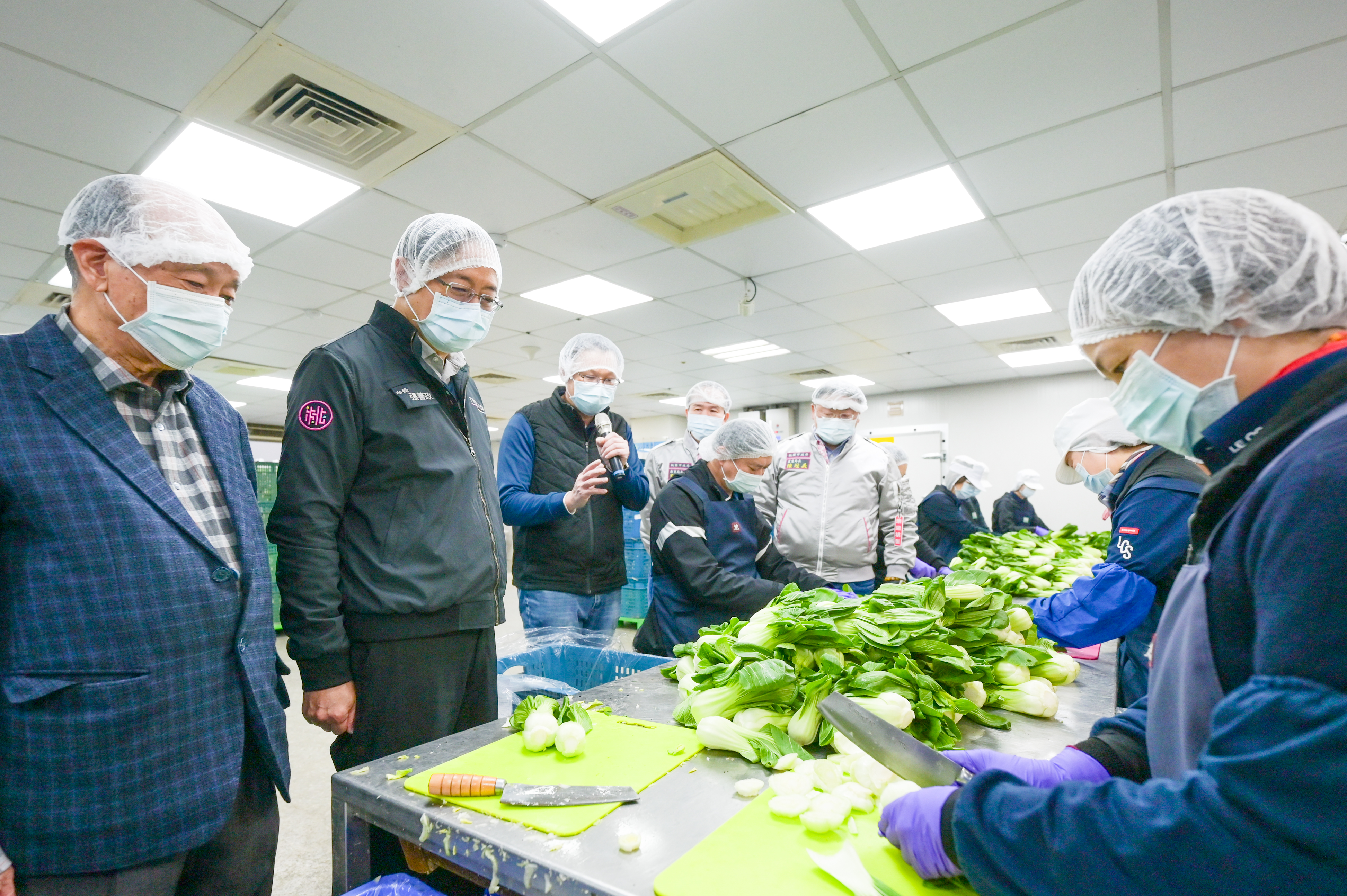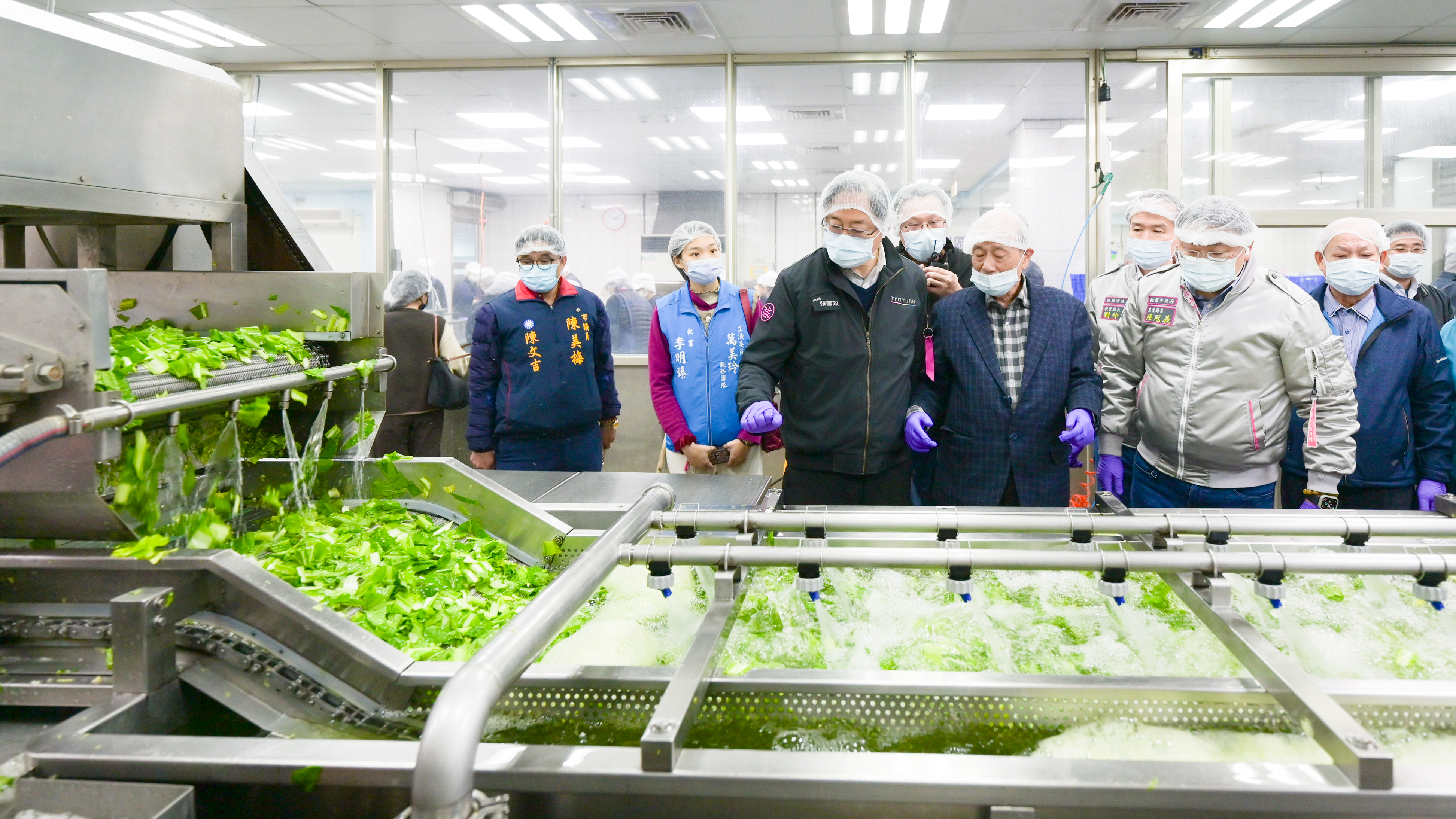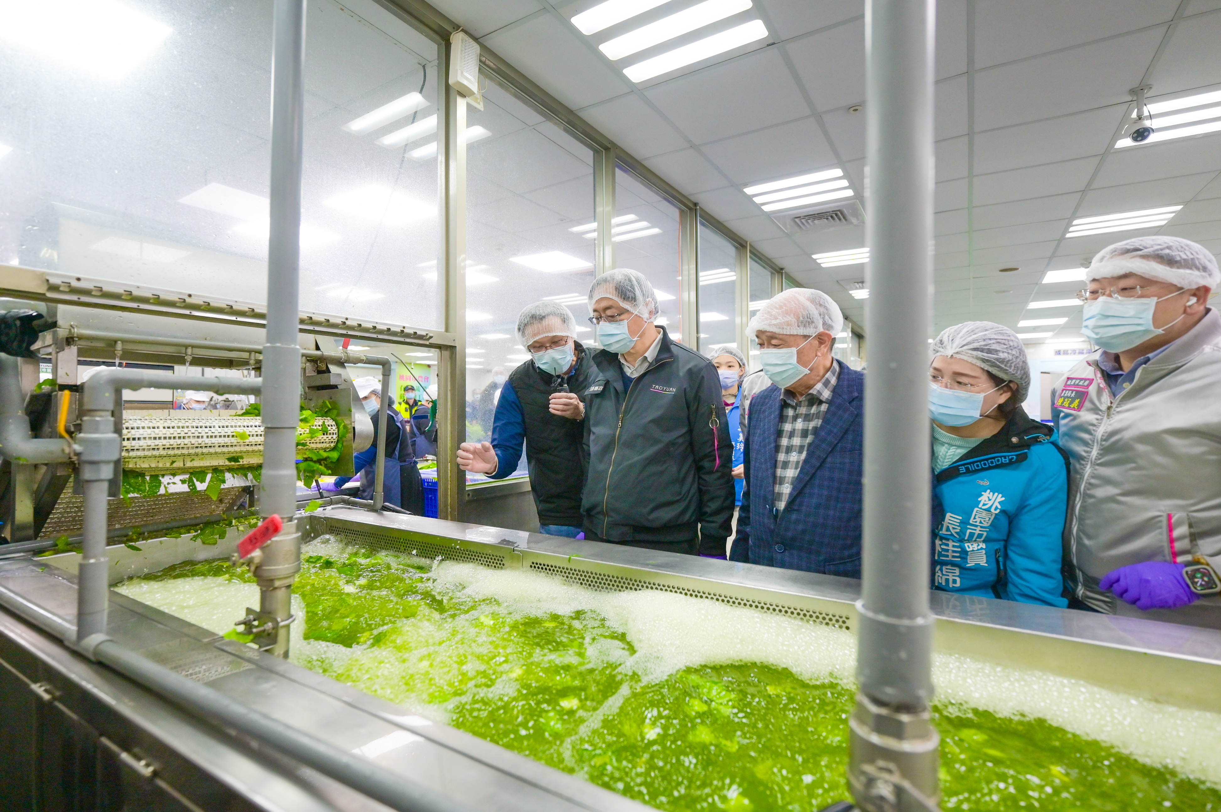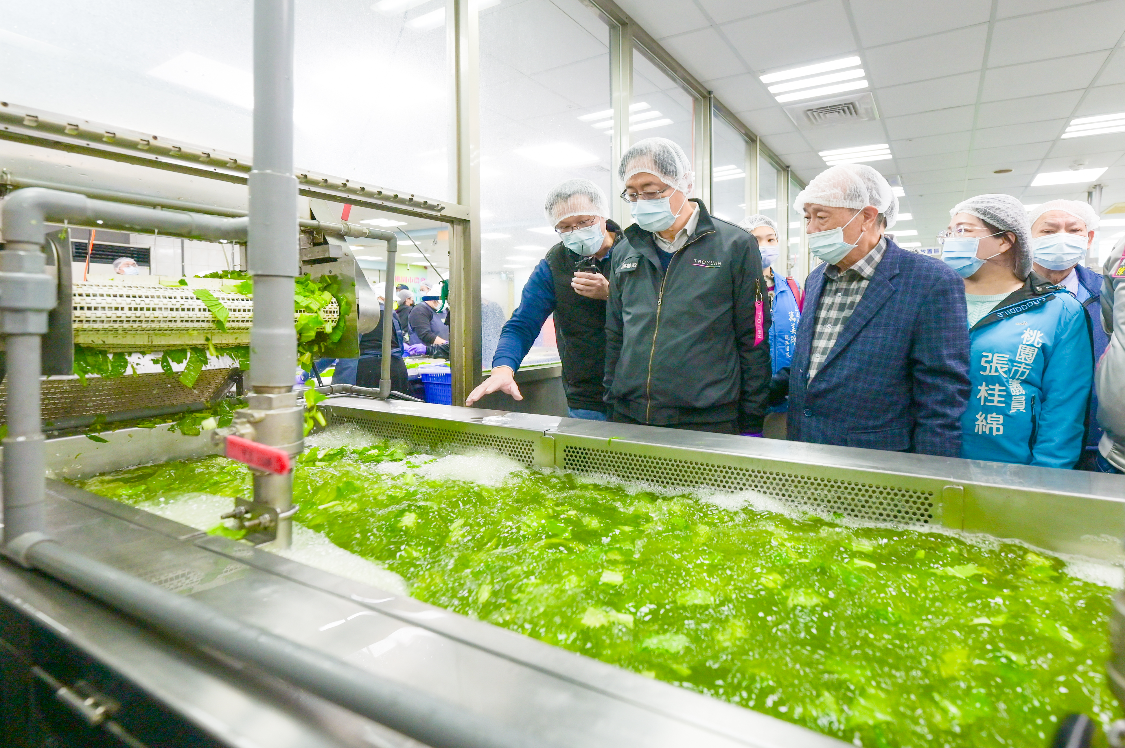 桃園市長張善政2月10日下午前往桃園市農會,視察「桃園市營養午餐有機蔬菜截切場」。張市長表示,本市實施公私立國中小學生免費營養午餐政策即將邁入第3年,市府持續關心入菜食材的營養及安全,有機蔬菜送交團膳業者前透過裁切、清洗及包裝等過程,確保青菜無農藥、蟲害和雜質,讓學童吃得安心、家長放心。