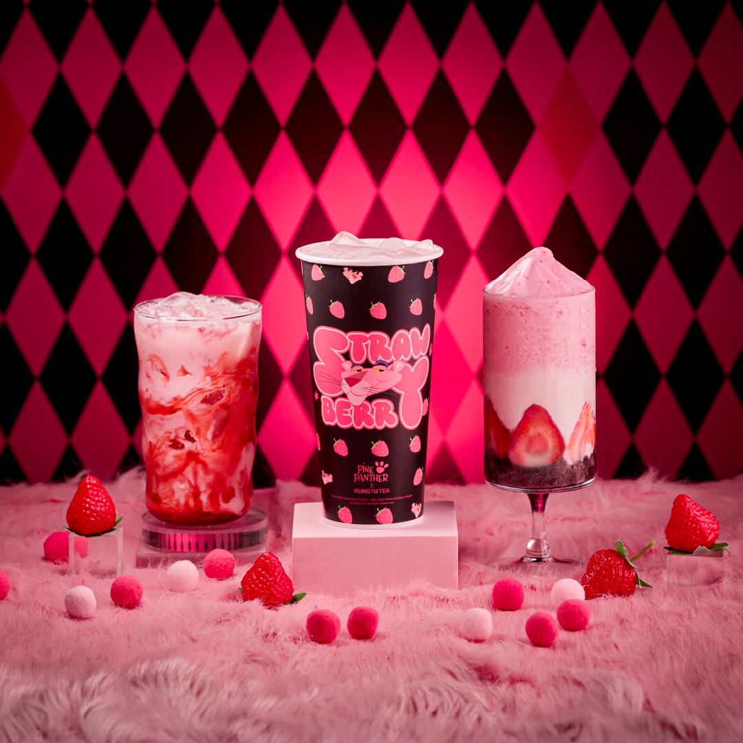功夫茶巧妙加入頑皮豹元素,以高識別度的粉色視覺,讓甜美的「草莓慕斯」與「草莓雪莎」成為最吸睛的手搖飲品。根據市場調查,近年來草莓系飲品在冬春季節的銷量持續攀升,消費者對於限定款聯名商品的接受度也較為高漲,尤其是在情人節這種儀式感濃厚的節日,粉嫩色系飲不僅能滿足消費者味蕾,更是社群媒體上最吸睛的打卡亮點。
