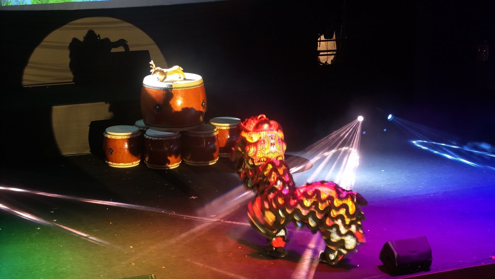 傍晚時分,由2003年成立的宋坤傳藝帶來的酬神大戲震撼登場,始終堅持傳承與創新,屢次受邀參與國內外重大活動,更以卓越的藝術表現,將台灣文化藝術推向世界舞台。本次演出的故事大綱依序為木偶開講、晨鐘暮鼓、祈願、善念報恩、女鼓神、神恩賜福,故事闡述主角為解詛咒深入險境,取回千年白鶴靈芝供奉,途中奮力抵抗惡獅搶奪而犧牲自己,其善念使主角化身女鼓神,剷除黑暗勢力為大地帶來光明與祥和。宋坤傳藝除將民俗技藝經典舞獅唯妙唯肖融入,更將傳統鼓樂呈現地淋漓盡致,全場以故事主題導引各類型演出,使演出更具有起承轉合,讓觀眾欣賞一齣精采的酬神民俗戲劇。