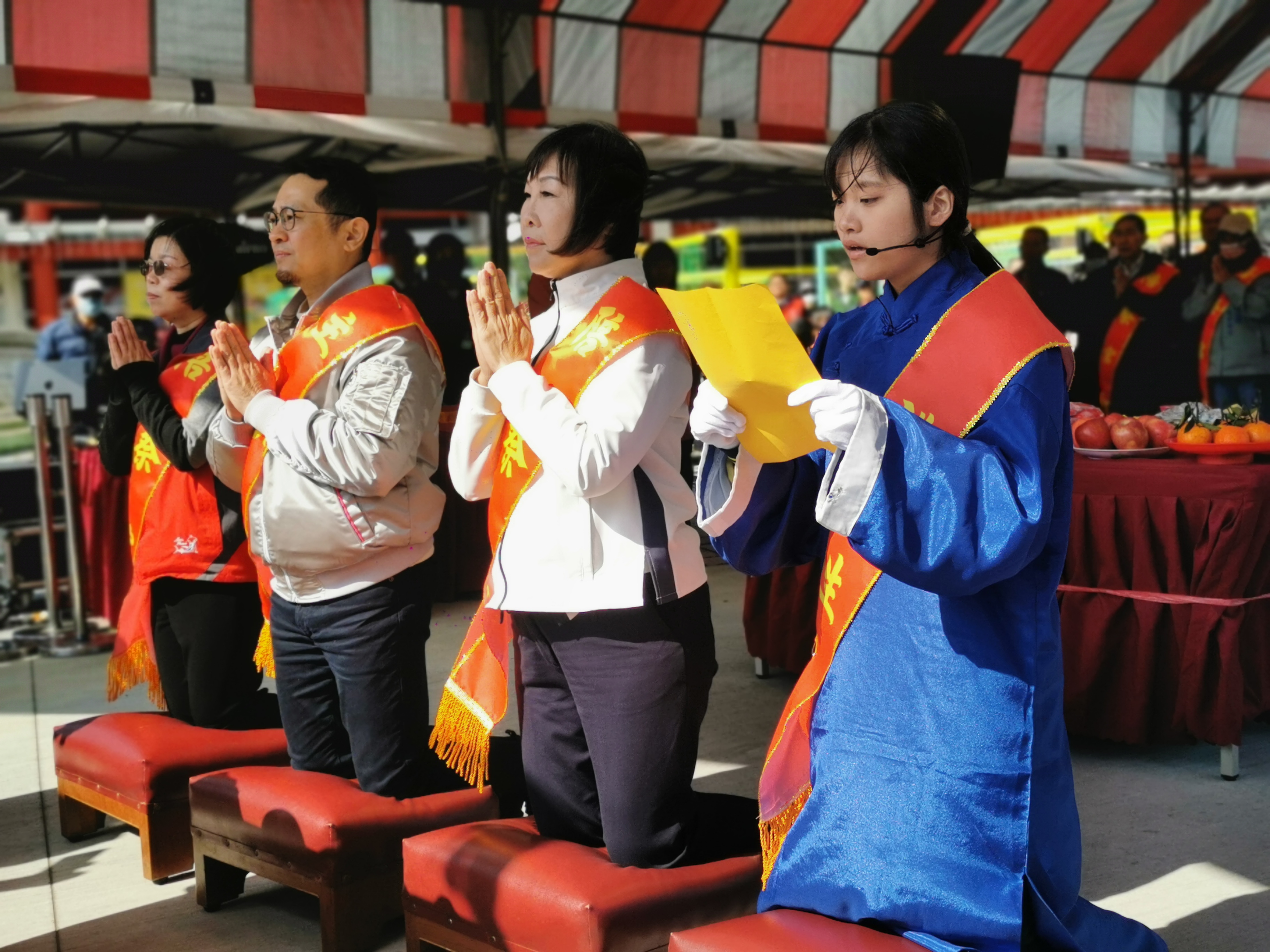 2025桃園天穿日活動祭天儀式,由客家局長范姜泰基擔任主祭官,進行客家傳統「三獻吉禮」,藉此表達對天地的敬意。