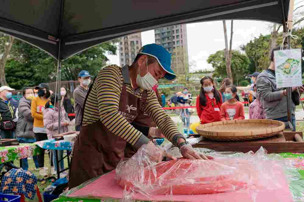 東勢師傅手切新丁大粄 圖/台北市客家文化基金會提供針對親子家庭,春慶系列活動除新丁新枝大冒險外,在2/22(