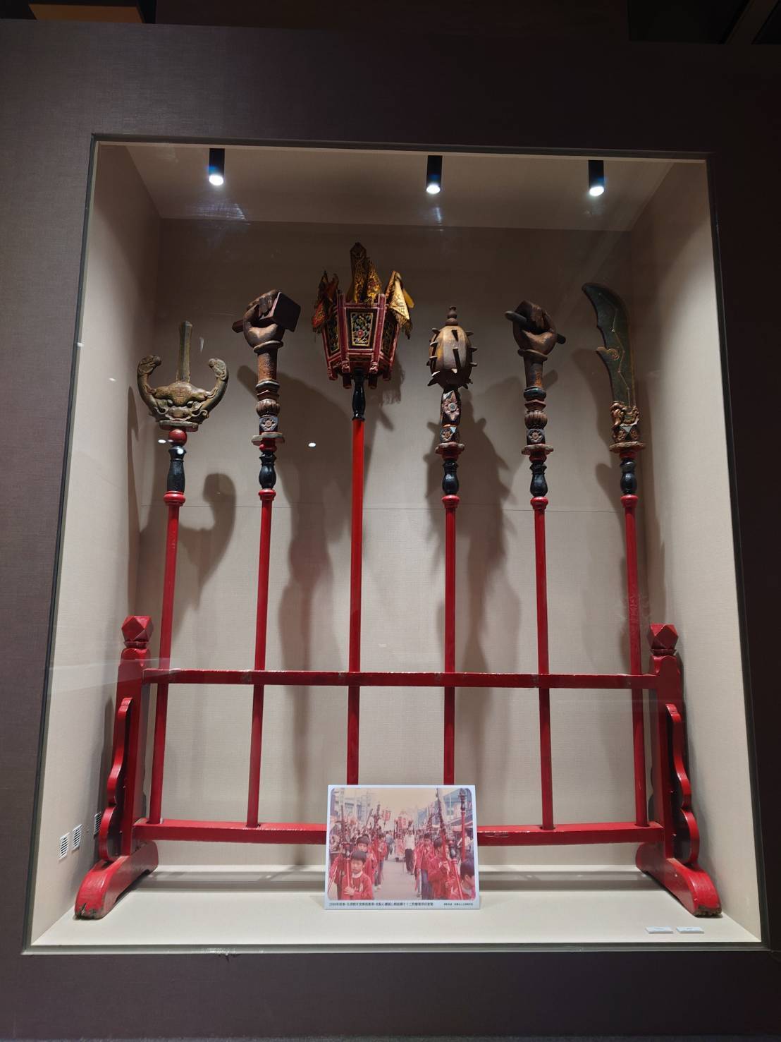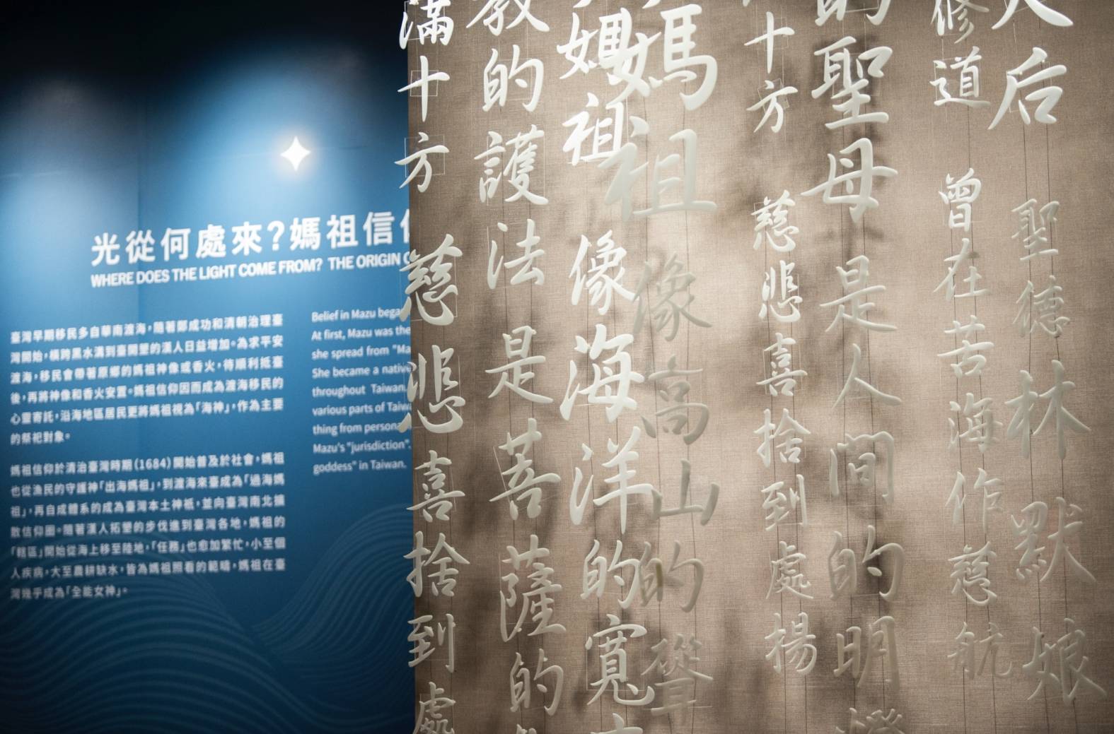 此次展覽古物中除了故宮南院曾展出的北港朝天宮重量級的王得祿「海天霛貺匾」外,還有許多首次出借或公開亮相的珍稀媽祖古(文)物,包括斗六長和宮大媽、三媽象徵神明身分證的入神命書和清代信眾敬獻石雕獅座燭台、西螺福興宮鎮殿媽手工神衣與風調雨順國泰民安執事牌、西螺廣福宮蔚藍天匾、六房媽過爐專屬銀製跋杯、金屬製關防與牽起土庫媽與六房媽的深厚情誼的土庫順天宮日式真言宗觀音像等。這次展出展品大多仍在所屬宮廟中持續「服役」狀態,與其他博物館中類似文物的靜態展示大不相同,極具活力與歷史感。
