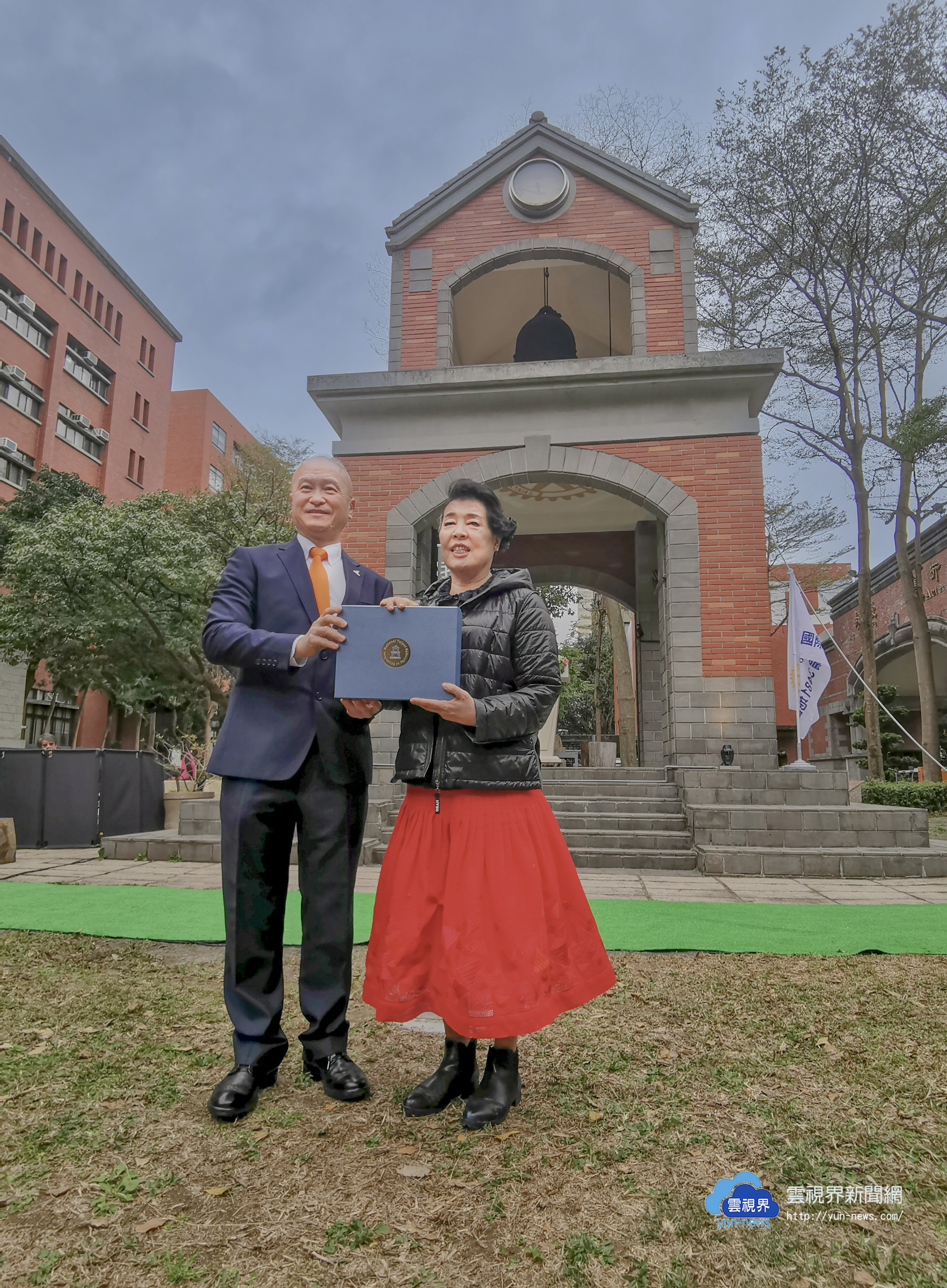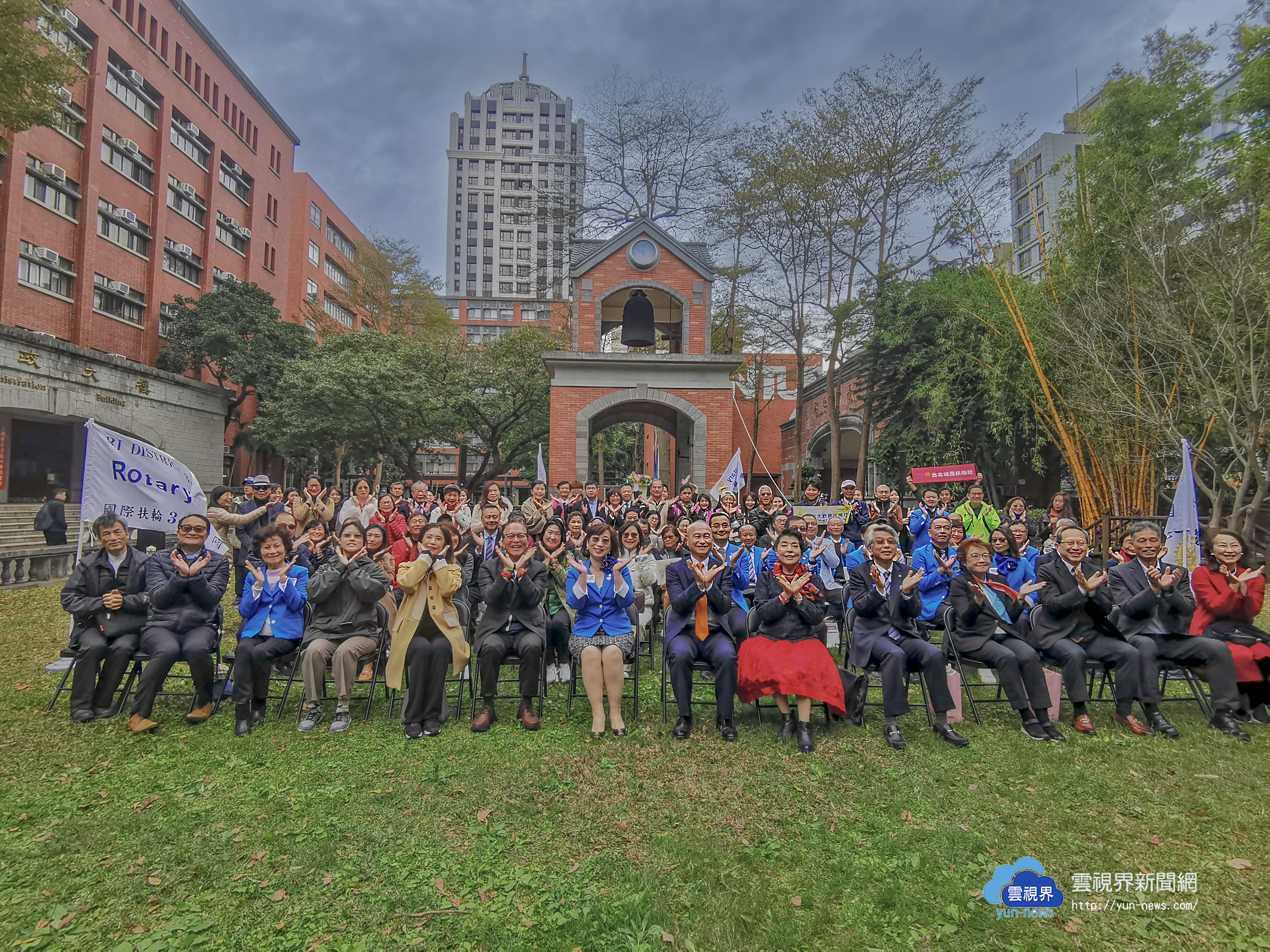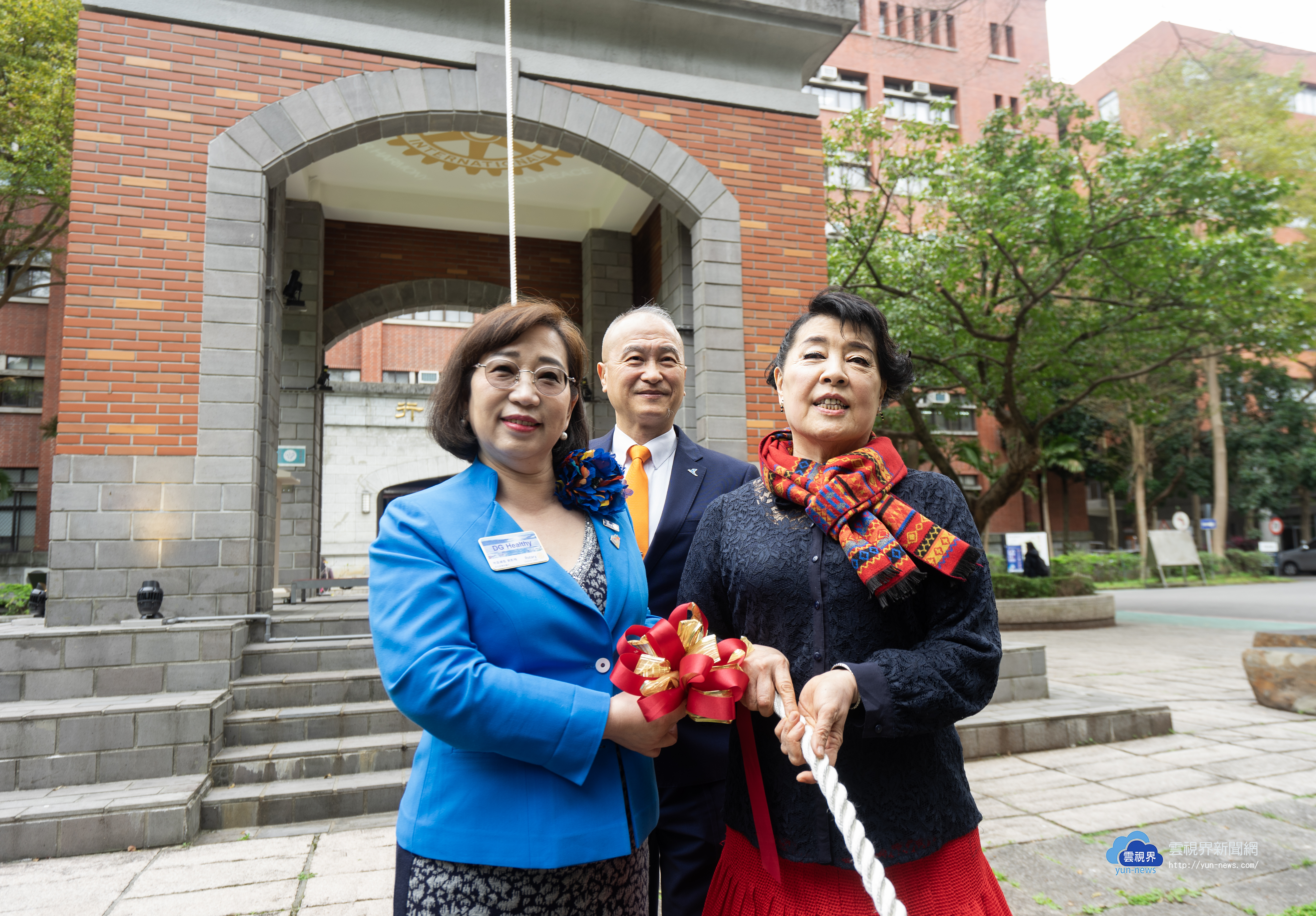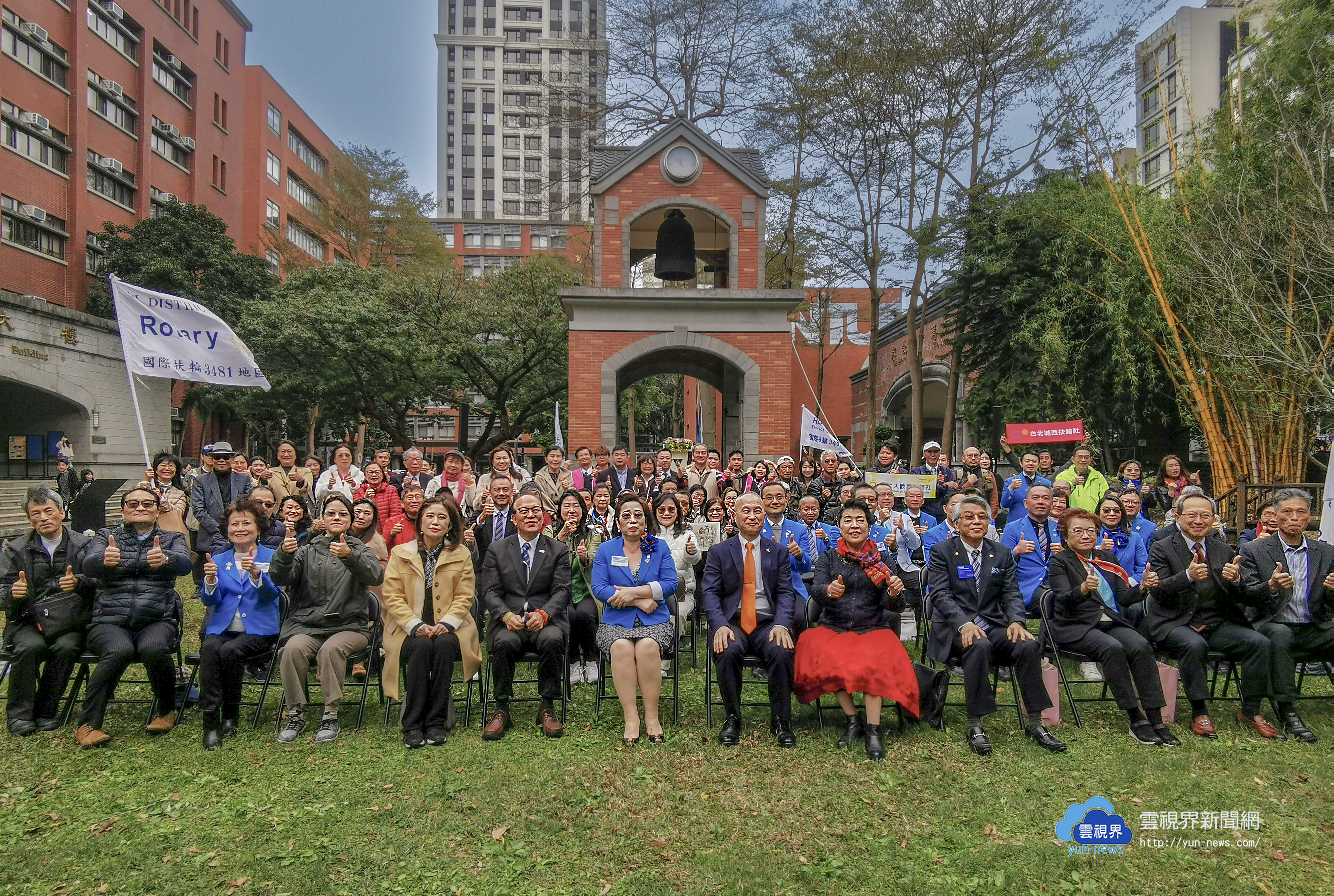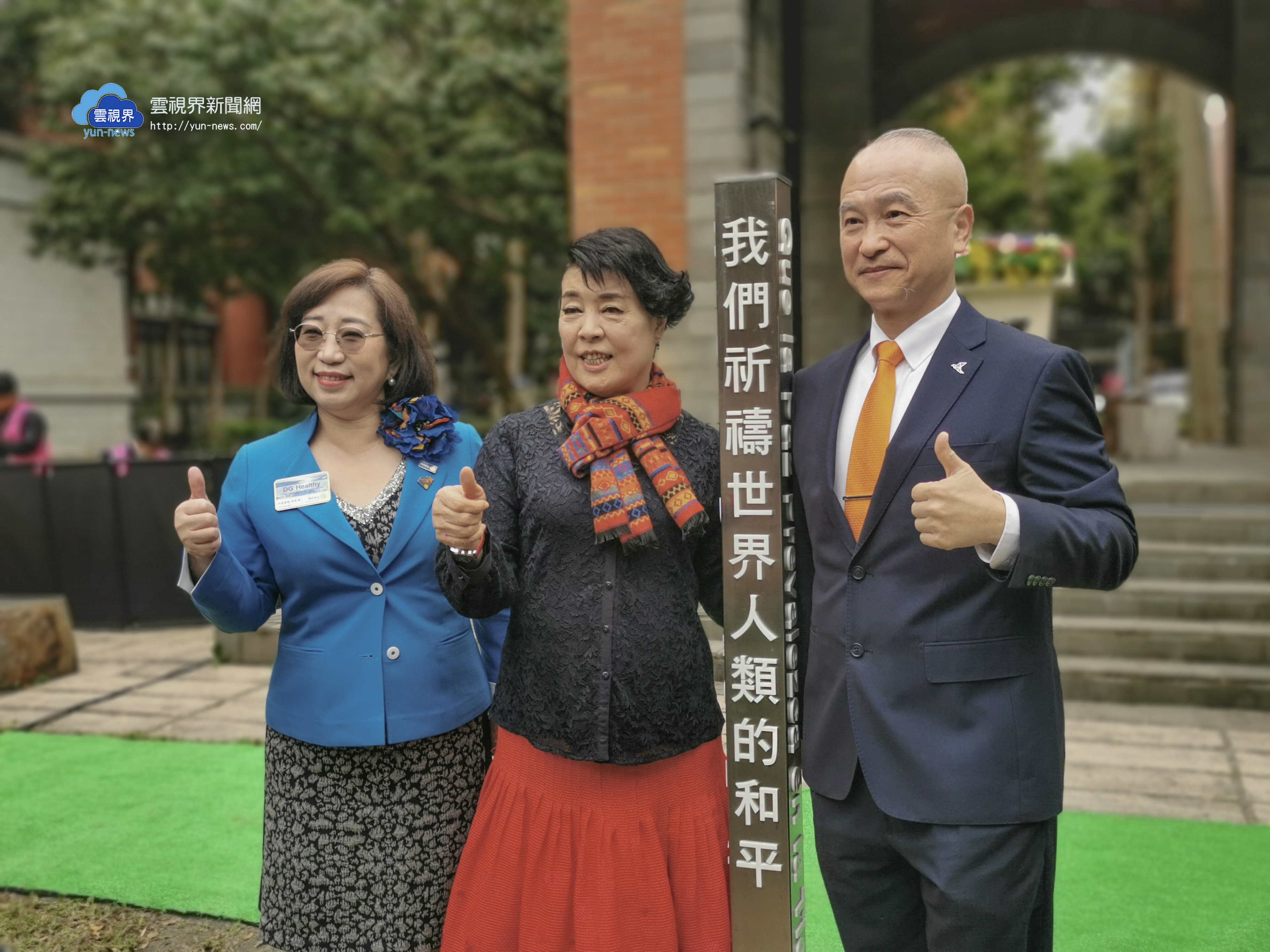 國際扶輪3481地區劉影梅總監及國北陳慶和校長及簡文秀教授共同敲響和平鐘 圖/雲視界記者魏雲日攝影