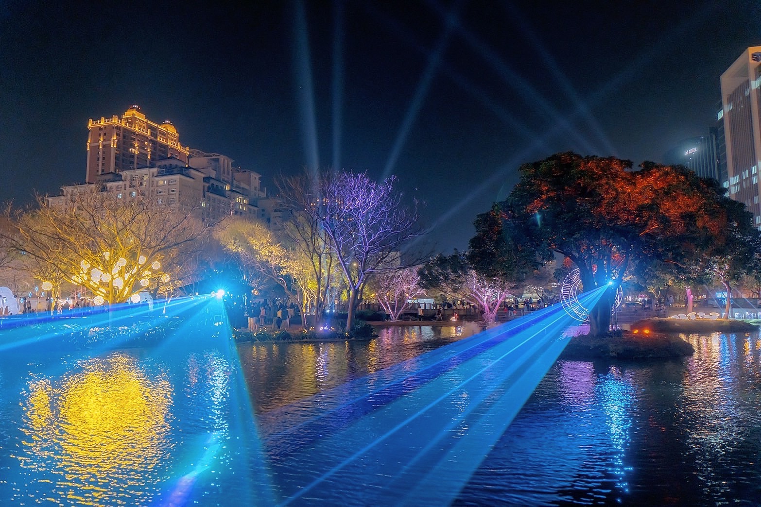 2025竹北光節《水生繁花雷射秀》為新竹縣首次燈光秀,將自然與科技完美融合,打造一場沉浸式的光影饗