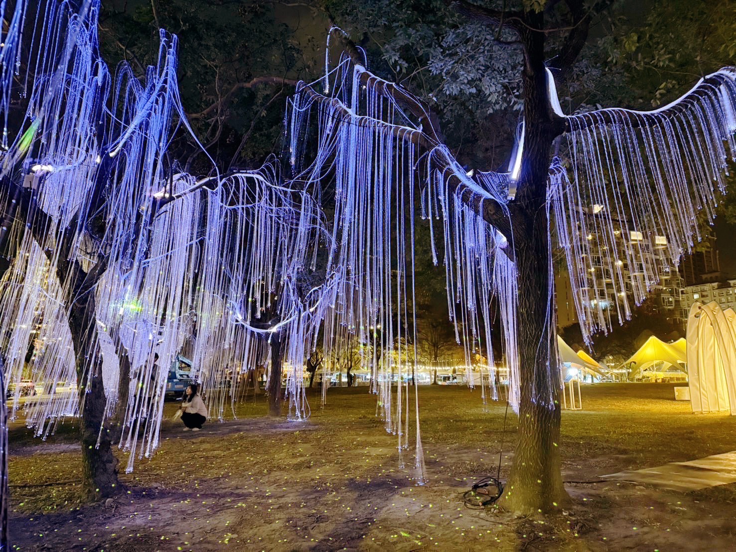 圖說:2025竹北光節於水圳公園持續到23日。而水圳公園西面光環境,網友說有如阿凡達世界樹 圖/竹北市公所提供