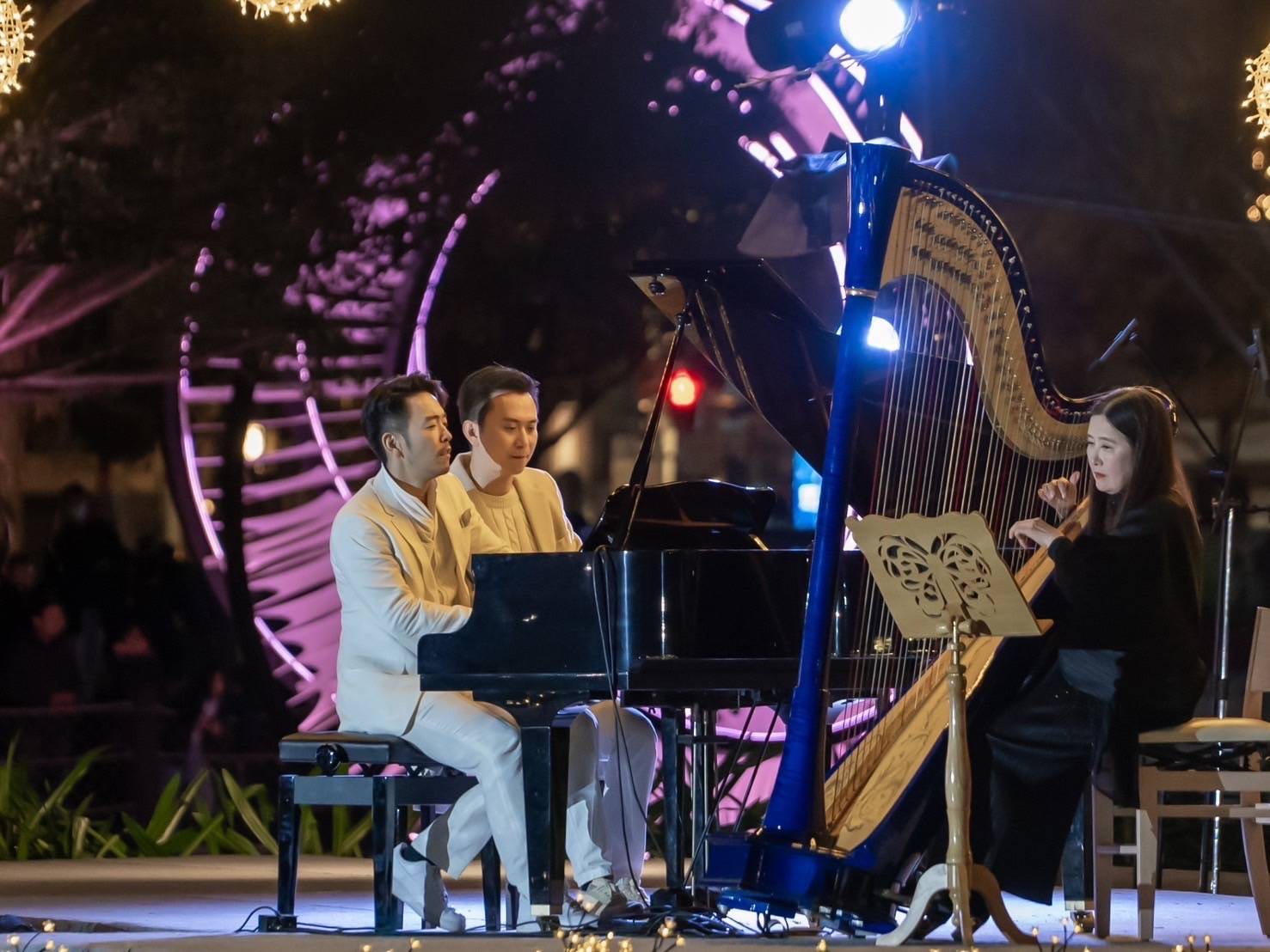 星光場的「水上音樂會」,以天為幕、以地為席、以樹與燈光為景,木棧灣區與改良後的低光廊道成為市民共賞音樂的最佳區域。邀請到國家交響樂團(NSO)豎琴首席解瑄、古典鋼琴演奏家嚴俊傑,攜手興隆國小弦樂團、竹北高中舞蹈藝才班及蝶影舞蹈團,以音樂與舞蹈交織出一場震撼人心的美學盛宴。