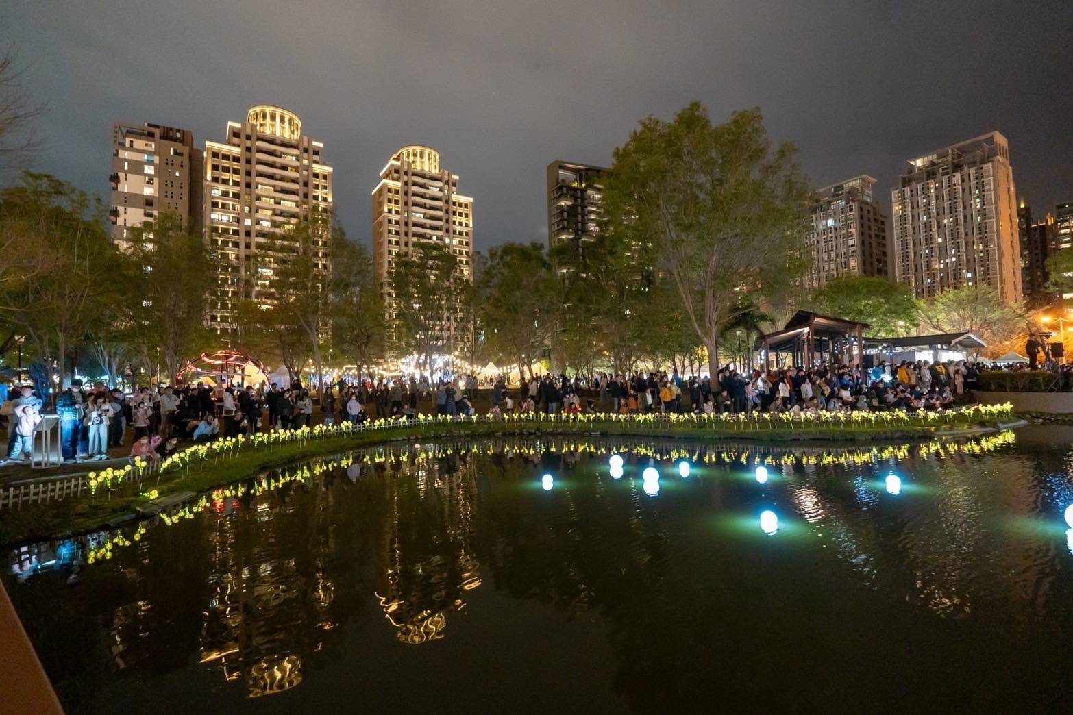 2025竹北光節22日於水圳之心舉行音樂會,有日光場的「圓夢舞台」與星光場的「水上音樂會」,為16天的光影盛宴再推上另一波高潮。今年吸引逾50萬人次參與,刷新去年42萬人記錄,更讓竹北燈會連續兩年在網路上掀起話題,被譽為「怎麼拍都好看的夢幻仙境」,也讓民眾熱烈期待來年的精彩呈現。