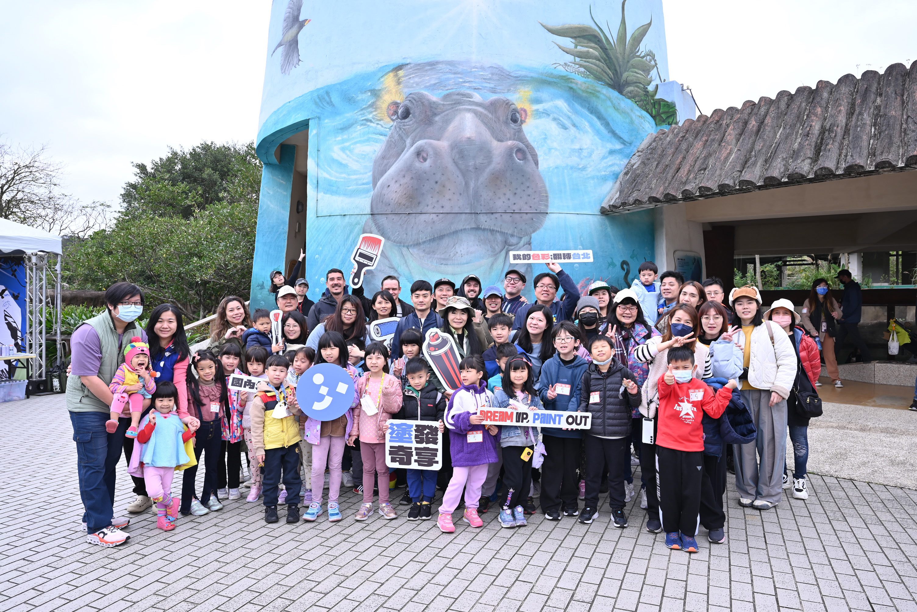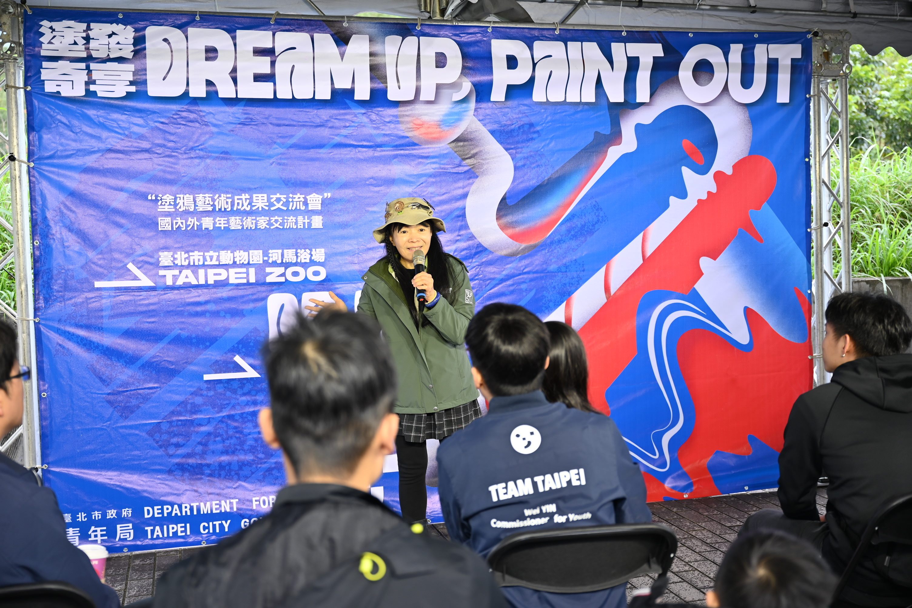 2月22日,青年局於動物園內的巨大萌獸河馬壁畫前舉辦「Dream Up, Paint Out.」塗鴉藝術成果交流會。活動不僅展示藝術家的創作成果,也讓熱愛動物與塗鴉的親子能夠親身體驗噴漆創作,留下難忘回憶。活動現場聚集多位藝術界與社區代表,包括唐豐藝術總監林怡君、萬華區頂碩里里長溫宗霖、味全龍職業棒球隊代表、Citymarx塗鴉團隊負責人鄭子靖以及塗鴉藝術家頌Song、ALLO、ASERK、GARE等人,共同感受塗鴉藝術的自由與魅力。