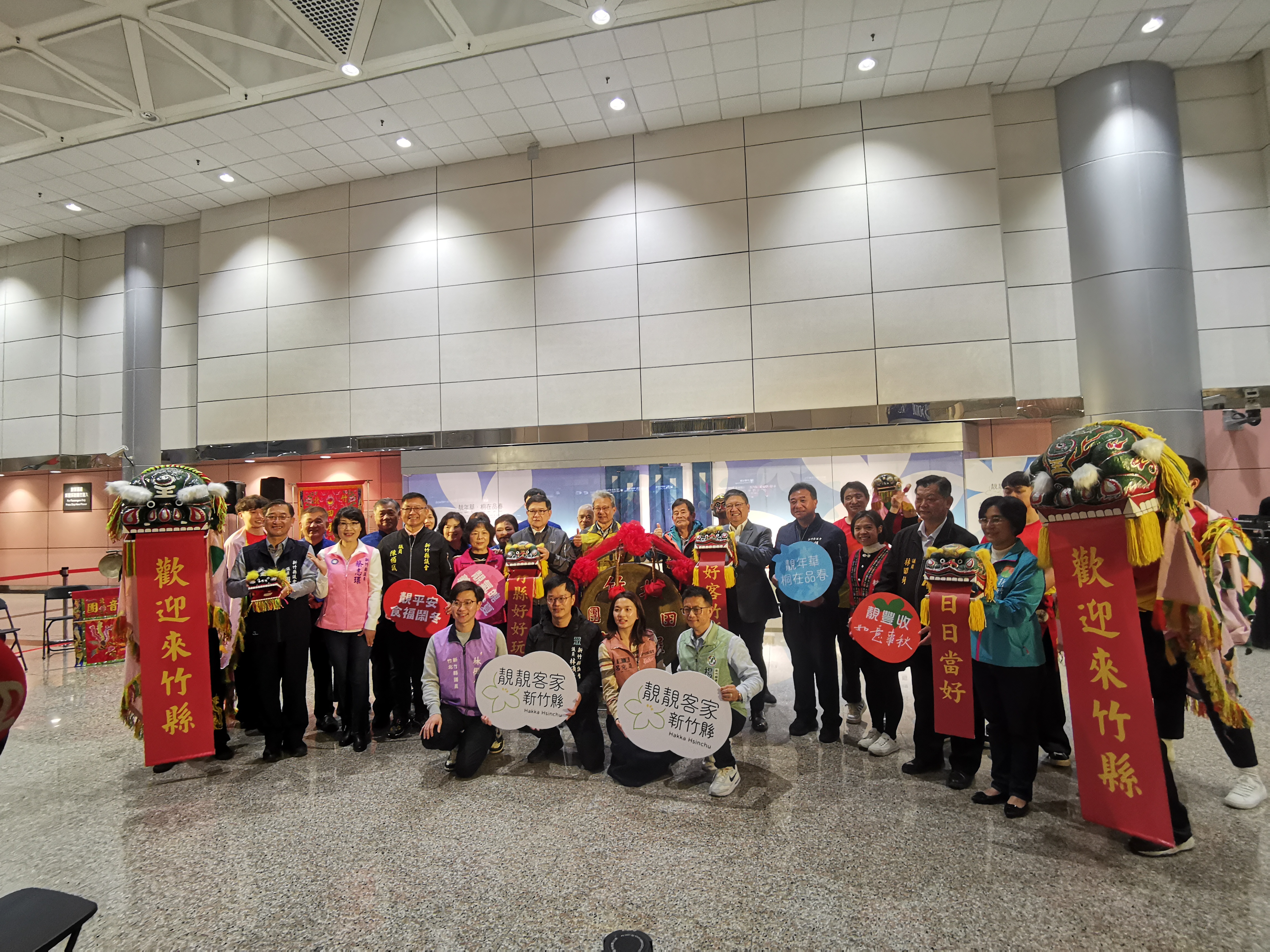 「靚靚客家新竹縣」特展今(26日)舉辦開幕式,由「田屋北管八音團」及「新竹縣客家武術舞獅發展協會」的精采演出揭開序幕,新竹縣長楊文科與桃園國際機場公司董事長楊偉甫也親自出席,並在現場贈送客家點心給旅客,熱情邀請民眾即日起至5月21日,一起來欣賞新竹縣客家文化獨特魅力的展覽,並安排一趟新竹縣客庄之旅,親身體驗多元客家文化面貌與獨特魅力。