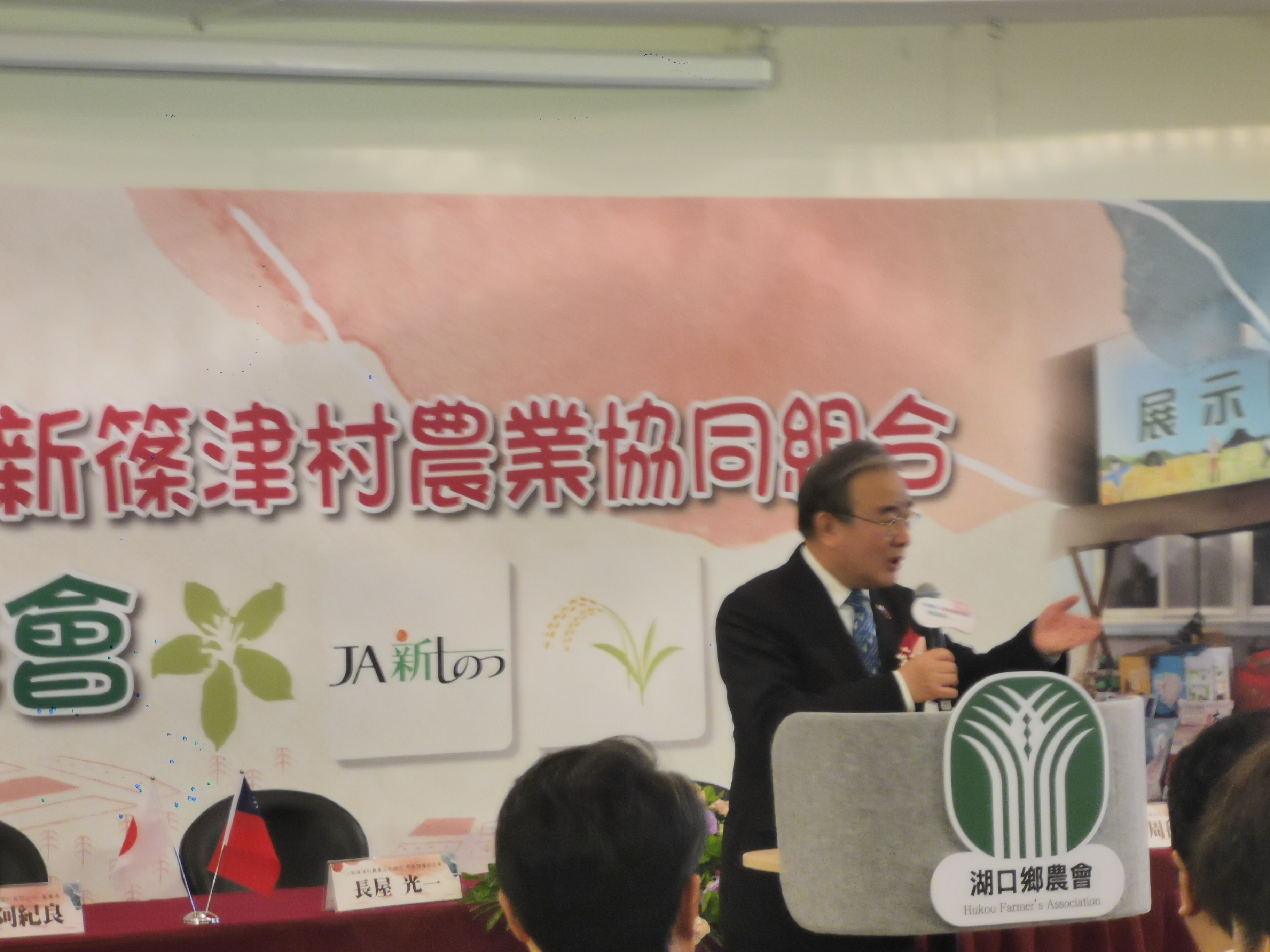 農業部政務次長胡忠一說,近年農產品外銷成績亮眼,台灣所生產的稻米,不管是品質、口感及特性與日本米相近,因此當日本缺米時,台灣米較符合日本人的口味,成為台灣米的優勢,輸出日本有一定難度,需要與日本進口商合作,才能爭取到配額,以及通過日本多項檢驗項目,但他對台灣米有信心。此外新篠津農協跟新竹縣一樣,都有農民直銷站,可以給予彼此更多交流學習,盼透過交流幫台日創造產業雙贏。