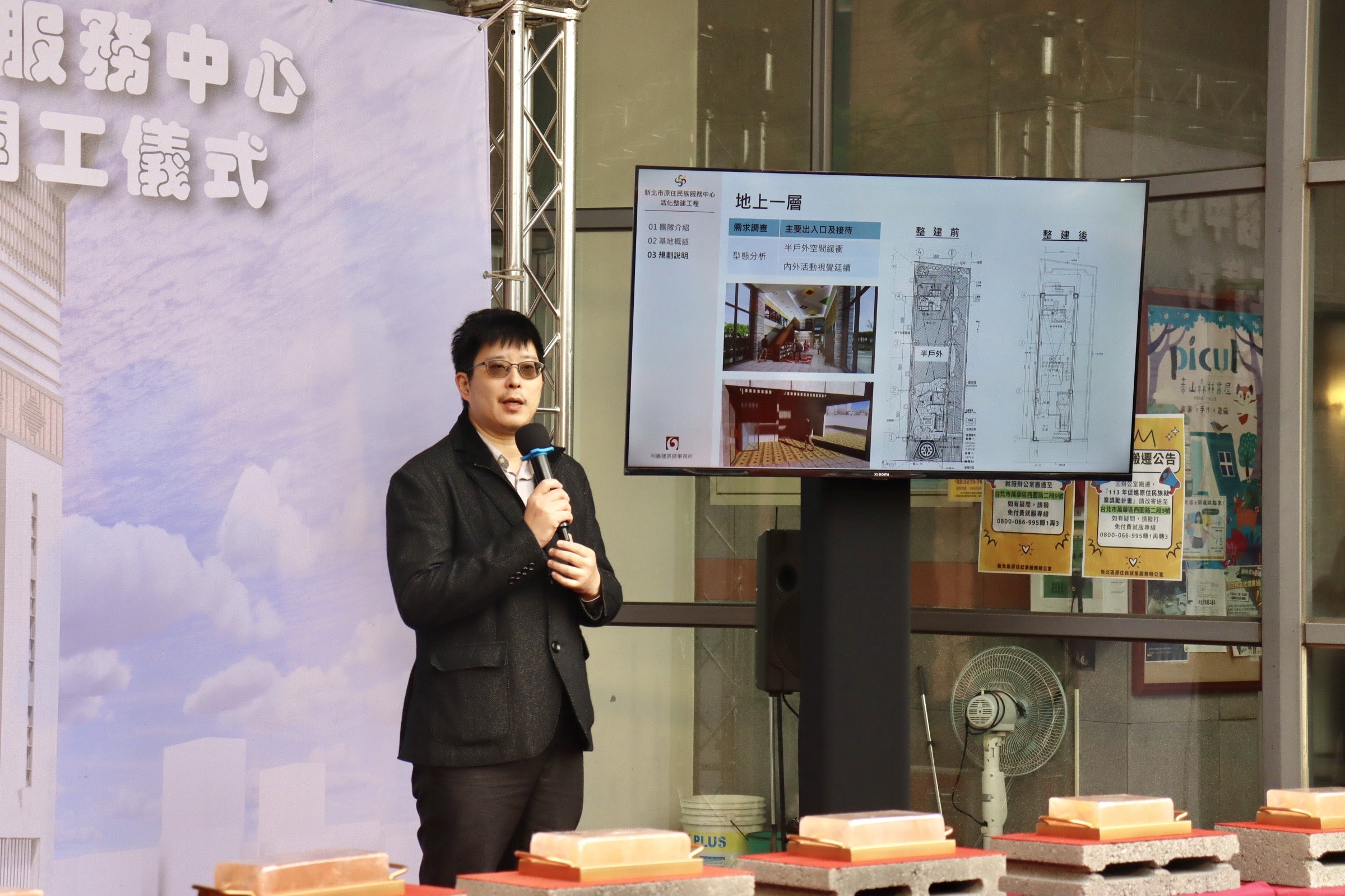 ▲規劃設計廠商許哲瑋建築師進行工程簡報,未來北原中心將成為符合新時代的多功能服務中心。(圖/新北市政府原民局提供)