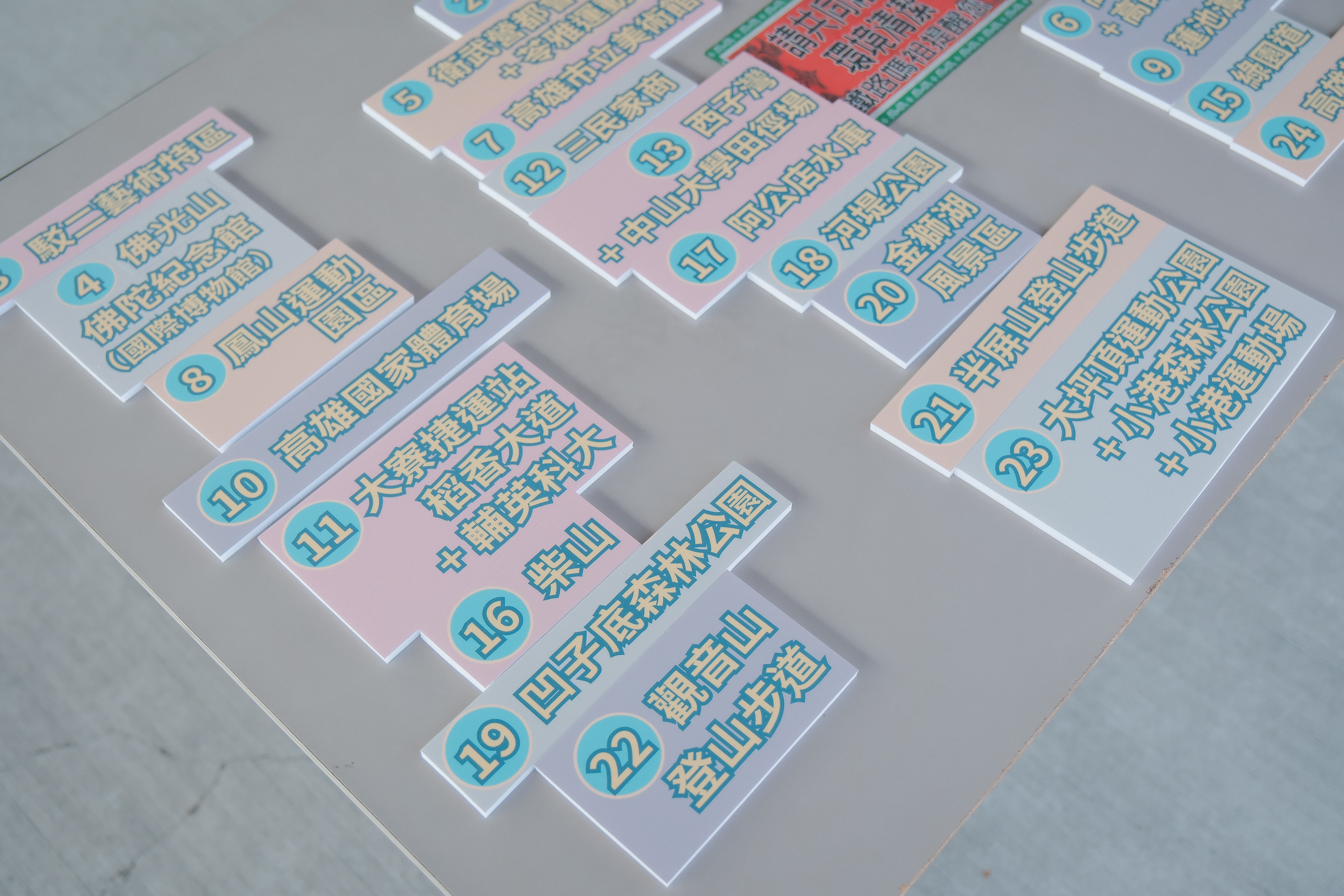 走跑高雄2.0在今年規劃高雄 24個運動熱點,包括(1)愛河與高流亞灣區、(2)澄清湖、(3)駁二藝術特區、(4)佛光山佛陀紀念館、(5)衛武營都會公園與苓雅運動場、(6)高雄市文化中心與高師大田徑場、(7)高雄市立美術館、(8)鳳山運動園區、(9)蓮池潭水域運動中心、(10)高雄國家體育場、(11)大寮捷運站稻香大道與輔英科大、(12)三民家商、(13)西子灣與中山大學田徑場、(14)中正高工田徑場、(15)綠園道、(16)柴山、(17)阿公店水庫、(18)河堤公園、(19)凹子底森林公園、(20)金獅湖風景區、(21)半屏山登山步道、(22)觀音山登山步道、(23)大坪頂運動公園與小港森林公園及小港運動場、(24)高雄都會公園,民眾在以上景點運動後,不僅可以取得「景點勳章」和抽獎券,更有機會抽中平板電腦、智慧運動手錶、運動耳機等多項好禮!