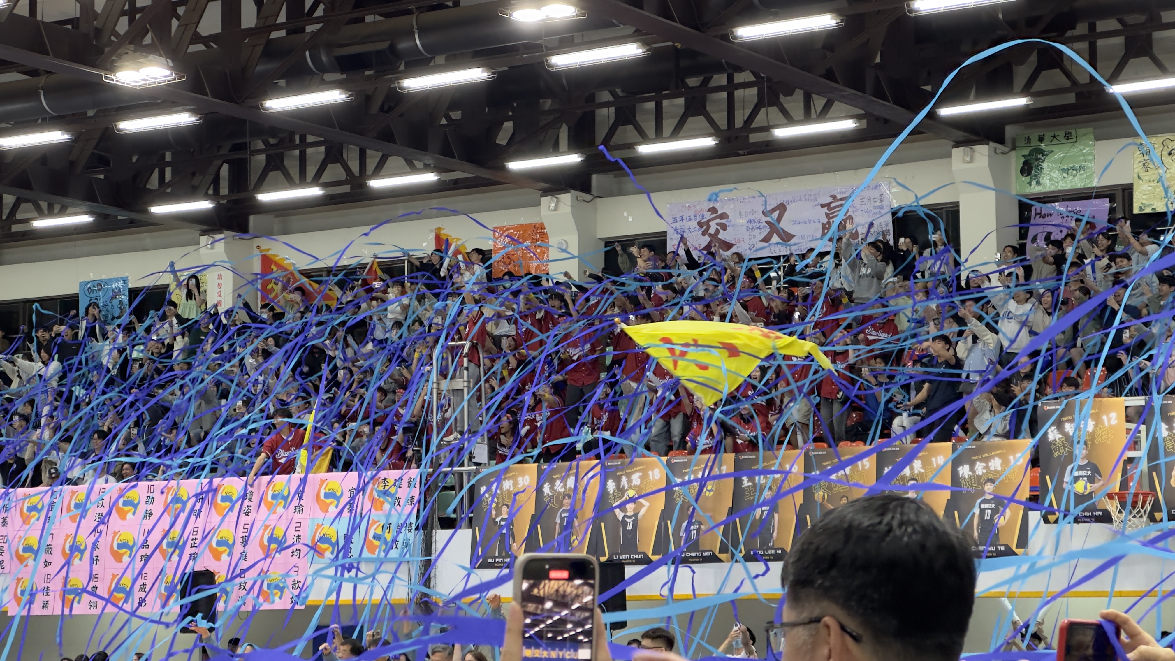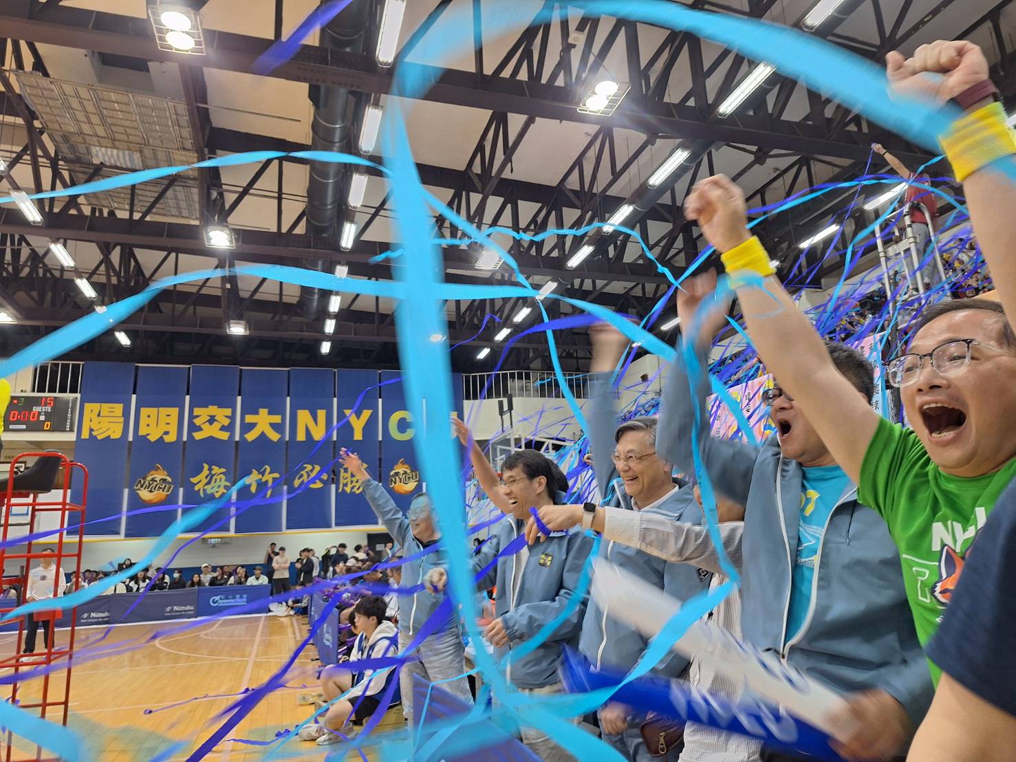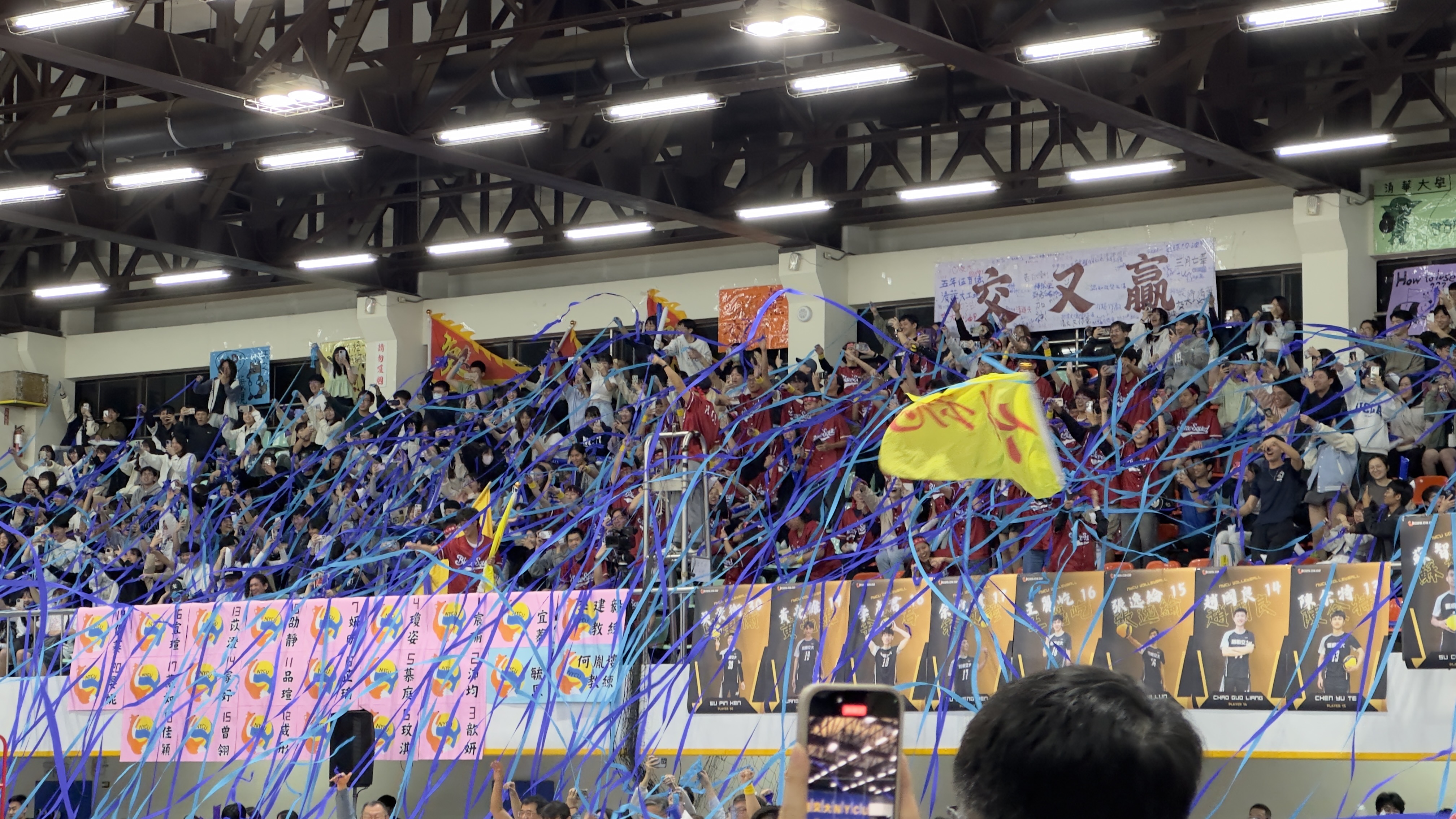 晚間六點開始的男排、女排賽,選手仍展現梅竹精神,全力以赴。最終清華男排再拿下一點,陽明交大女排再攻下一城,陽明交大最終以7:3的成績奪得總錦標,現場落下藍色彩帶,歡聲雷動!