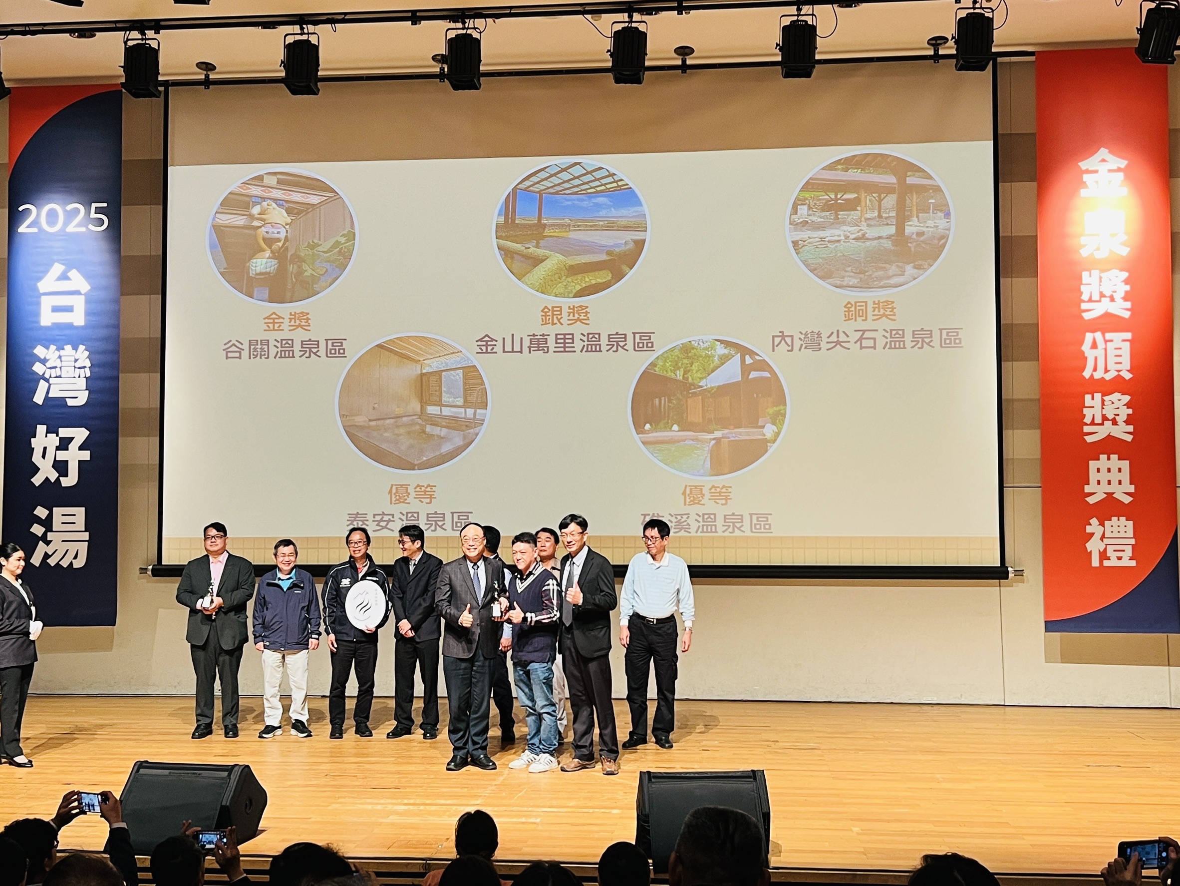 交通部觀光署舉辦「2024-2025台灣好湯-金泉獎」票選活動,由專家委員實地考察與民眾票選,評選出七大獎項,「苗栗泰安溫泉」榮獲「十泉十美獎」最高殊榮,並獲選「五大旅遊推薦好湯獎」、「五大友善好湯獎(優等)」及「五大優質服務好湯獎(優等)」共計四項獎項,頒獎典禮由黃智群參議及苗栗縣泰安溫泉區觀光發展協會李育修理事長代表上台領獎,感謝鄉親及全國遊客的熱情支持。