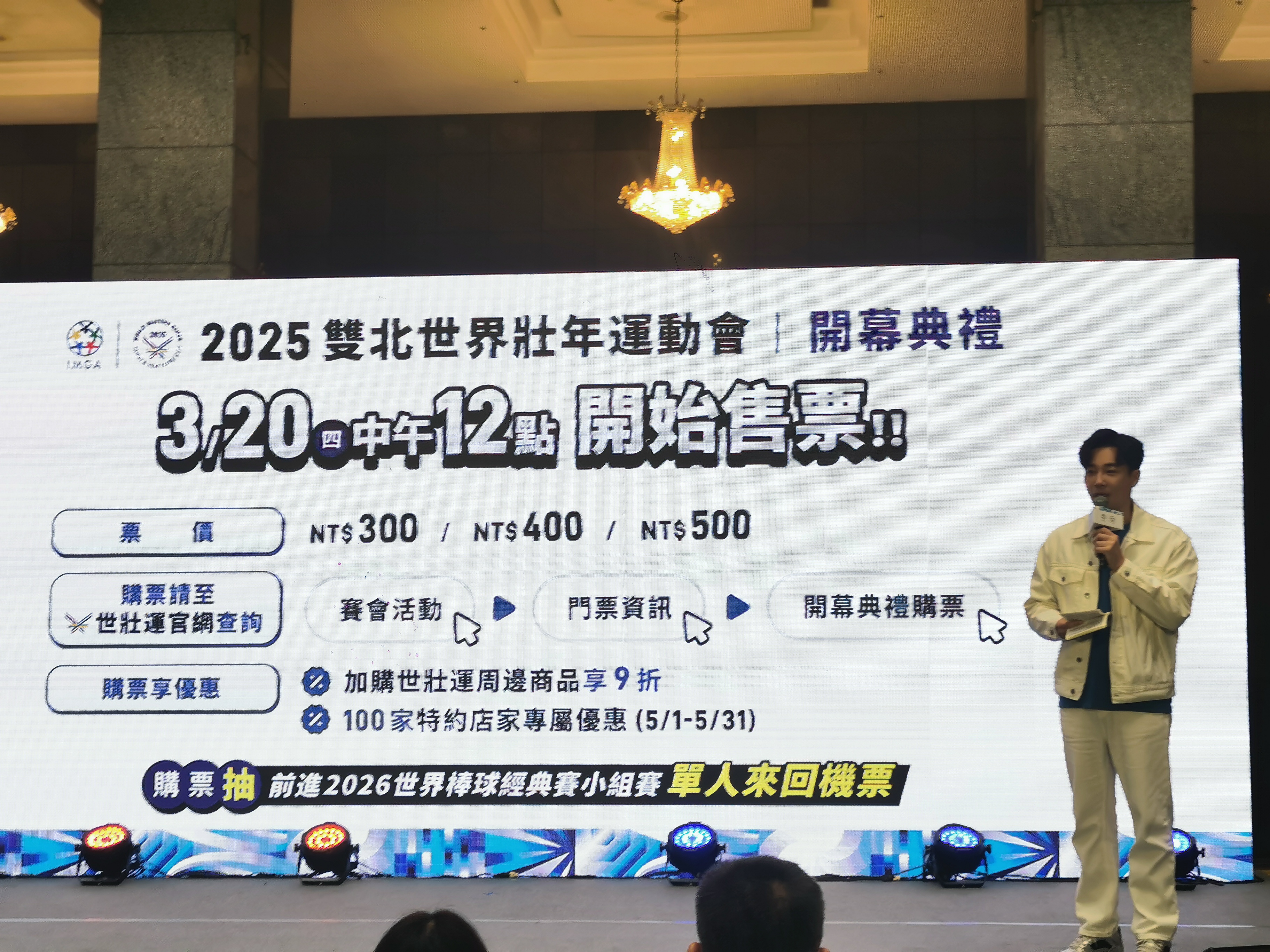 臺北市長蔣萬安今日出席活動時表示,開閉幕典禮不僅代表著賽會的起始與結束,更是展現城市的活力、文化及對運動熱情的表徵,為讓2025雙北世壯運的參賽者及民眾都能對這場亞洲首辦的世界壯年運動會留下深刻美好的回憶,除了參賽、交通、購物、住宿四大好康及隱藏版的醫療好康之外,更於記者會上宣布,針對2025雙北世壯運5月17日將於臺北大巨蛋舉辦開幕典禮,配合世壯運「運動無界」精神,加碼10組抽獎名額,只要購買開幕門票就有機會抽中「前進2026世界棒球經典賽小組賽」單人日本來回機票!