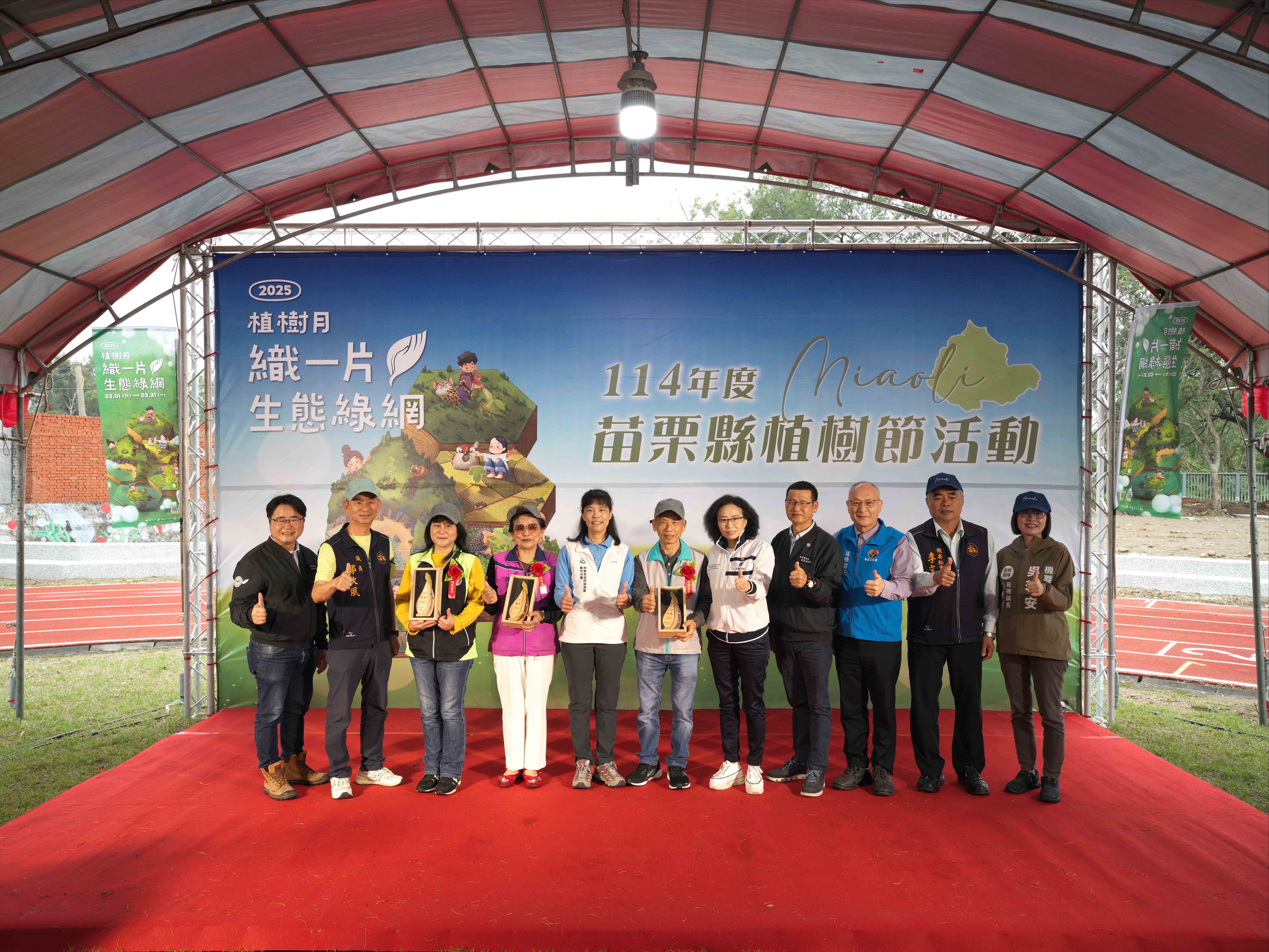今日活動,由縣府頒發苗栗縣綠化有功人士及團體,新竹分署同時頒贈林業及自然保育署新竹分署推動結合社區、部落執行參與自然環境維護、在地人文發展與居民參與的「社區林業」計畫,113年獲得優異成果的苗栗地區績優社區包括獲得特優社區的「有限責任苗栗縣賽夏族原住民林業暨勞動合作社」、優等社區的「苗栗縣頭屋鄉明德社區」及甲等社區的「苗栗縣竹南鎮海口社區發展協會」。