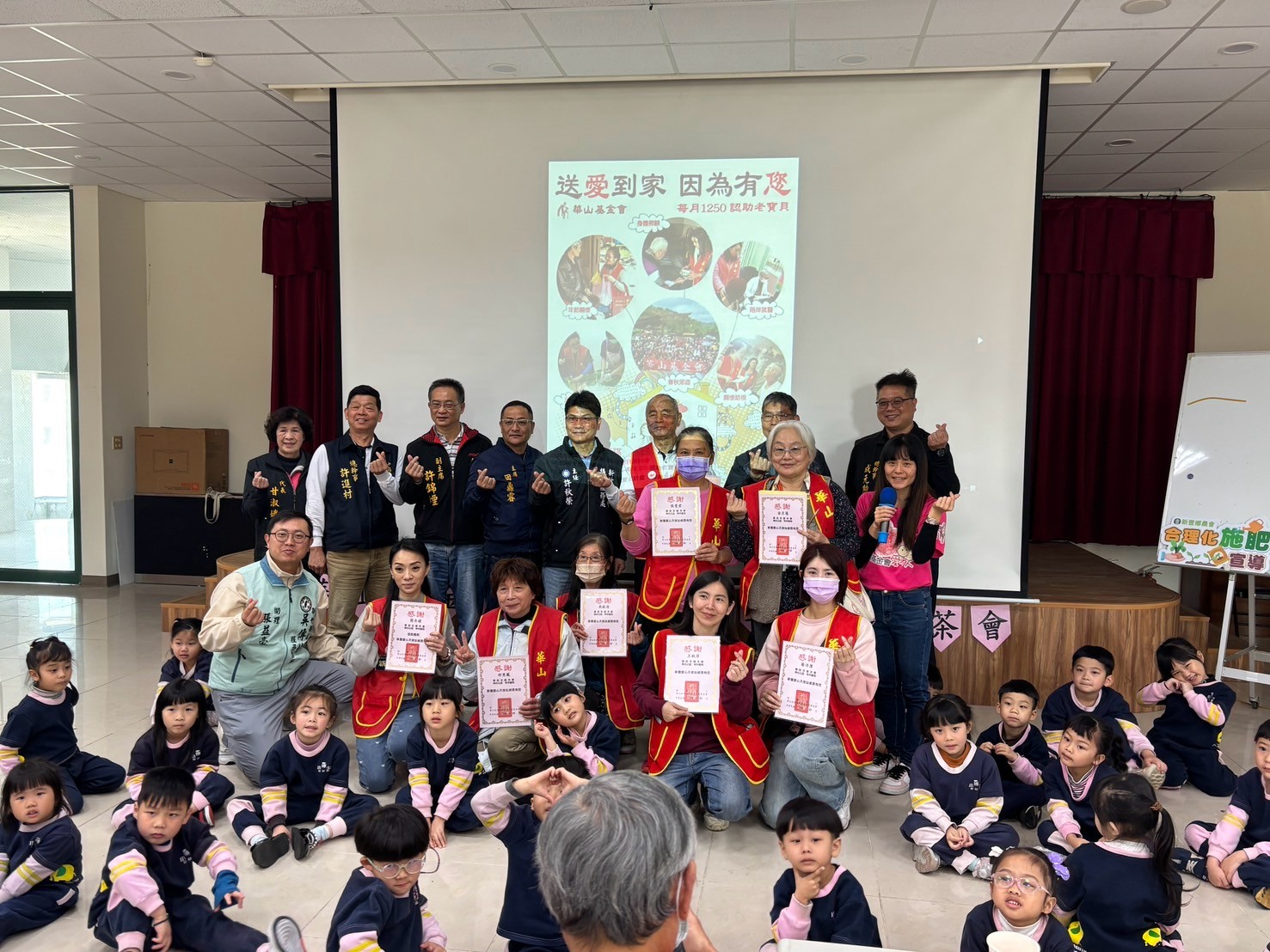「新豐鄉農會」成元勲總幹事認同本會服務理念,以行動支持新豐站推動老人到宅服務,當日無償提供新豐鄉農會農民活動中心辦理華山新豐站18週年感恩茶會,並由小博士幼兒園帶來熱鬧的開場舞蹈表演;名都豔髮美髮沙龍簡卉嬛設計師提供義剪服務;