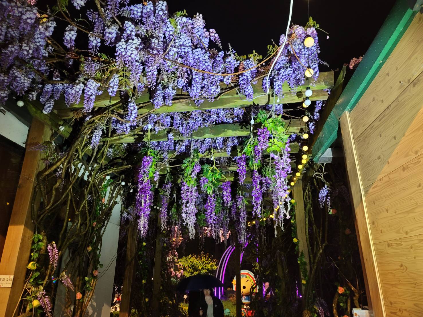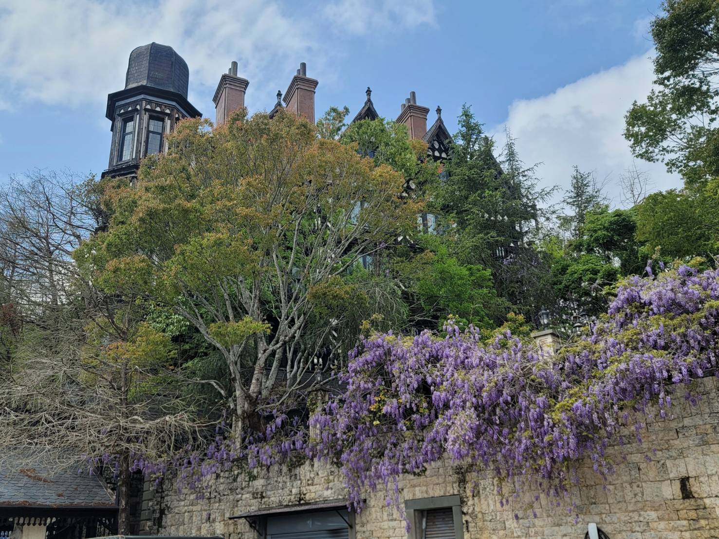 一樣的紫爆,國道是塞爆,清境卻是風景美麗的紫藤花爆開,春天正是仙氣浪漫的紫藤花開季節,猶如紫色瀑布般成串的紫藤花,一串串橫溢於清境小瑞士花園、老英格蘭民宿花架間,令人印象深刻的香氣,讓人彷彿沉醉在溫柔的愛情氛圍裡。