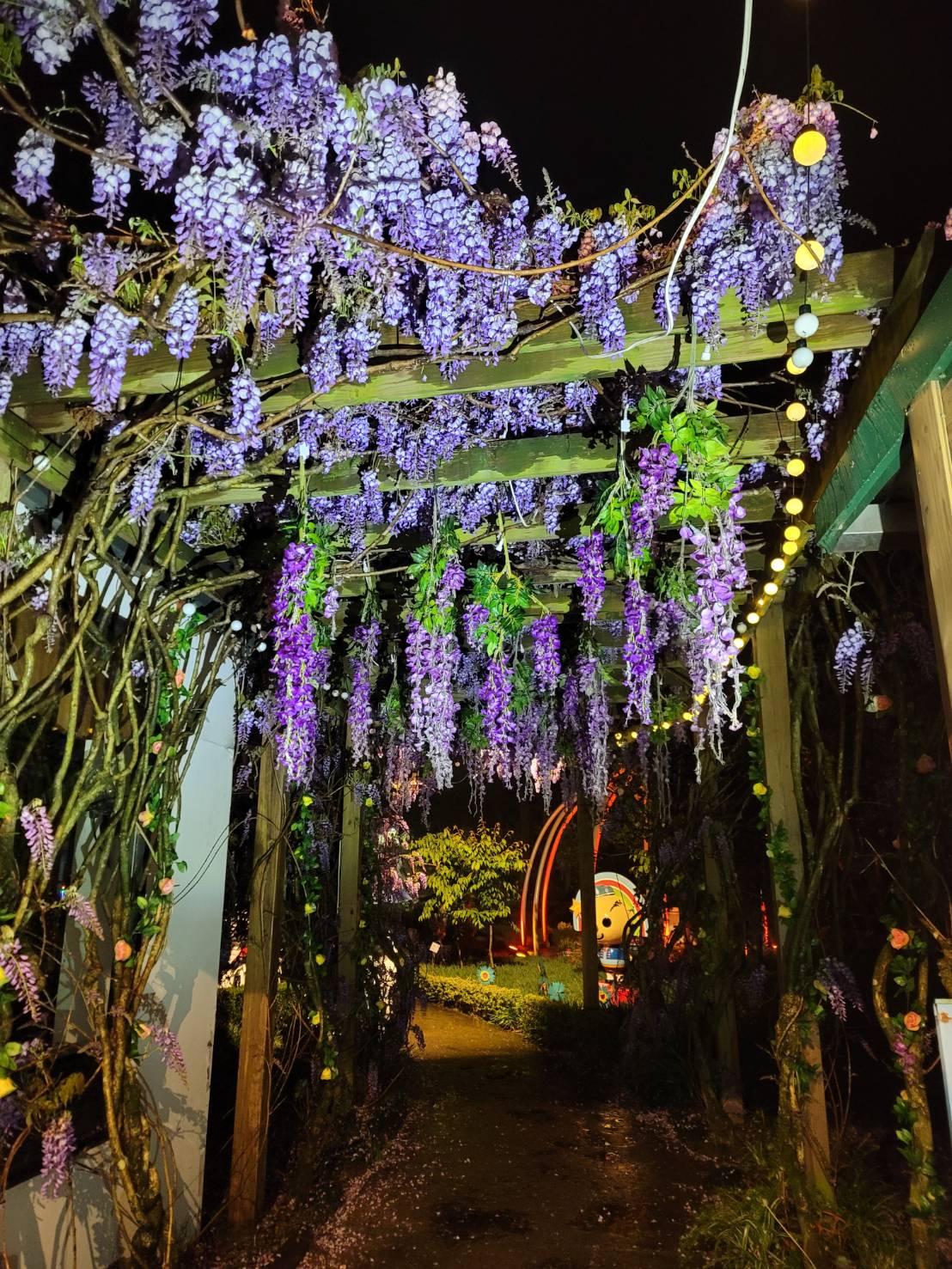 清境農場表示許多遊客以為清境只有綿羊秀或馬術秀,就在國民賓館對面的小瑞士花園此時正是百花盛開,目前紫藤已近大開,預估最佳賞花期在這清明假期的兩個禮拜左右,小瑞士花園入口花架上掛滿浪漫紫藤花,隨風搖曳好似女性穿著紫藤色和服,搖擺袖子展現動人舞姿的模樣,搭配獨特似有似無的花香,一定要親臨才能真正感受仙氣療育的魅力。小瑞士花園夜間還有水舞秀,無論白天晚上都美麗。