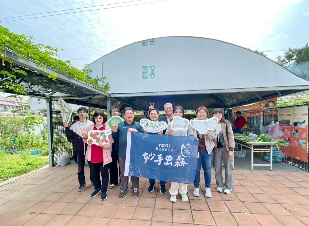 嘉義大學執行教育部大學社會責任(USR)實踐計畫–妙手虫森2.0 Revive! 永續環境健康帶回「嘉」,近日由植物醫學系林彥伯助理教授、景觀學系江彥政教授及陳佩君助理教授帶領跨院系學生,與嘉義市長竹里長竹市民農園合作進行「綠意守護者」活動,向社會大眾推廣食農教育。
