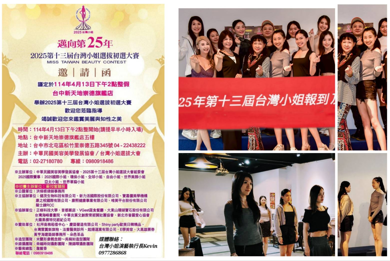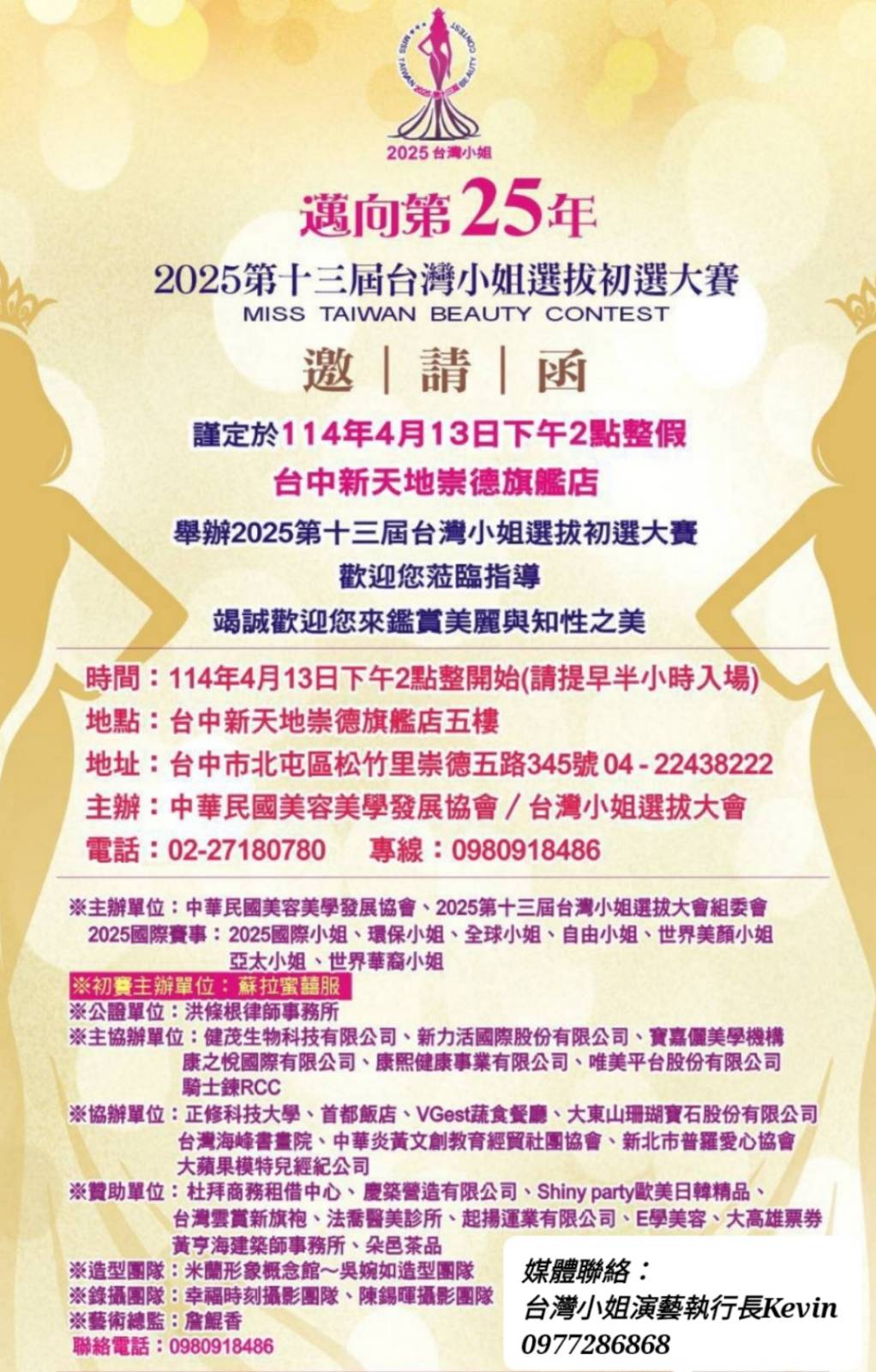 2025第十三屆台灣小姐選拔初賽 4/13台中天地崇德旗艦店舉行
