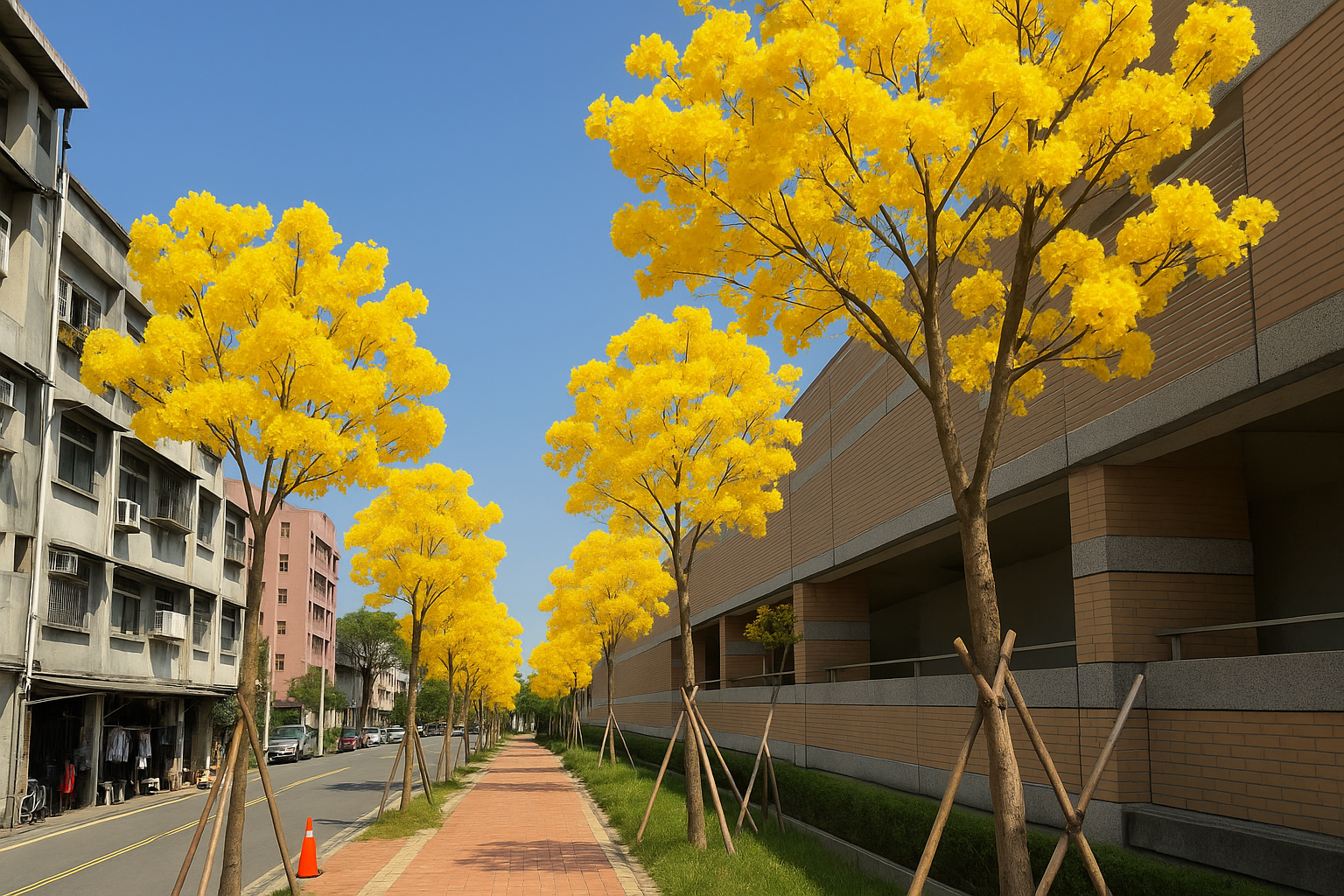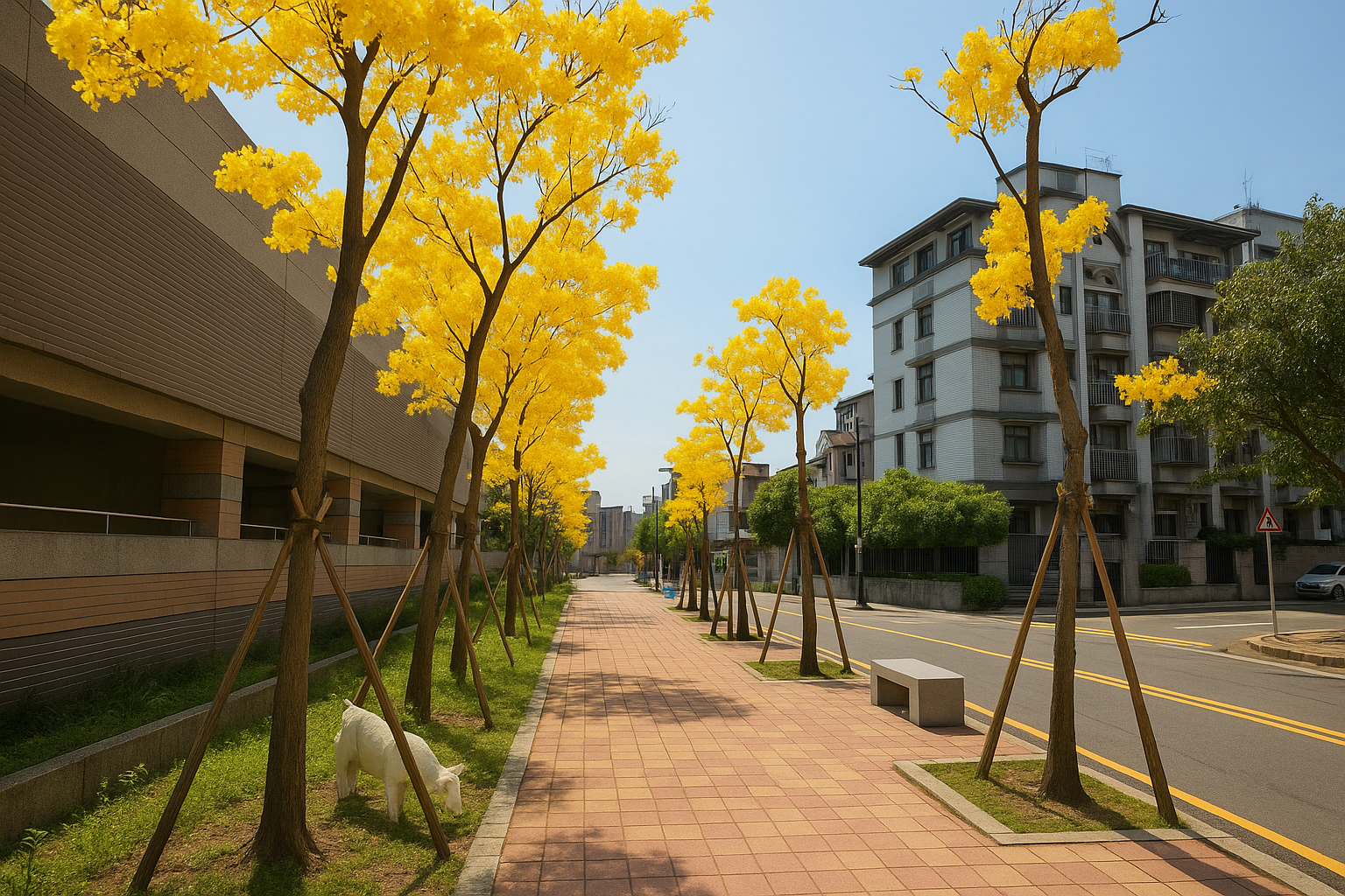 鄉長邱振瑋借鏡台積電在步道種植杜鵑花或牡丹花經驗,將寶山國中旁的學府路打造成黃花風鈴木主題步道,原有的10棵、再加上移植而來的成木,現在已有超過40棵的黃花風鈴木,接下來會再結合道路兩側及圖書館周邊原有的黃花風鈴木,總計集中種植超過50棵,未來到了花期將可望成為一片黃金花道。
