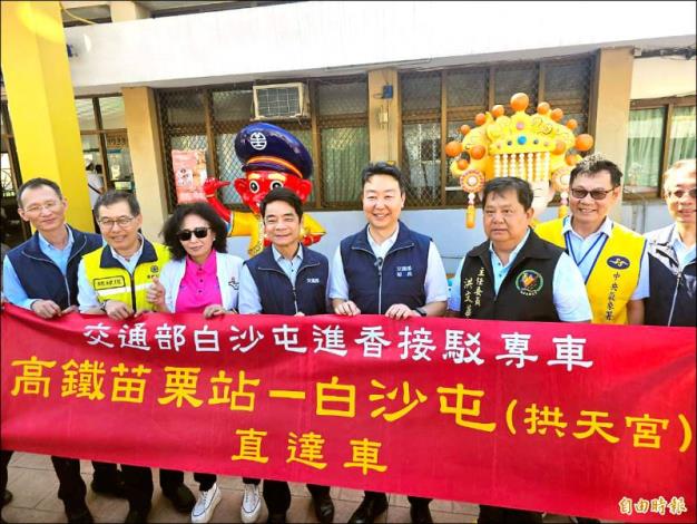 另外交通部公路局與台灣高鐵公司啟動「運具聯防疏運」機制,引導高鐵旅客轉搭客運等大眾交通運具,高鐵苗栗站於客運轉運站 (8號公車月台)提供白沙屯接駁專車停靠,並於車站閘門前、1樓大廳(1號出口處)等處設置接駁轉乘導引公告,協助旅客順利轉乘至白沙屯。