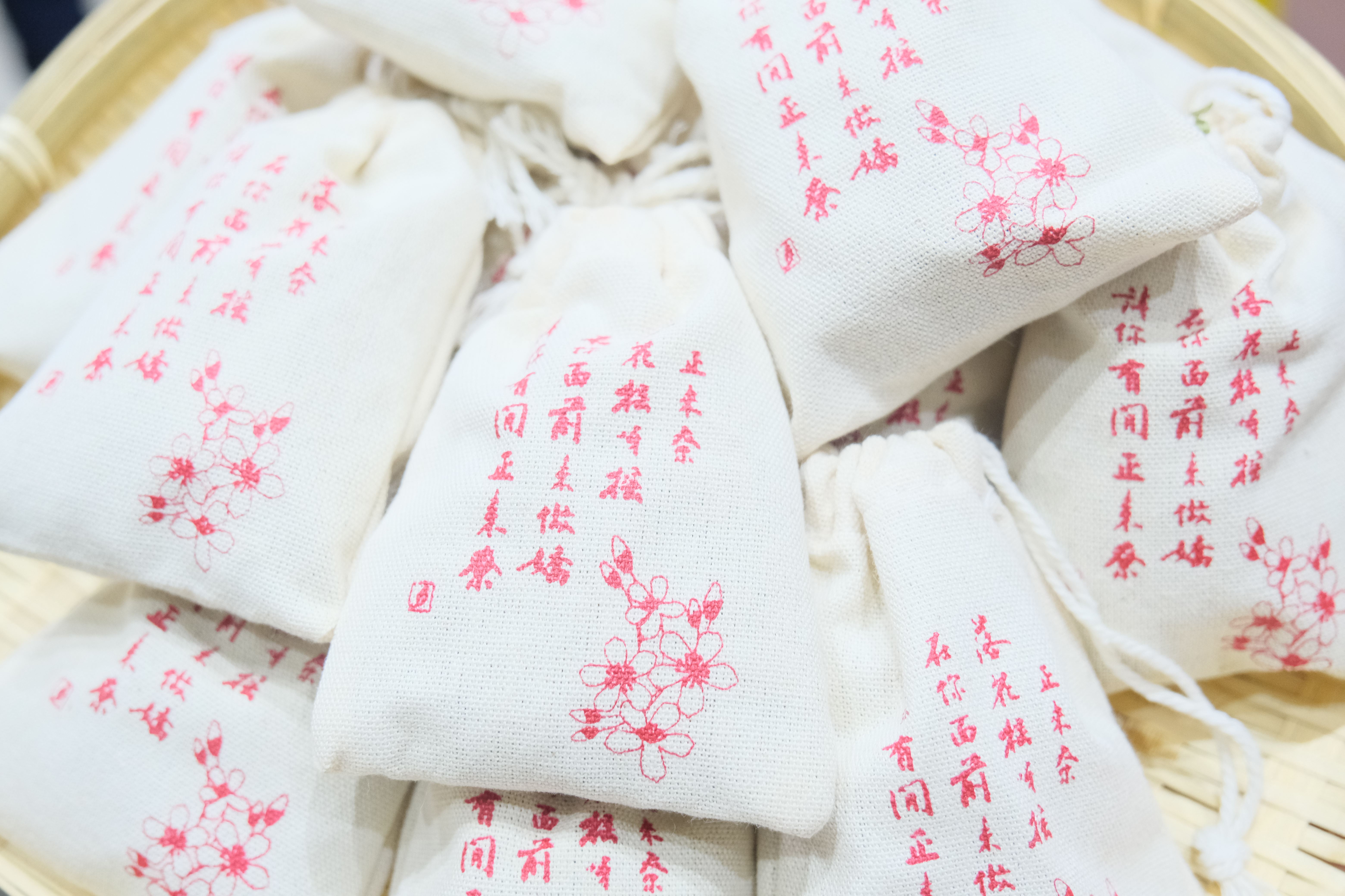 此外,現場發放今年桐花祭的紀念平安袋,袋上絹印著客家詩人葉國居的桐花三行詩「落花搖啊搖∕在你面前來做嬌∕請你有閒正來尞」,袋中則盛裝新埔在地的香草,彷彿歡迎旅客在春季桐花綻放時分造訪新竹縣客庄,「有閒正來尞」。