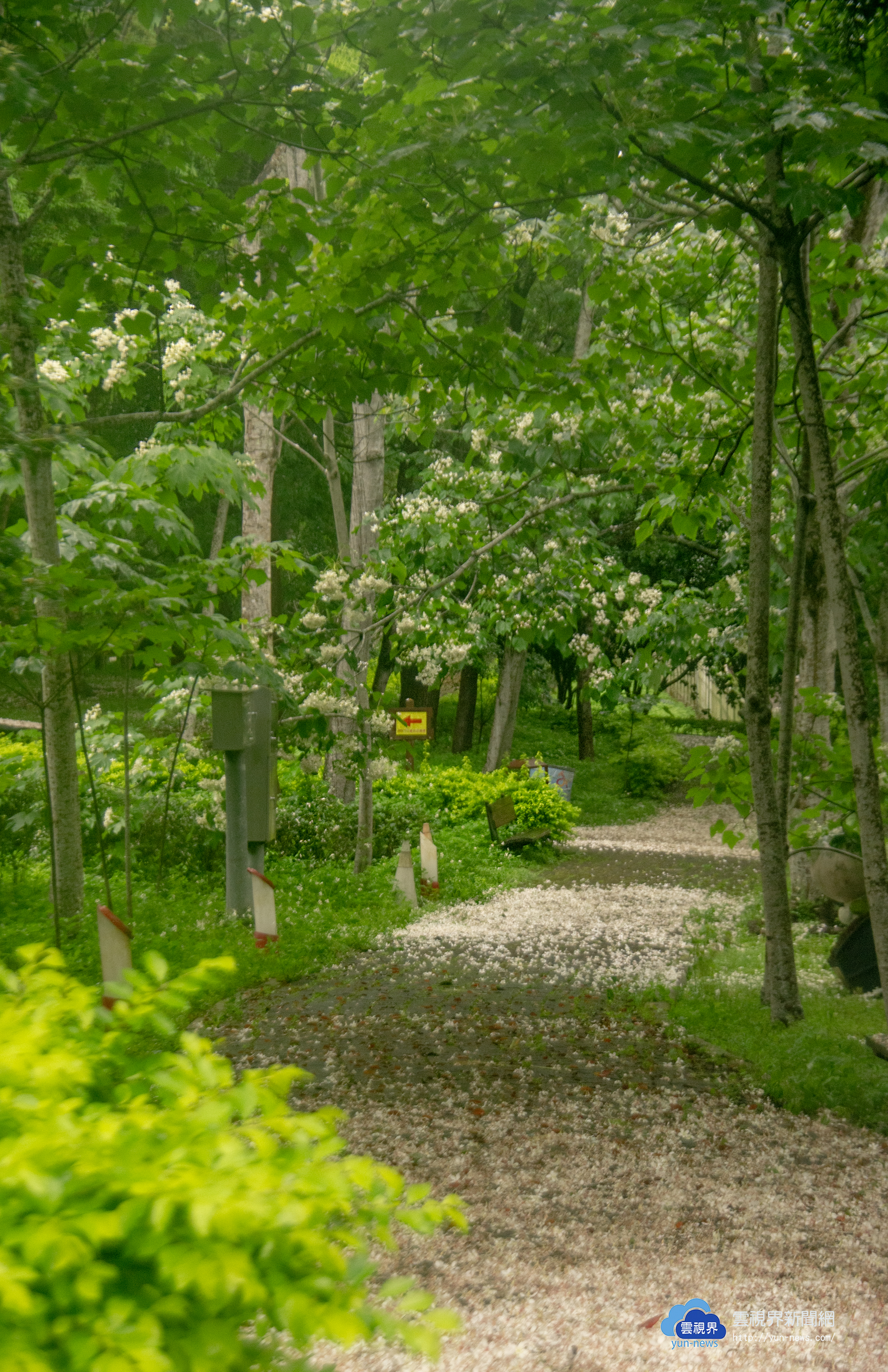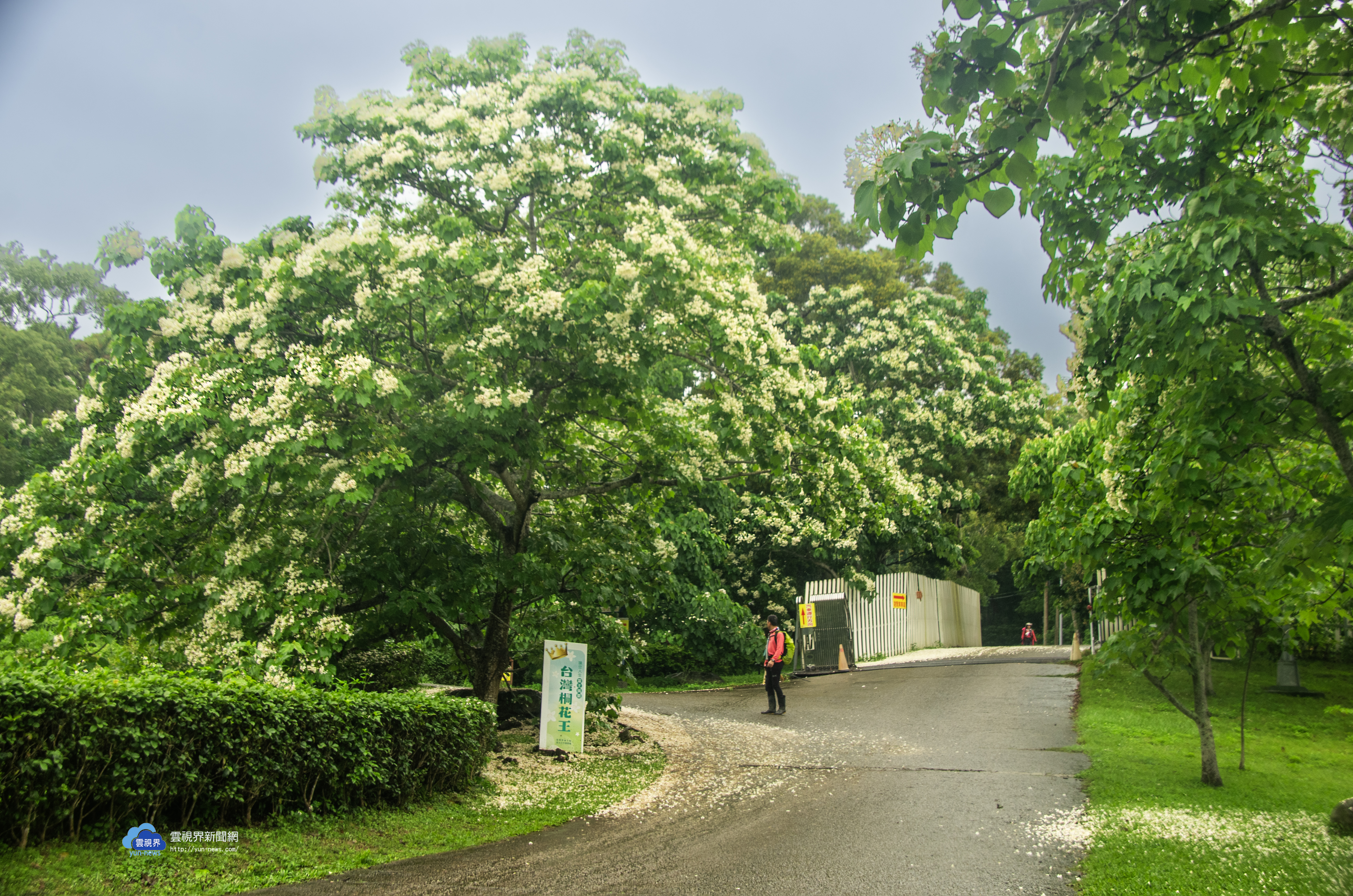 春風拂面,桐花盛開,全國著名賞桐景點苗栗客家大院(姜太公中部道場),隨著桐花綻放成為一片雪白浪漫的山林仙境。