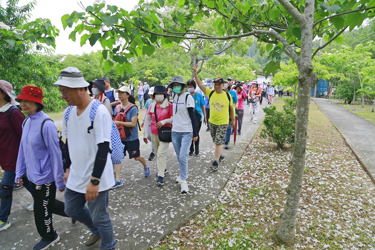 本次健走活動特別設計一條結合在地自然景觀與文化地標的路線,沿途可欣賞雪白桐花如五月飛雪般的浪漫景緻,並穿越功維敘鐵道文化園區、古道步道等經典景點,讓參與者在運動之餘,也能深度體驗苗栗的歷史人文與山林風光。
