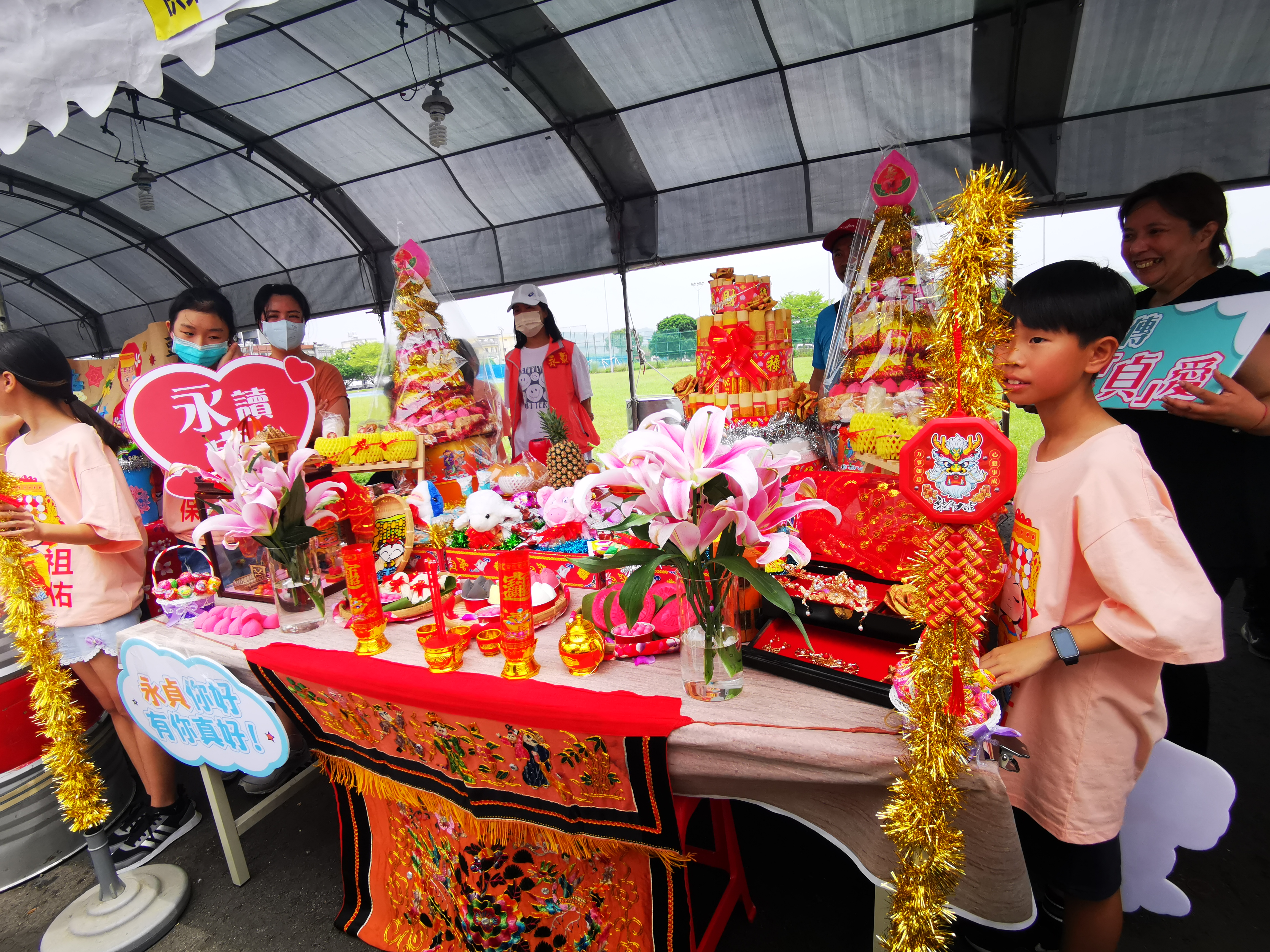 2025頭份四月八澎湃慶城藝系列活動,青年爐主創意供桌大賽,5日上午在頭份六合綜合運動場盛大展開,頭份市12所國小以及4所國中同學,組隊報名參賽,主辦單位還邀來社區藝文團隊暖場,現場十分熱鬧。