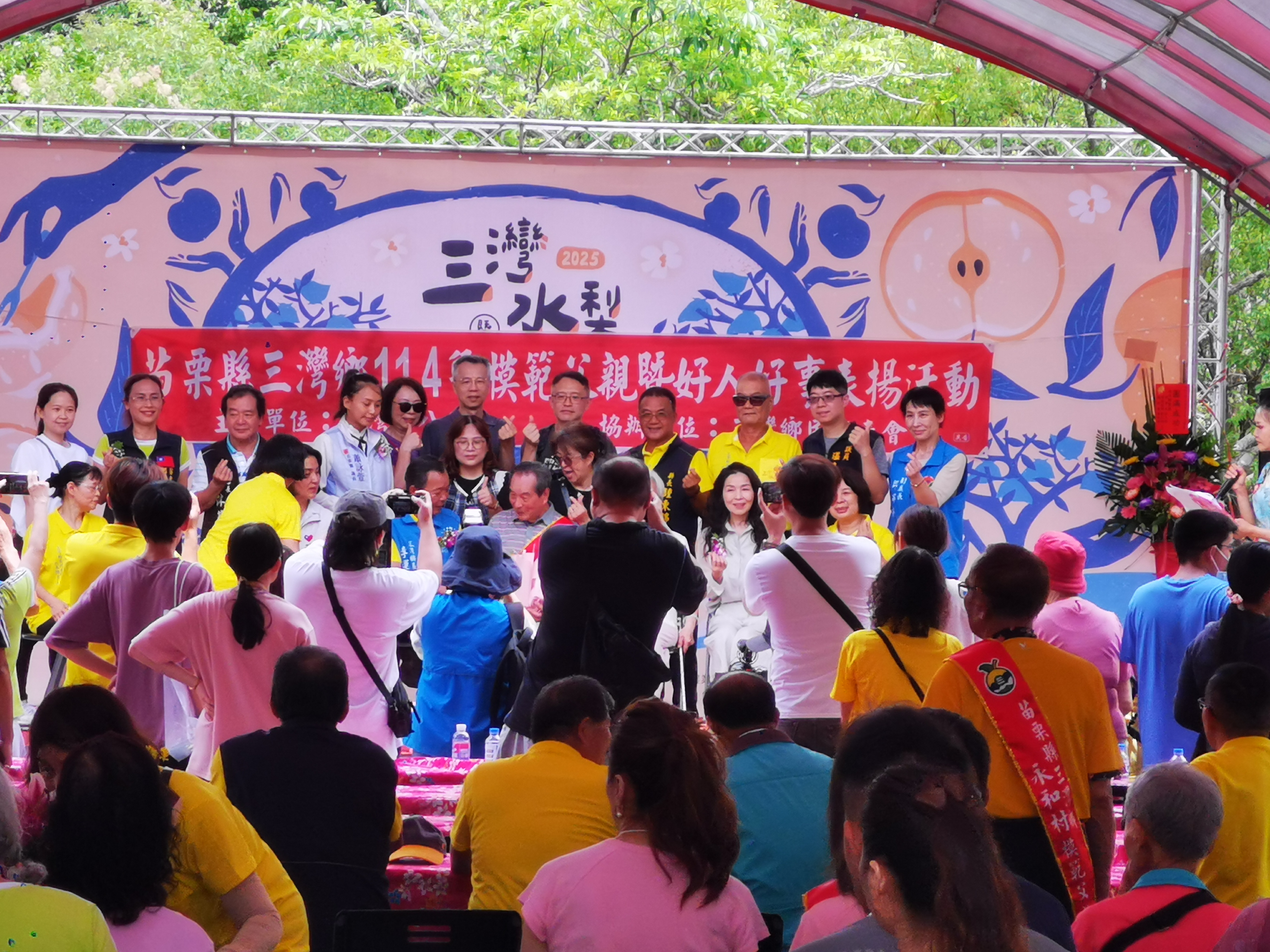 苗栗縣長鍾東錦夫人陳美琦、立法委員邱鎮軍、縣議會副議長張淑芬、縣議員陳永賢、鄭聚然、蕭詠萱、陳光軒、行政院中部聯合服務中心副執行長李貴富、三灣鄉長李運光、南庄鄉長羅春蓮、獅潭鄉長劉淑能、造橋鄉長徐連斌、卓蘭鎮長詹錦章、三灣鄉民代表會主席邱騰森及多位代表、三灣鄉農會理事長賴元鳳、常務監事廖盛榮、總幹事謝杏玲、苗栗縣農會總幹事鍾金光等來賓皆出席活動。