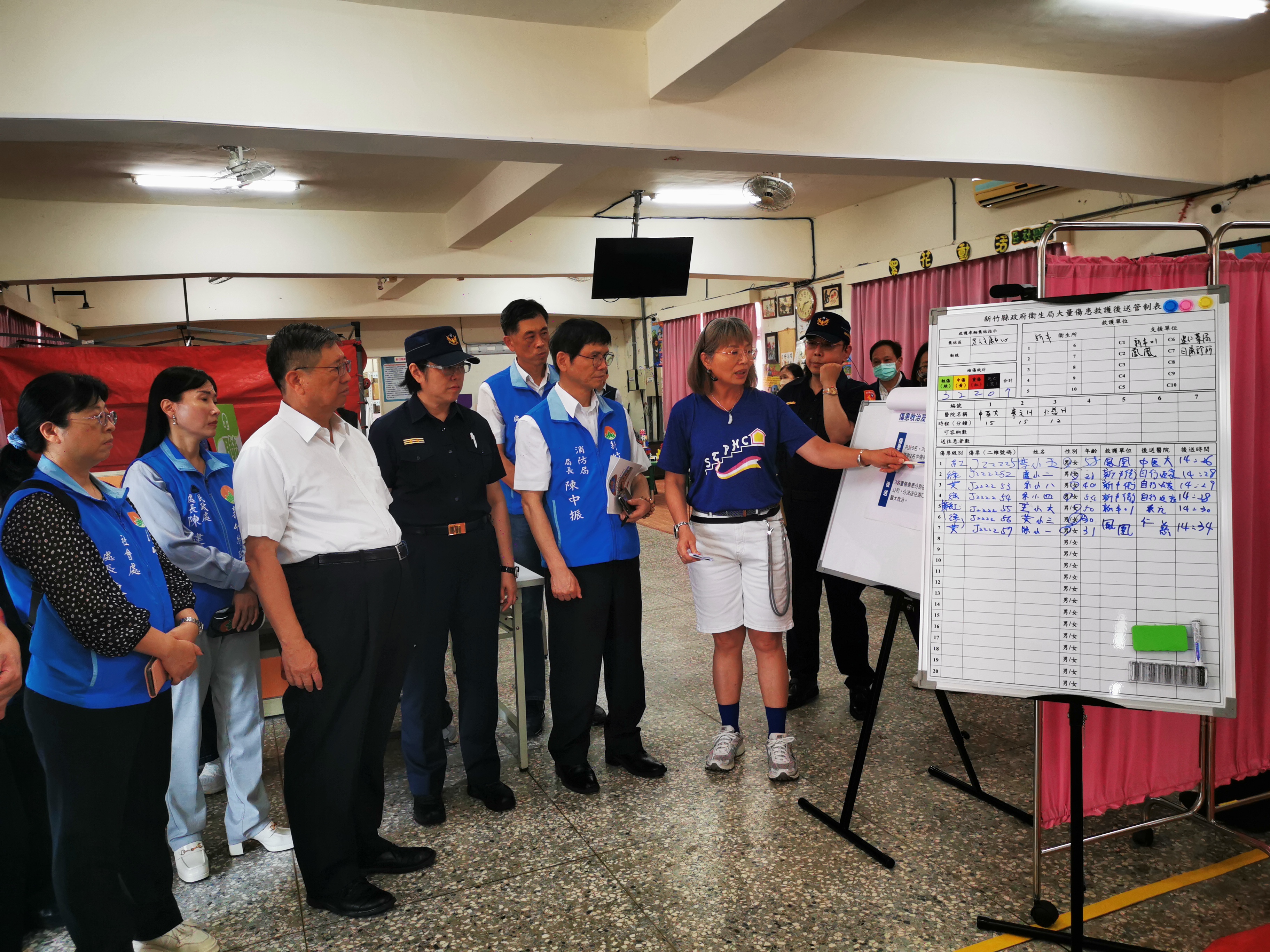 指導官海巡署北部分署長廖雲宏率行政院動員會報薦任科長鄒美完、少校羅建德、後備指揮部評核官少校林雅唯、新竹後備指揮部指揮官上校何僑軒、士官長陳書語、內政部警政署專員曾紹真與新竹縣民政處長陳建淳、社會處長陳欣怡、新聞處長顏章聖、衛生局長殷東成、消防局長陳中振、警察局長宣介慈等人,於演習期間前往新豐鄉視導交通管制、新豐鄉公所、寶雅商場及火車站疏散避難演練執行情形,續於警報解除後視導戰災搶救、急救站及救濟站開設演練,對演習成果表示高度滿意。