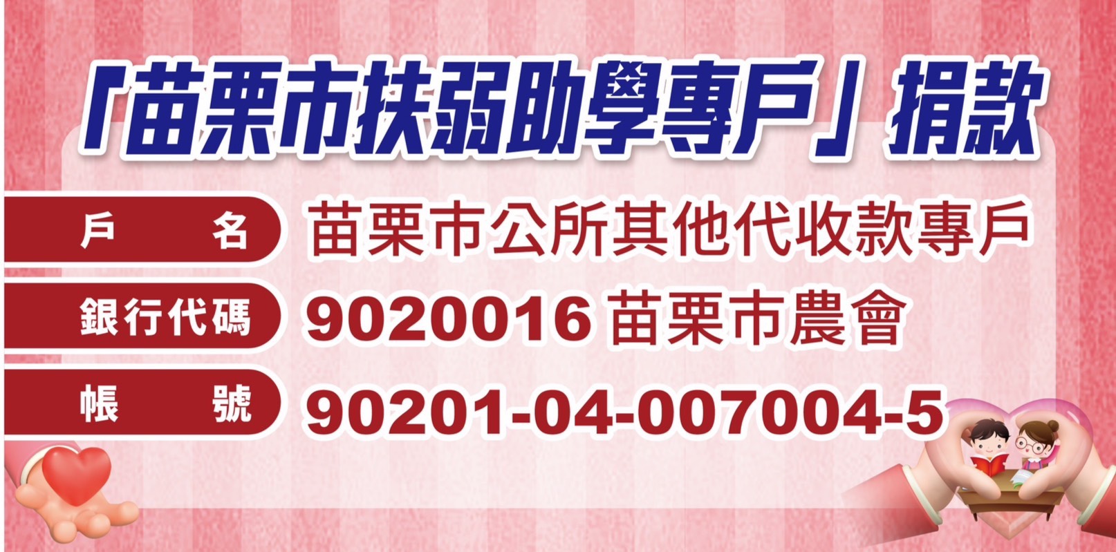 並且在上任後即刻兌現選舉承諾,成立「苗栗市扶弱助學專戶」,首次頒獎典禮於今年1月24日舉辦,有100名優秀學生獲獎,本次為第二次,每學期頒發獎助學金給才藝績優或具有特殊優良事蹟的弱勢學生,鼓勵有心向學和努力的孩子不要被困境打敗,把一切的挫折經歷,當成未來成長的養分。今日現場鍾縣長夫人陳美琦還加碼致贈獲獎學生精美的隨行杯,而前代表會主席楊喬安也大力捐獻10萬元挹注扶弱助學專戶。