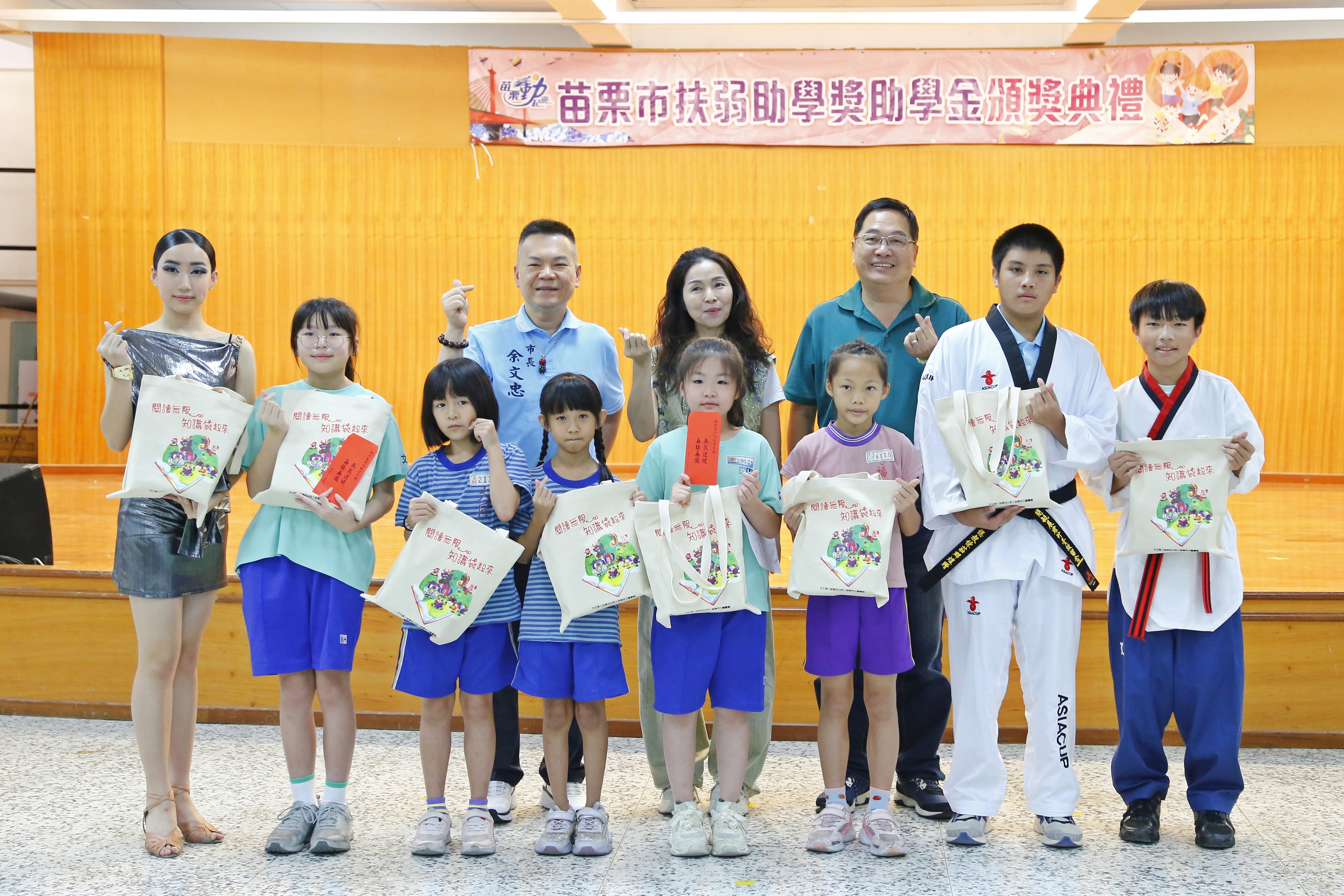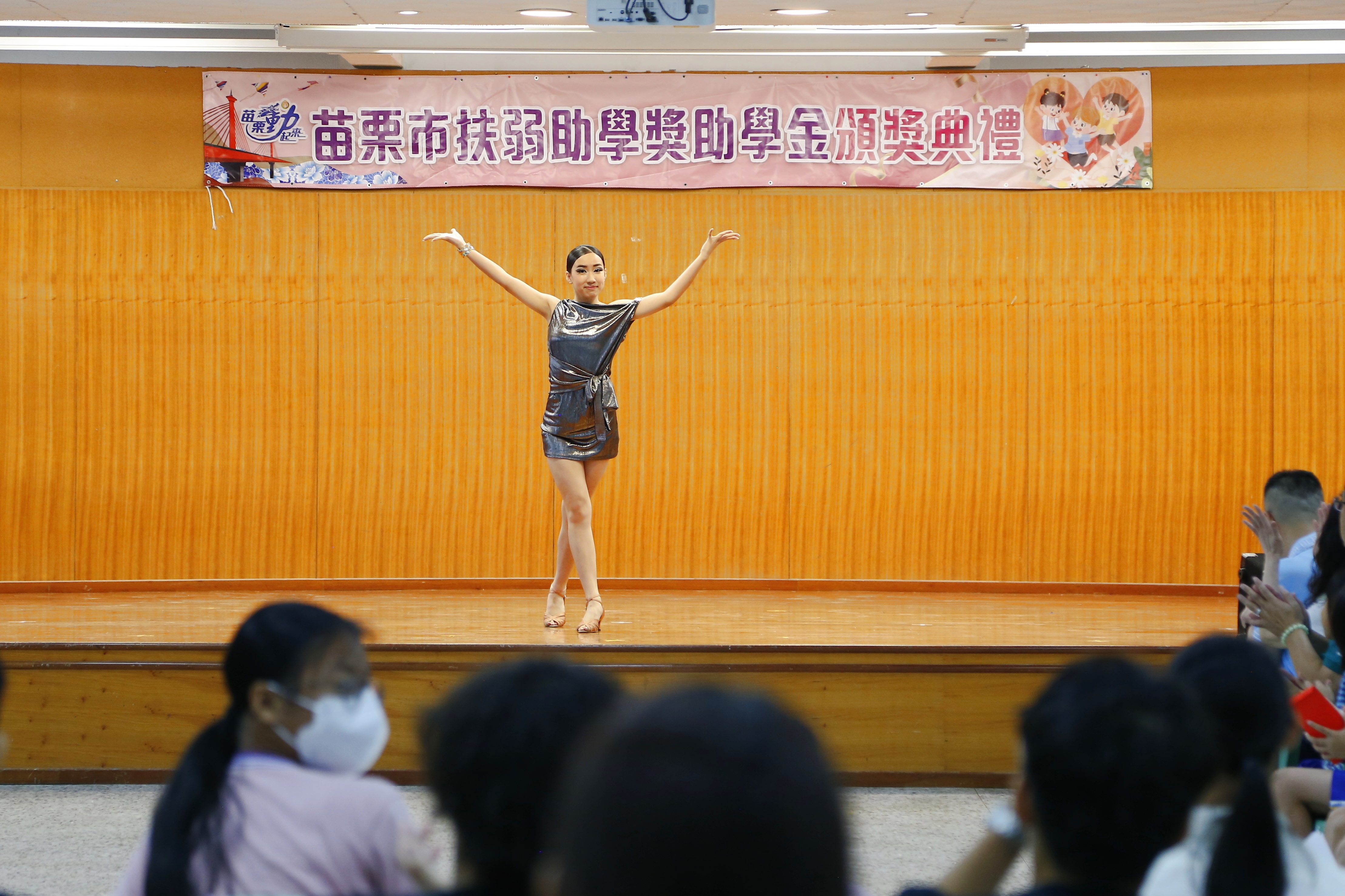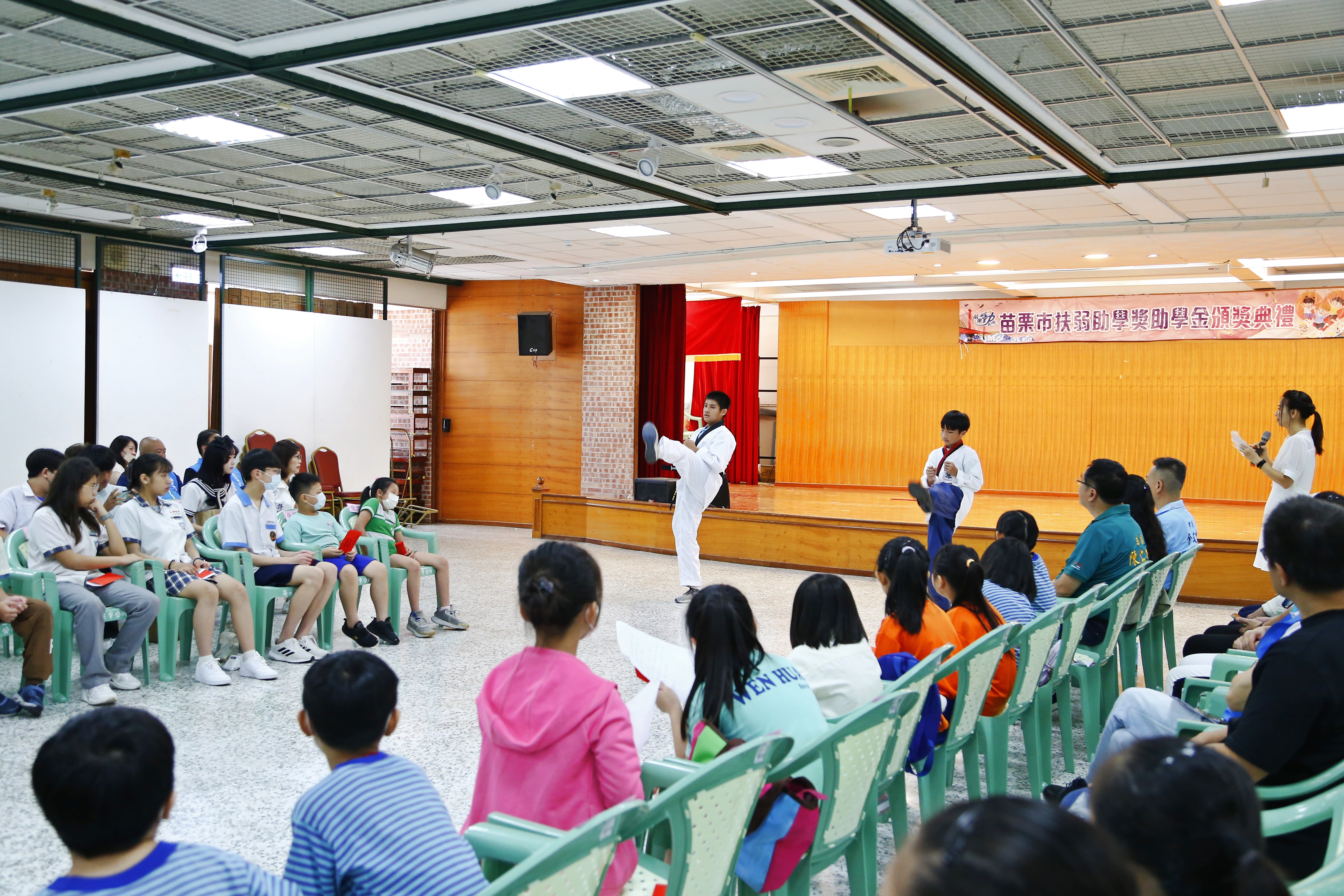 本次活動有6位獲獎小朋友分享這次的獲獎心得,孩子們對於能夠獲得獎助學金皆心存感恩,往後的日子一定會更加努力進取,余市長也勉勵在座的同學,期許他們能把這份愛心化為力量,今日取之於社會、未來用之於社會。另外也特別邀請本次獲獎的謝同學表演國標舞,展現精湛、優美的舞藝,以及文華國小郭同學和苗栗國中簡同學表演精彩的跆拳道競技對打,除了對才藝績優的獲獎同學表示肯定之外,也讓他們有機會展現自我,並獲得認可與獎勵。